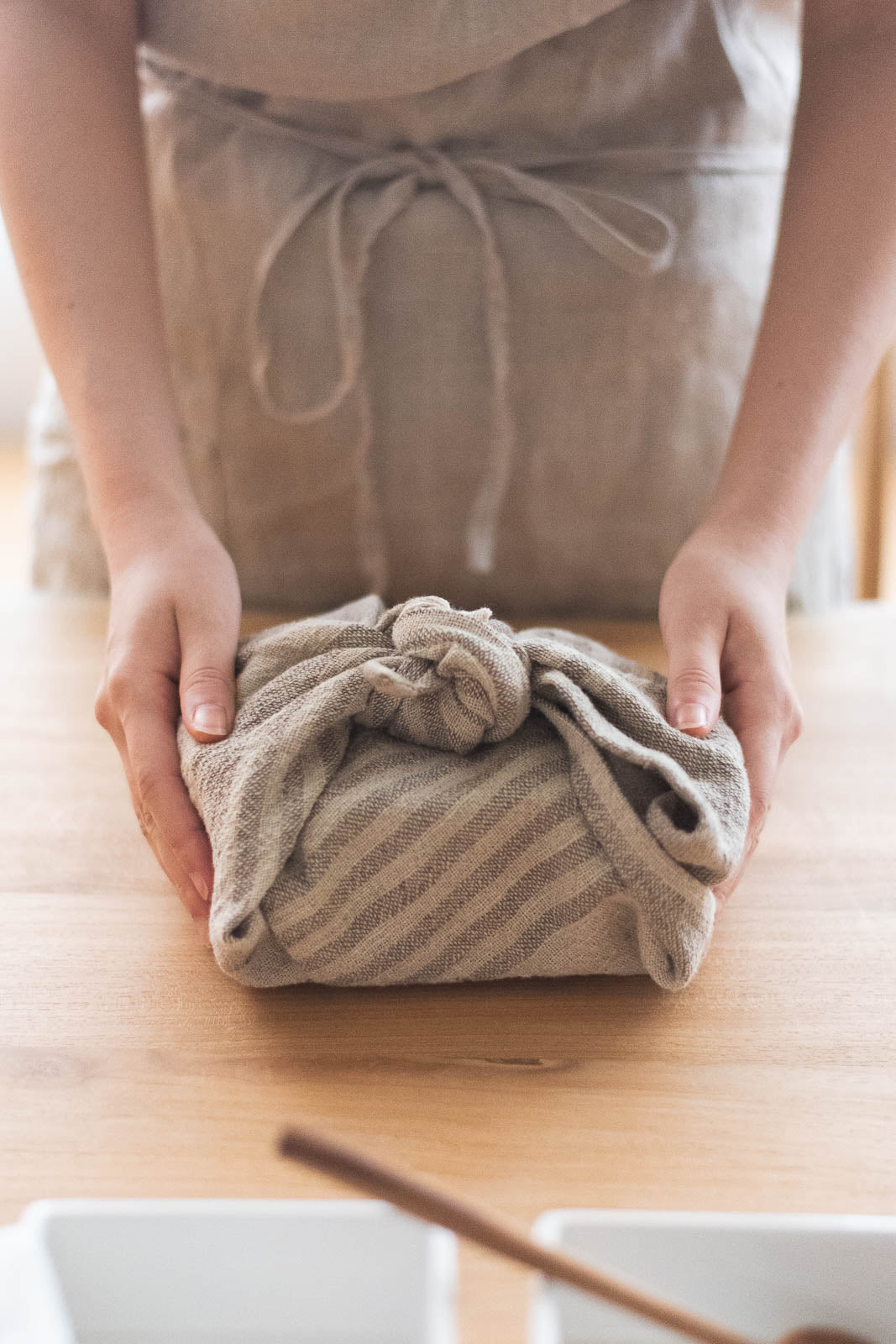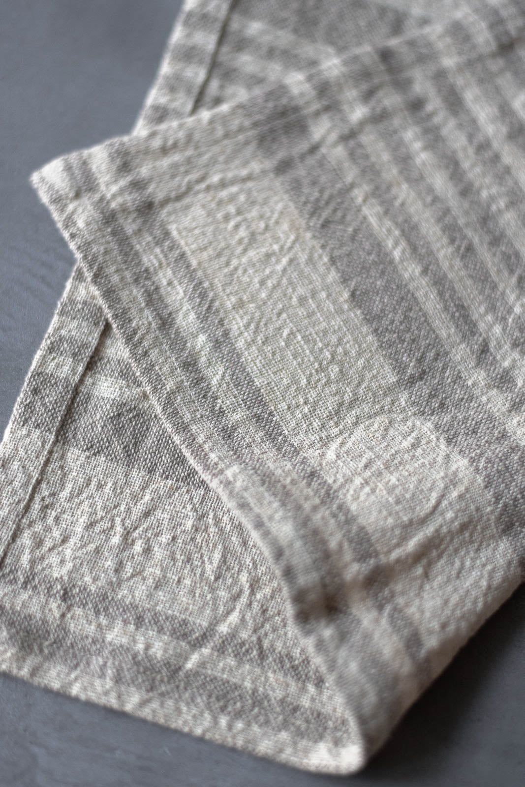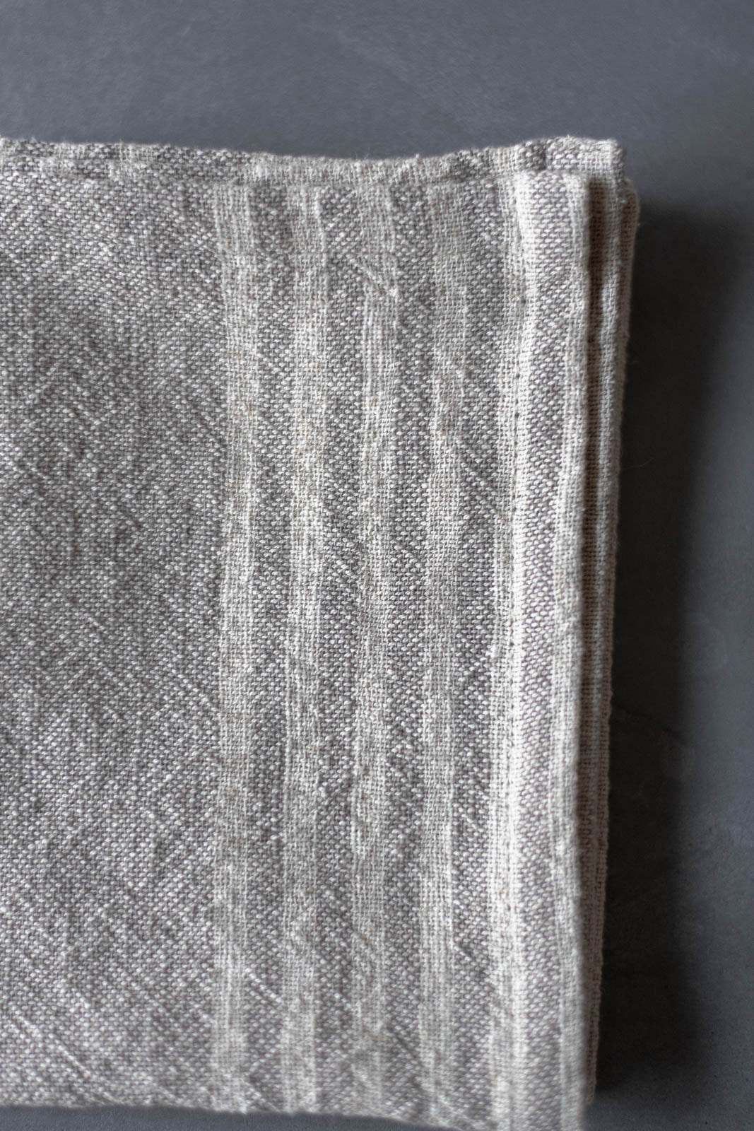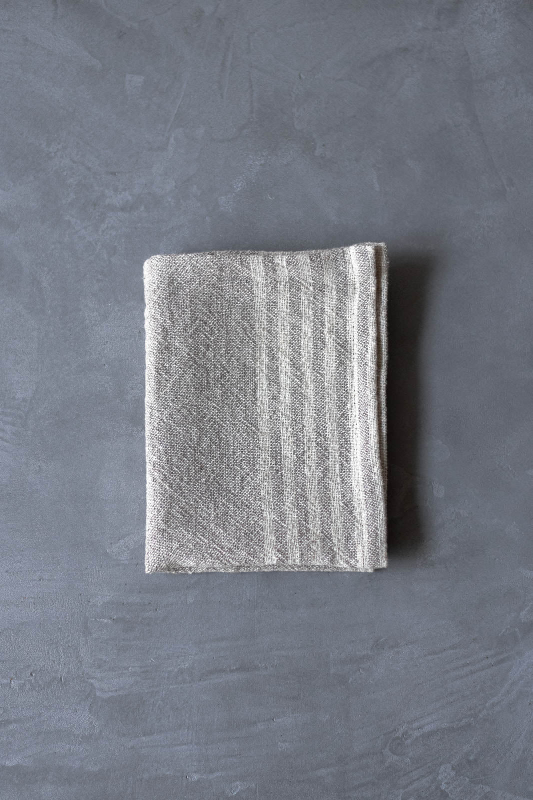 「拭く・包む・敷く・隠す」など、ひとつで何役もこなす頼れる1枚です。素朴な風合いのナチュラルカラーの生地に、生成りのボーダーをあしらった、やさしい表情が魅力です。