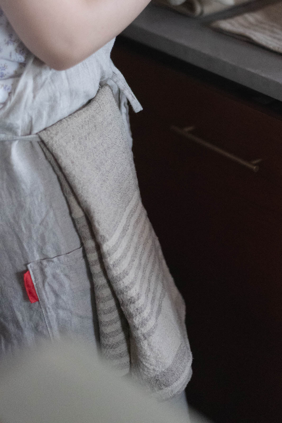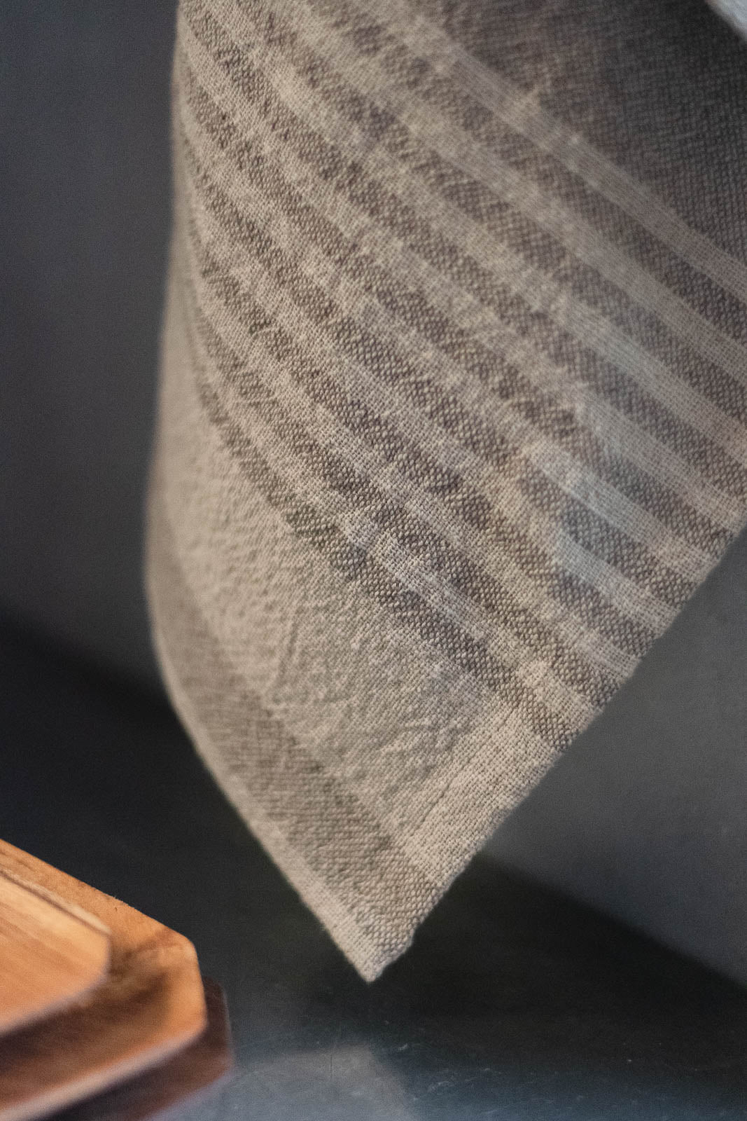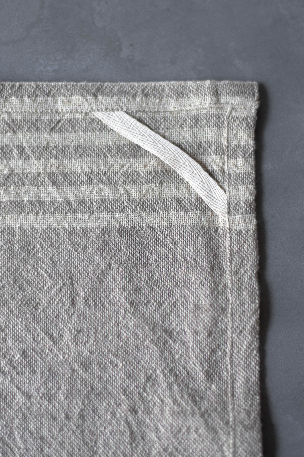 吸水性の高いコットンに、乾きが早く丈夫で長持ちするリネンを組み合わせた、ナチュラルな素材感。肌ざわりもやさしく、手に馴染むような、やわらかな手触りです。