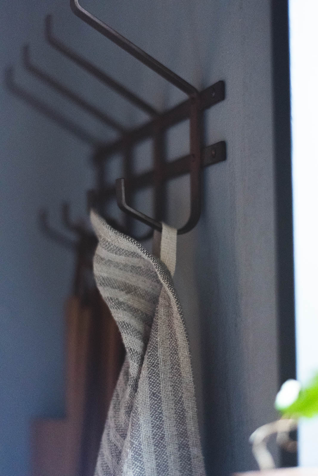 キッチンや洗面所のタオルハンガーに掛けるのはもちろん、フープ付きなのでS字フックや壁のフックなどにも引っ掛けてお使いいただけます。