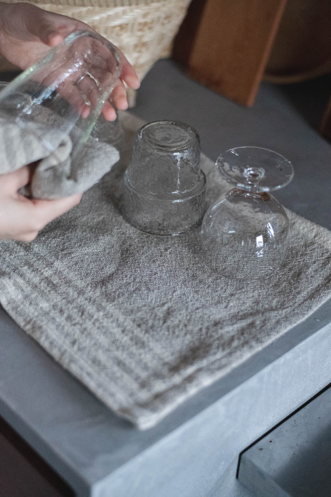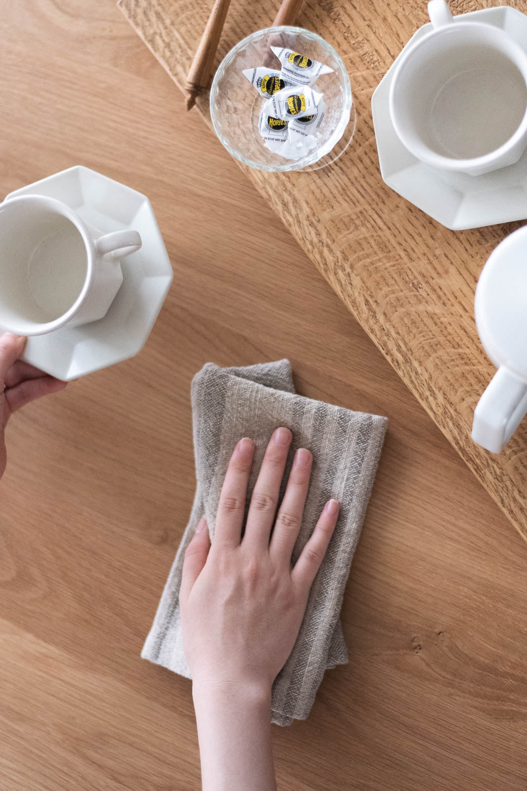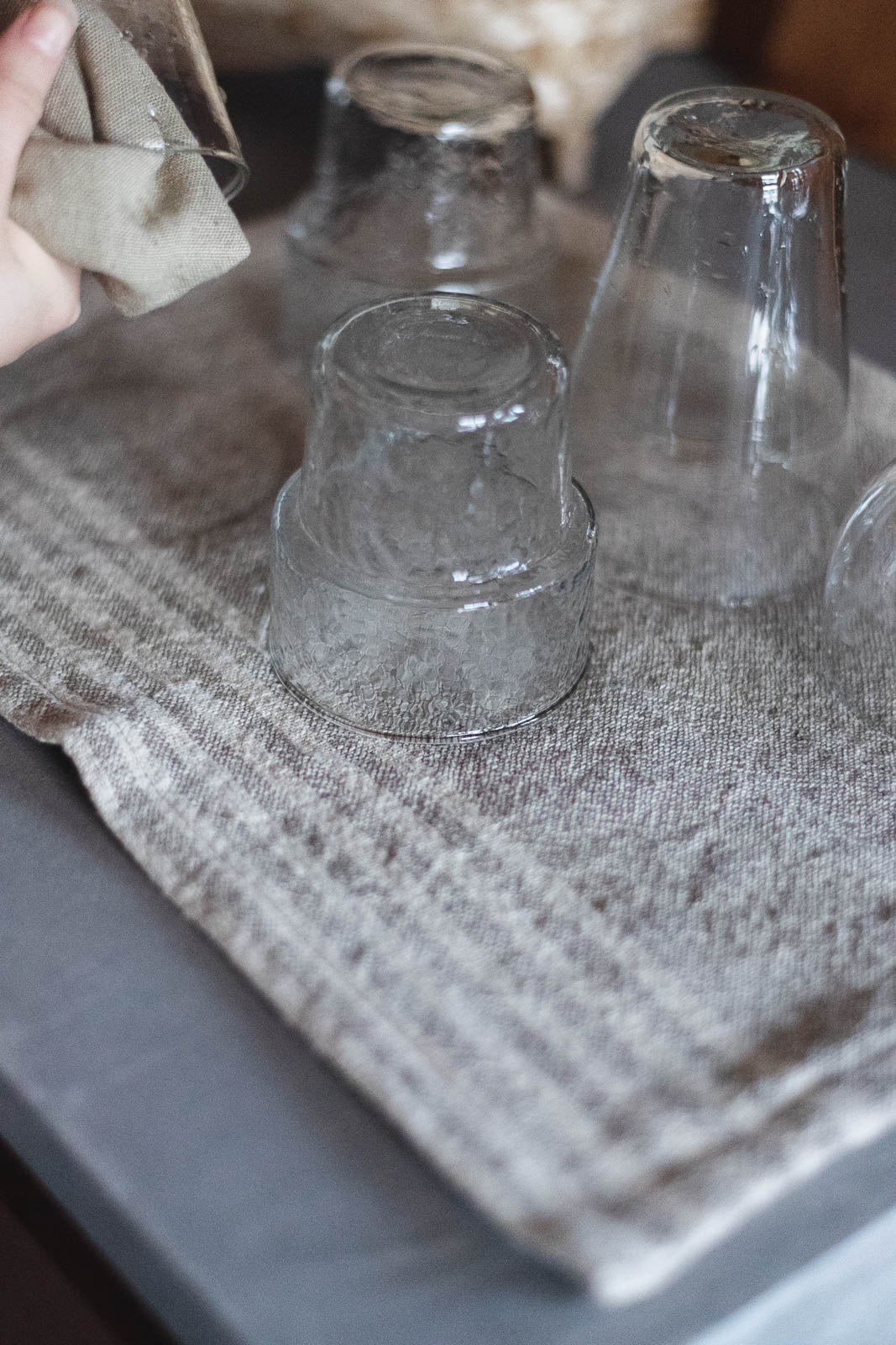 お皿を拭いたり、手拭きに使ったりと、柔らかく吸水性の高い素材は、日々のキッチンシーンで活躍してくれます。ナチュラルなカラーは汚れが目立ちにくく、台拭きやキッチンクロスとしてお掃除に使うのもおすすめです。