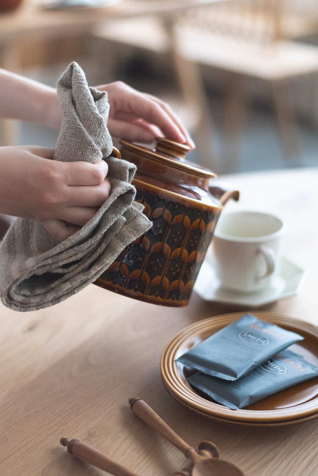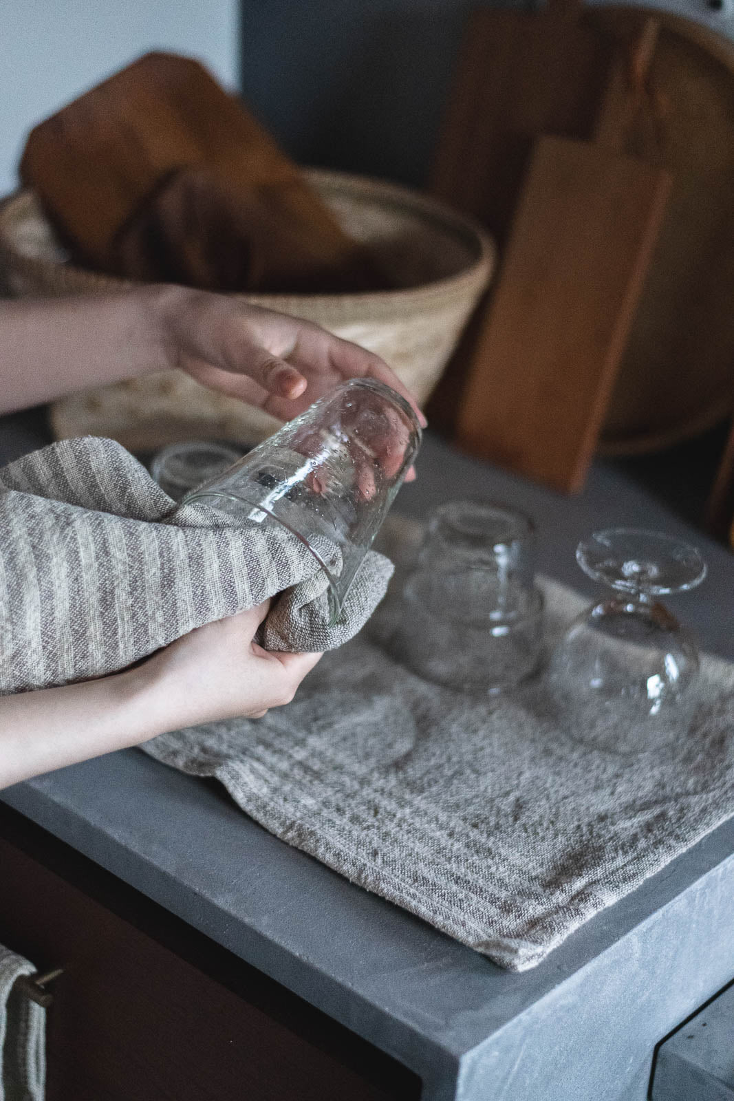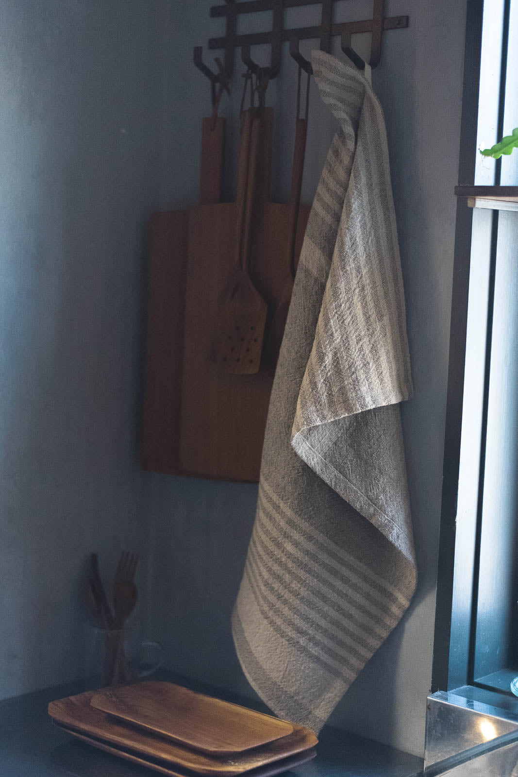 お皿を拭いたり、手拭きに使ったりと、柔らかく吸水性の高い素材は、日々のキッチンシーンで活躍してくれます。ナチュラルなカラーは汚れが目立ちにくく、台拭きやキッチンクロスとしてお掃除に使うのもおすすめです。