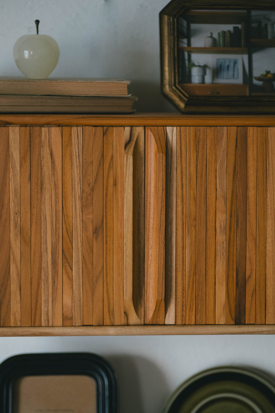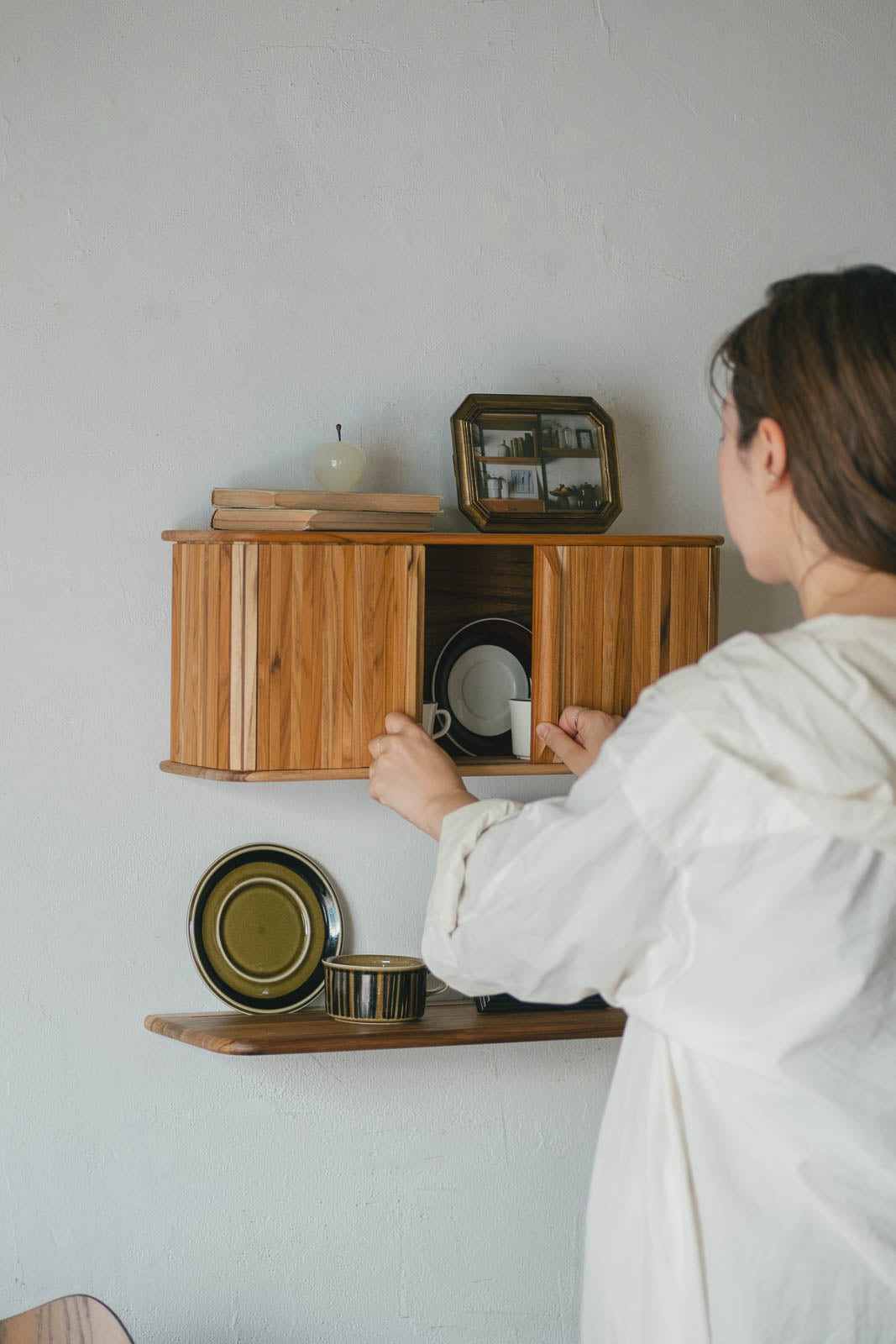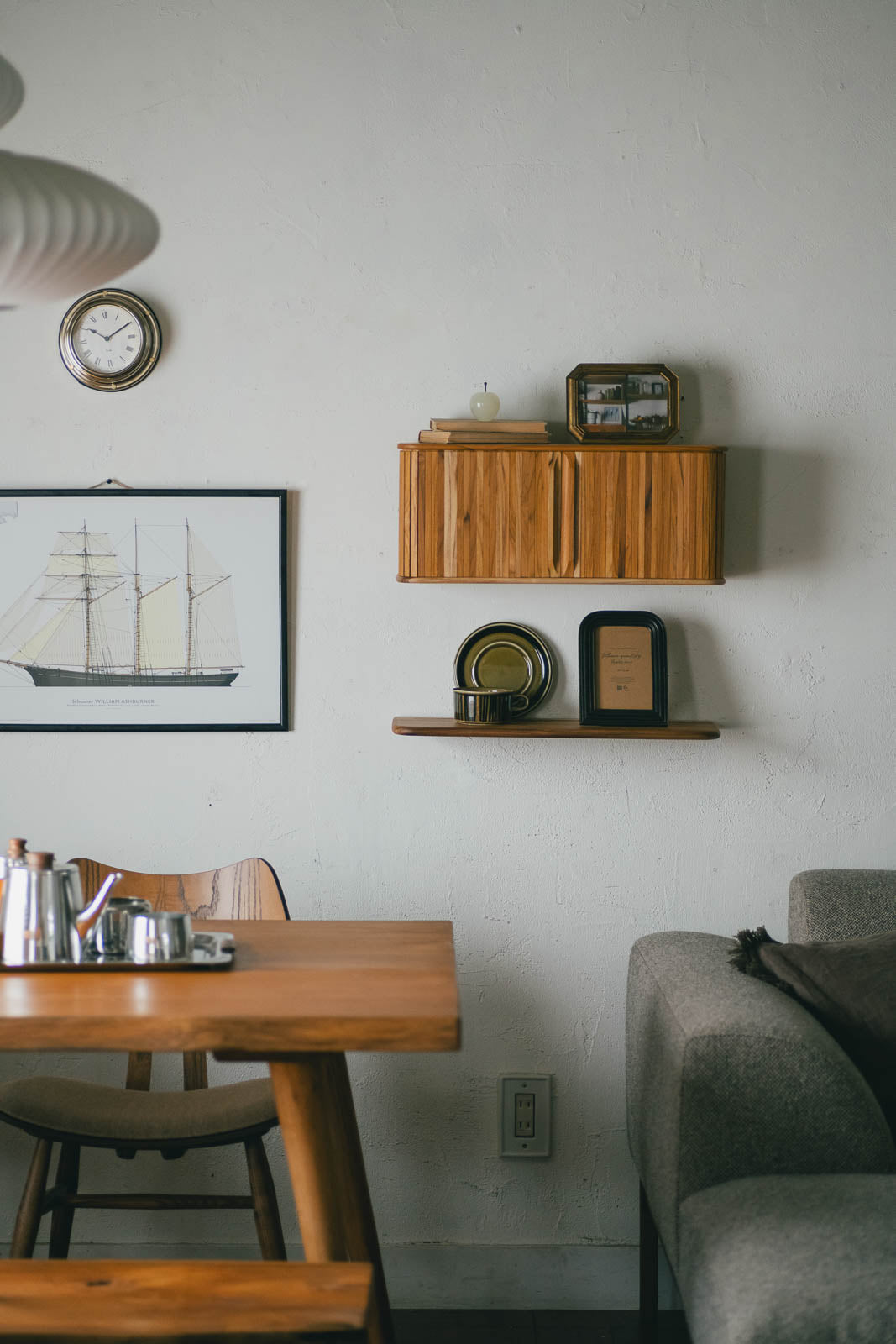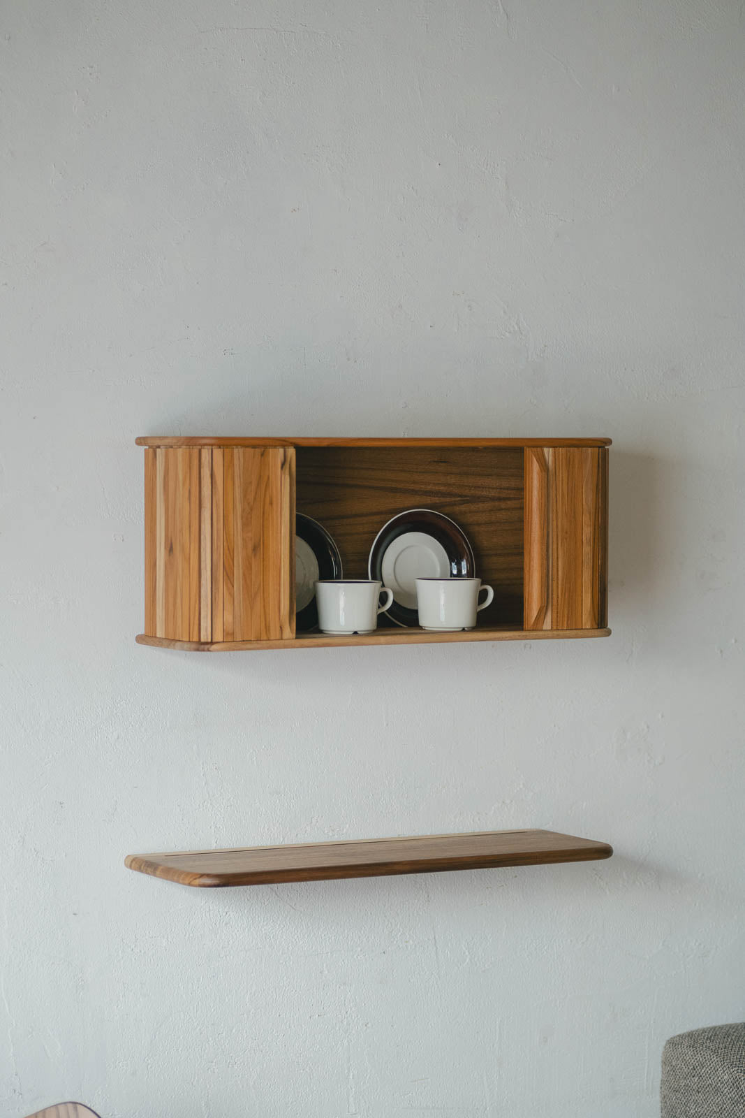 壁付けにすれば壁面を有効活用できますし、壁付けの際はチーク シェルフ500と横幅が同じなので、併せて飾ると気持ちよくお使いいただけます。