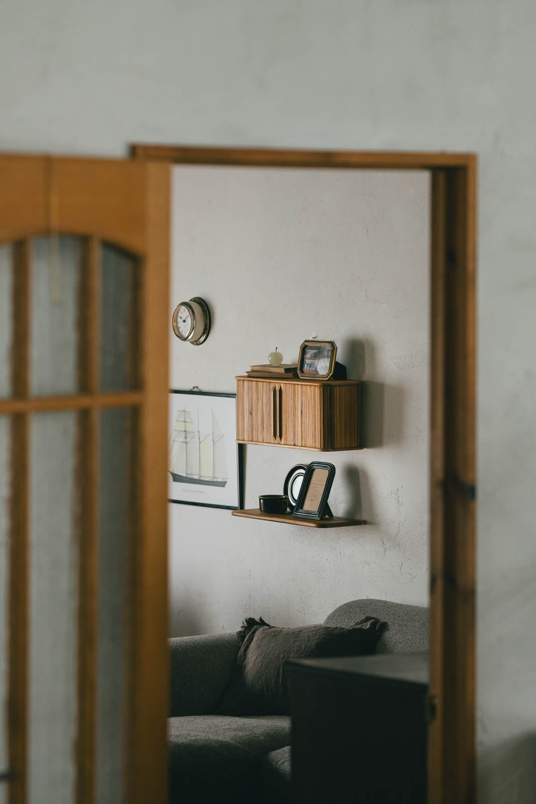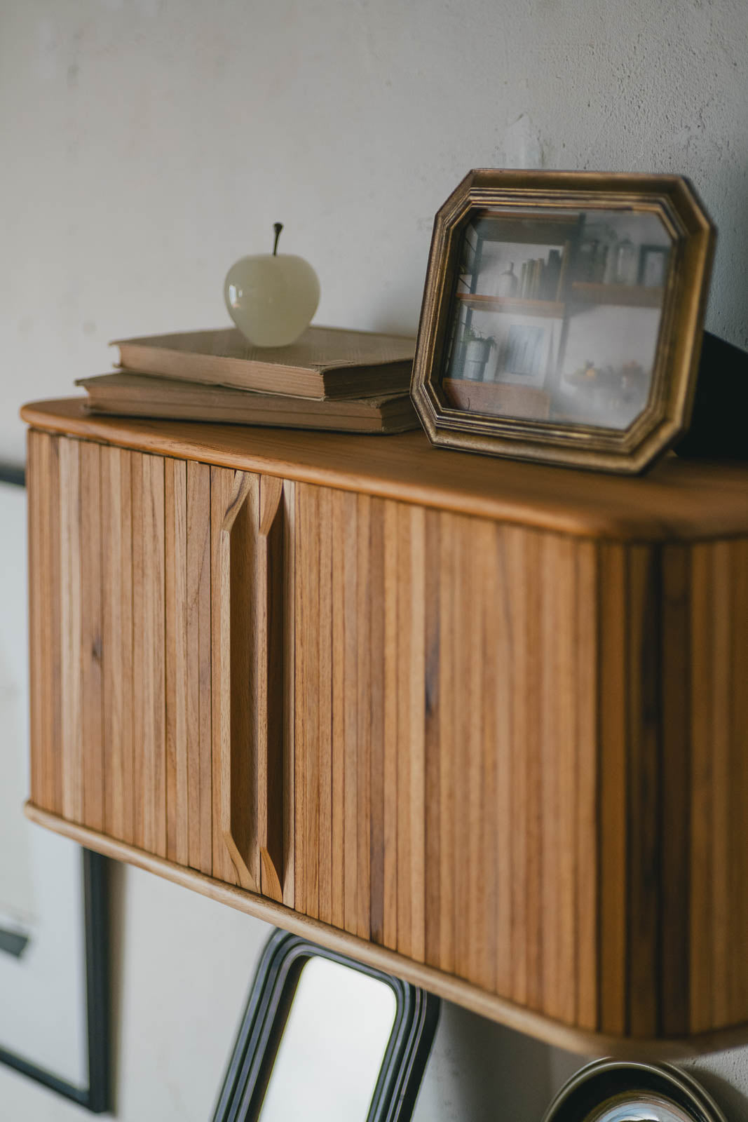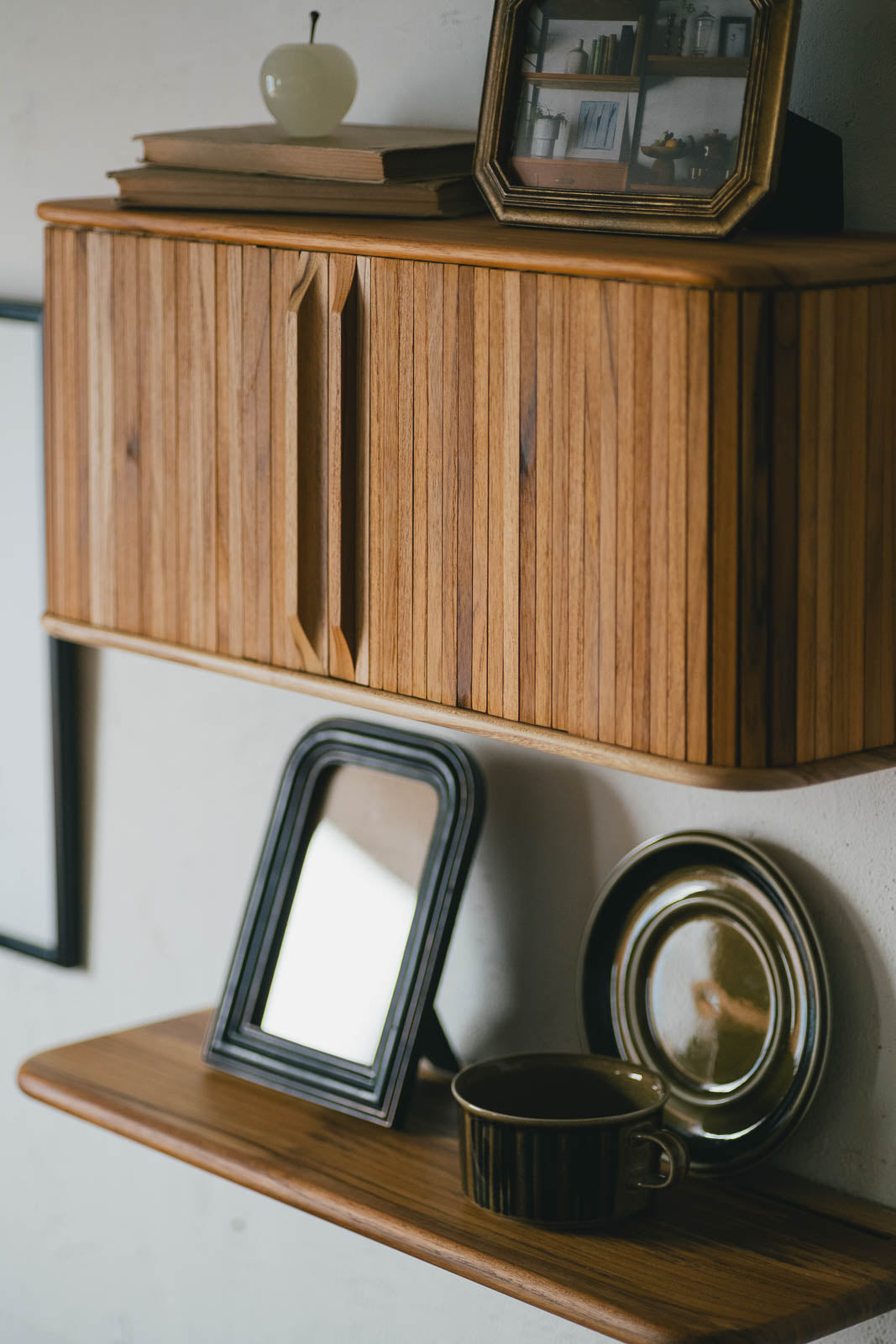 控えめなサイズ感ながら、省スペースで装飾や収納を楽しめる満足度の高いプロダクト。天板上にも物を飾ることができます。