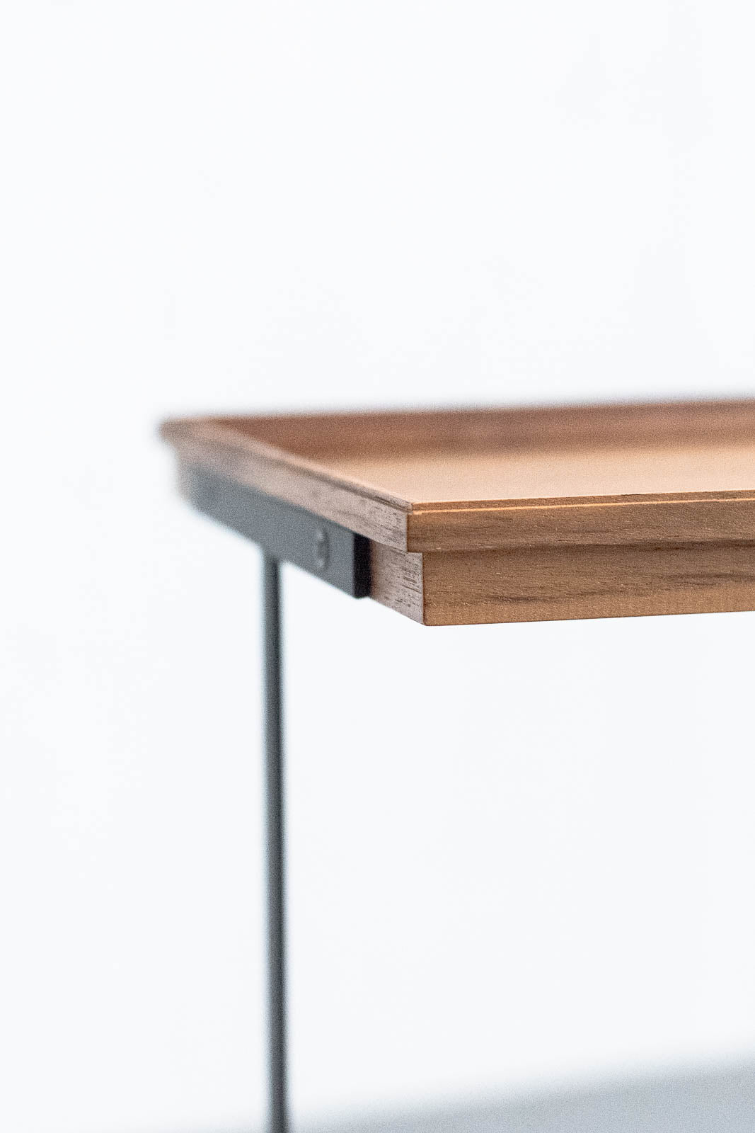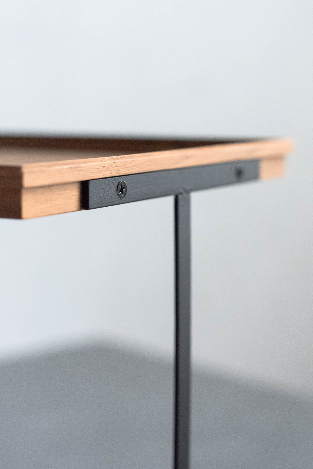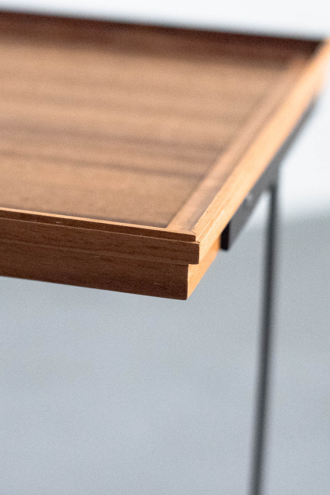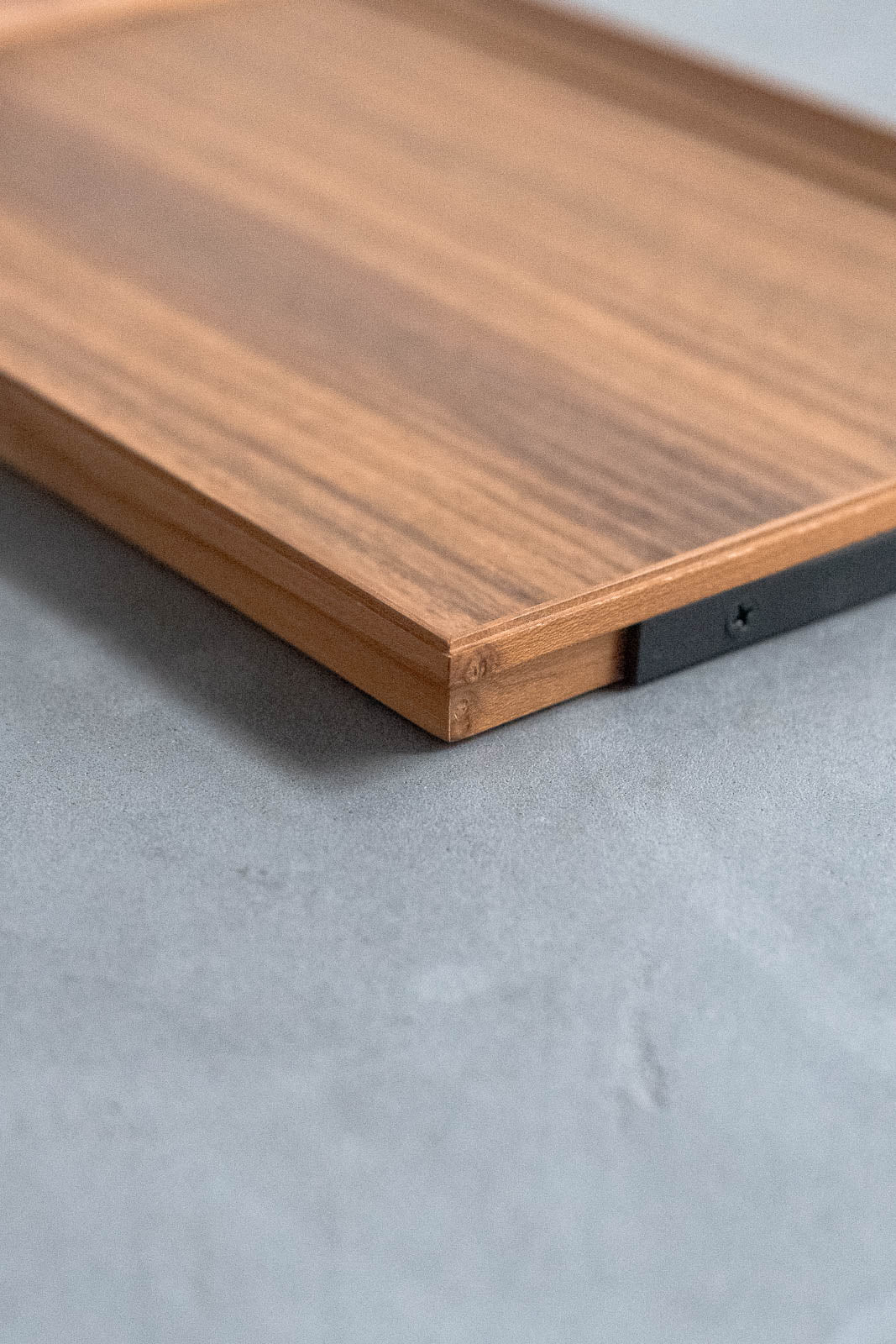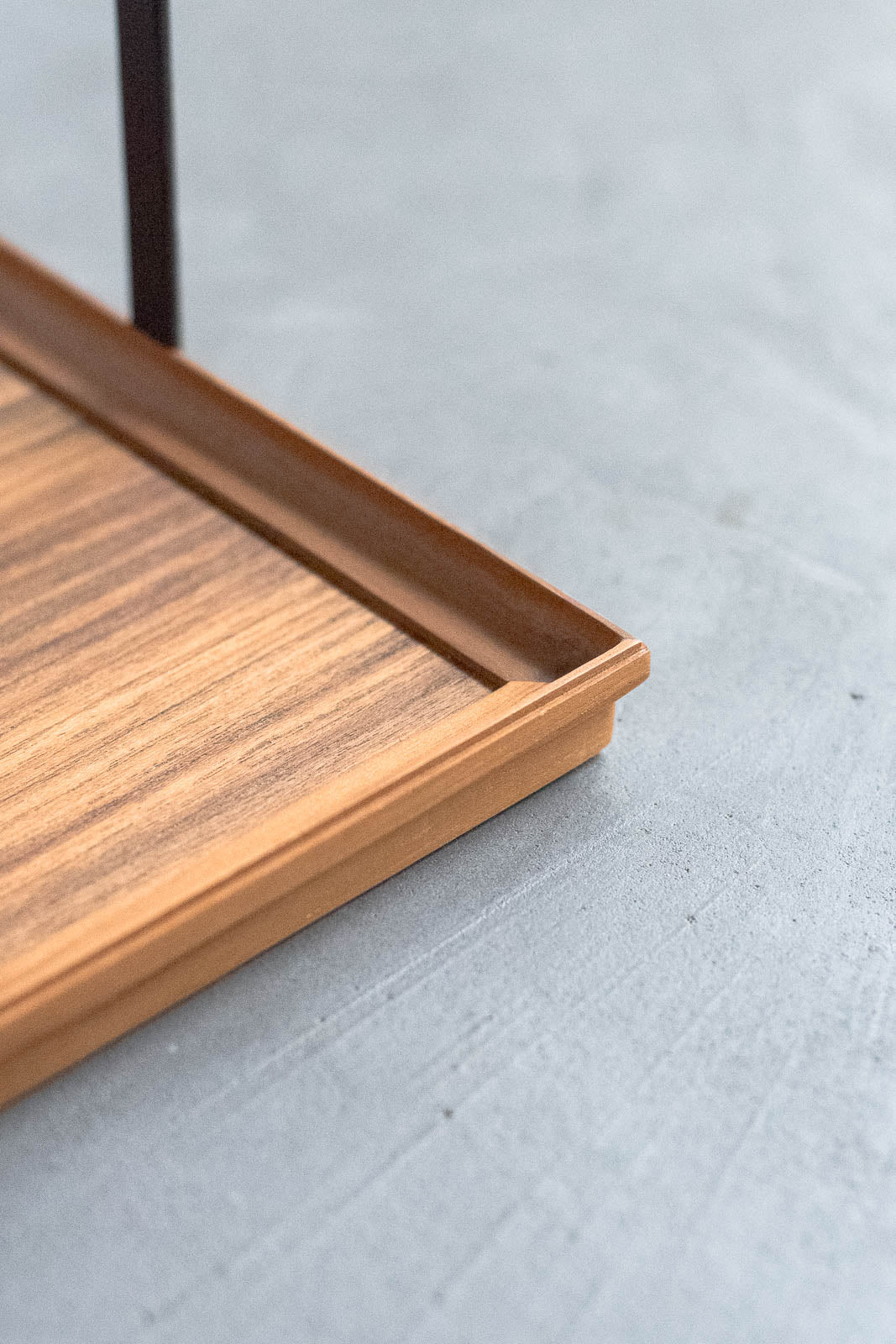 無垢チーク材×アイアンスタンドのシンプルな2段式トレイ。シンプルなデザインながら、温かみあるチークの風合いが目を惹く、各所で活躍するシェルフです。