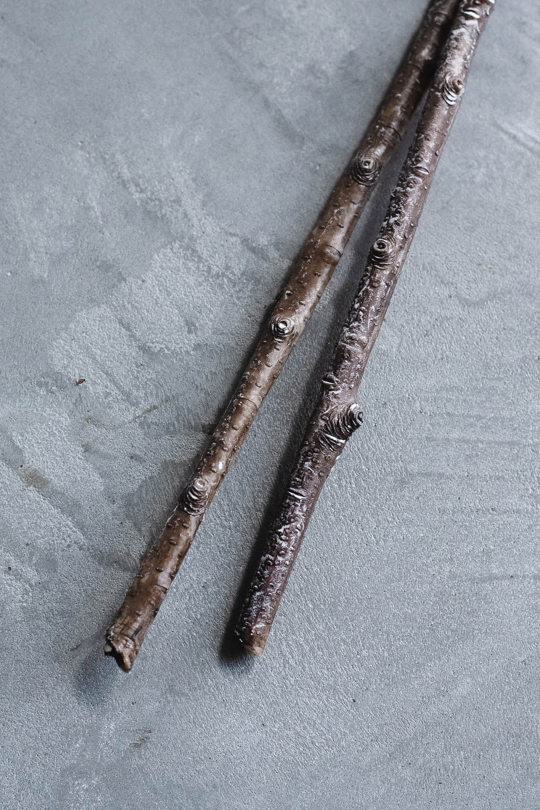 1本の軸から大きく2本に枝分かれしているMサイズ、1本の軸から3本に枝分かれしているLサイズ。どちらも高さは約100cmで、自然な枝ぶりの違いが美しい立体感を演出します。