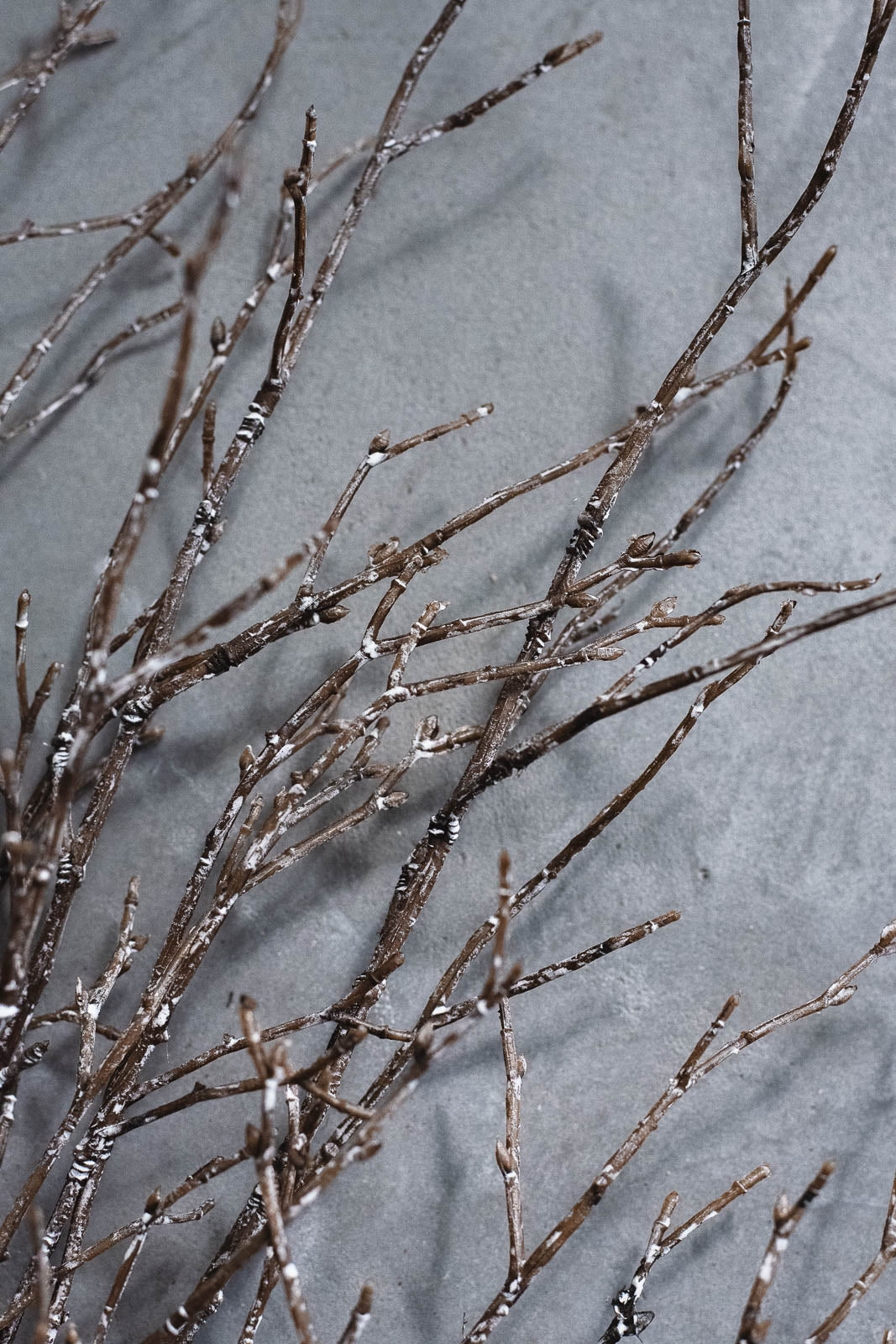 カバノキ(バーチ)の枝をモチーフに、繊細な雪化粧を思わせる「ブラウン/ホワイト」カラーで仕上げたフェイクブランチ2本セットです。