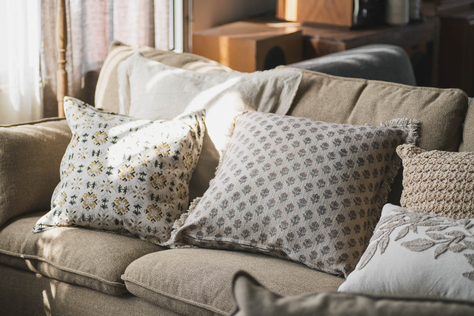 ほどよい張りとやわらかさがあり、クッションとしての肌あたりもやさしく、暮らしにやさしく寄り添ってくれる素材。