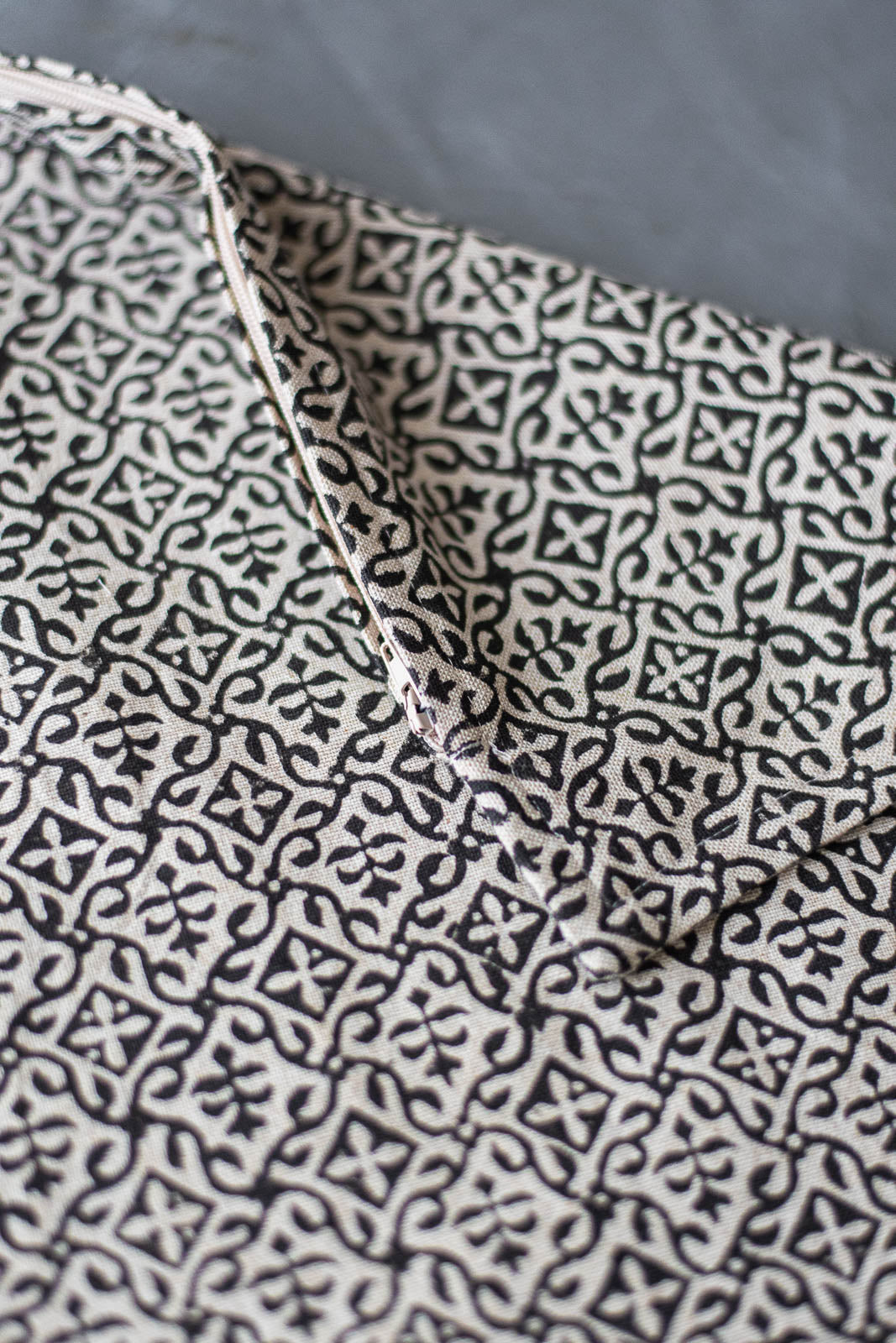 同じブロックプリントのカバーと組み合わせれば、統一感のあるコーディネートに。リネンや無地のクッションとミックスすれば、抜け感のある軽やかな印象にも。柄や素材の違いを楽しみながら、自分らしい空間づくりをお楽しみください。