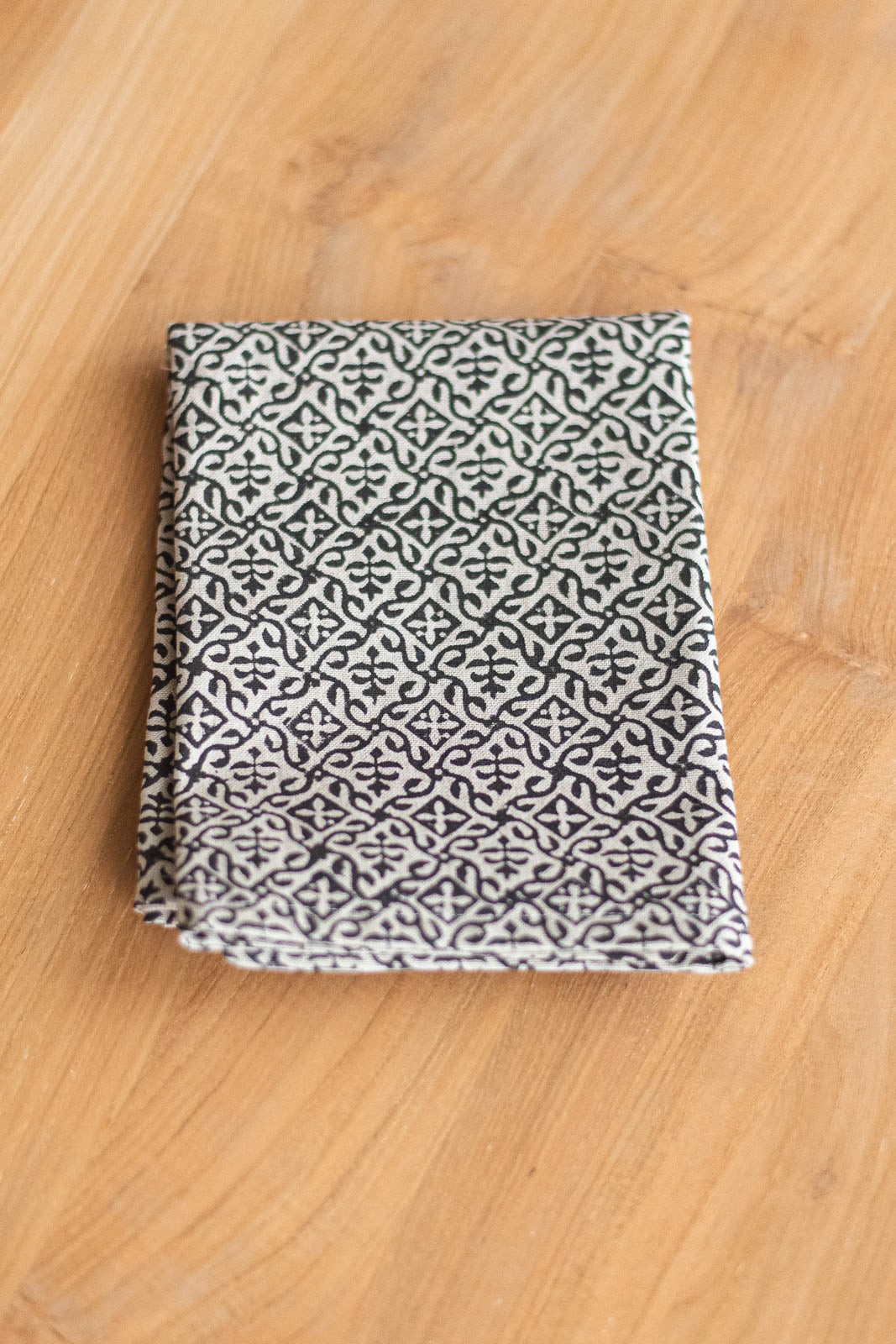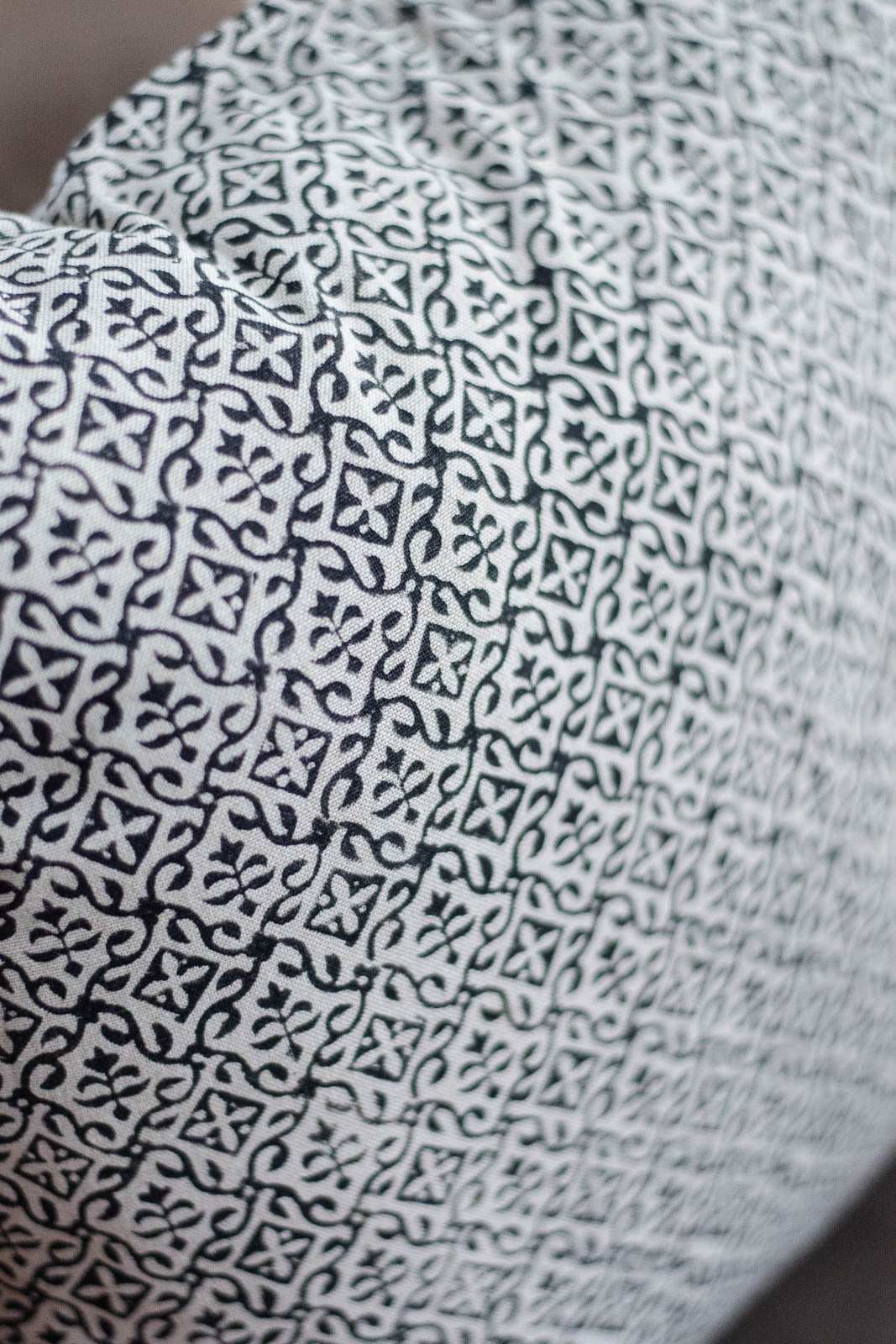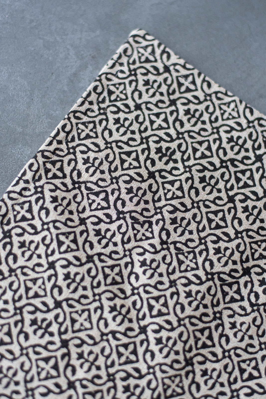 黒インクでプリントされた柄が生地にきりっと映え、落ち着いた中にもほどよい存在感を放ちます。