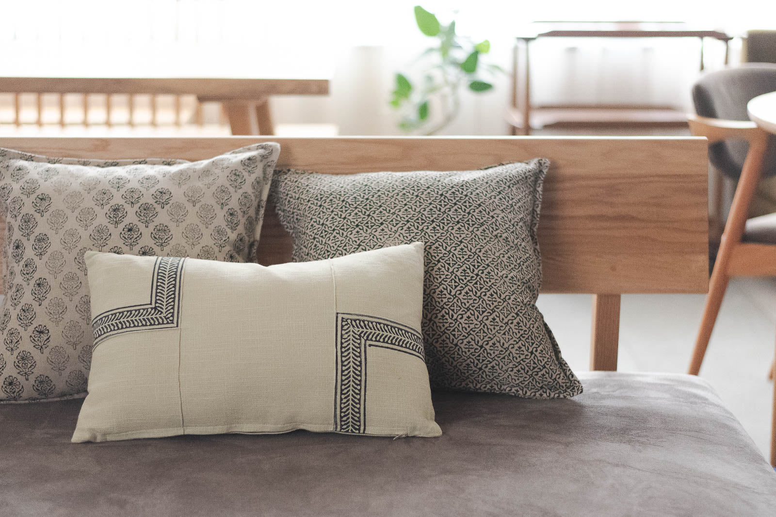 ブロックプリントクッションカバー リフリー - 選ぶ楽しみ、重ねる彩り。暮らしに染み込む手しごとのぬくもり