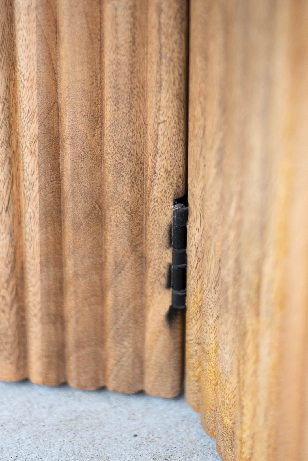 ベースには、オイル仕上げを施したマンゴーウッドを使用。リブ(縦溝)状にデザインされた円柱フォルムは、クラシカルでありながらも軽やかな印象を与えます。滑らかな曲線と木肌のぬくもりが、石の冷たさをやわらかく包み込み、調和の取れた佇まいをつくり出します。