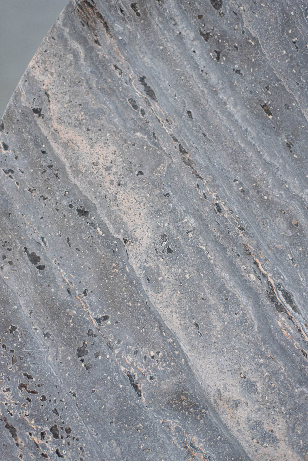 天板には、グレーを基調とした天然トラバーチンを採用。流れるような模様と深みのある色合いが、確かな存在感を放ちます。天然石ならではの個体差は、一点ごとに異なる表情を楽しませてくれます。