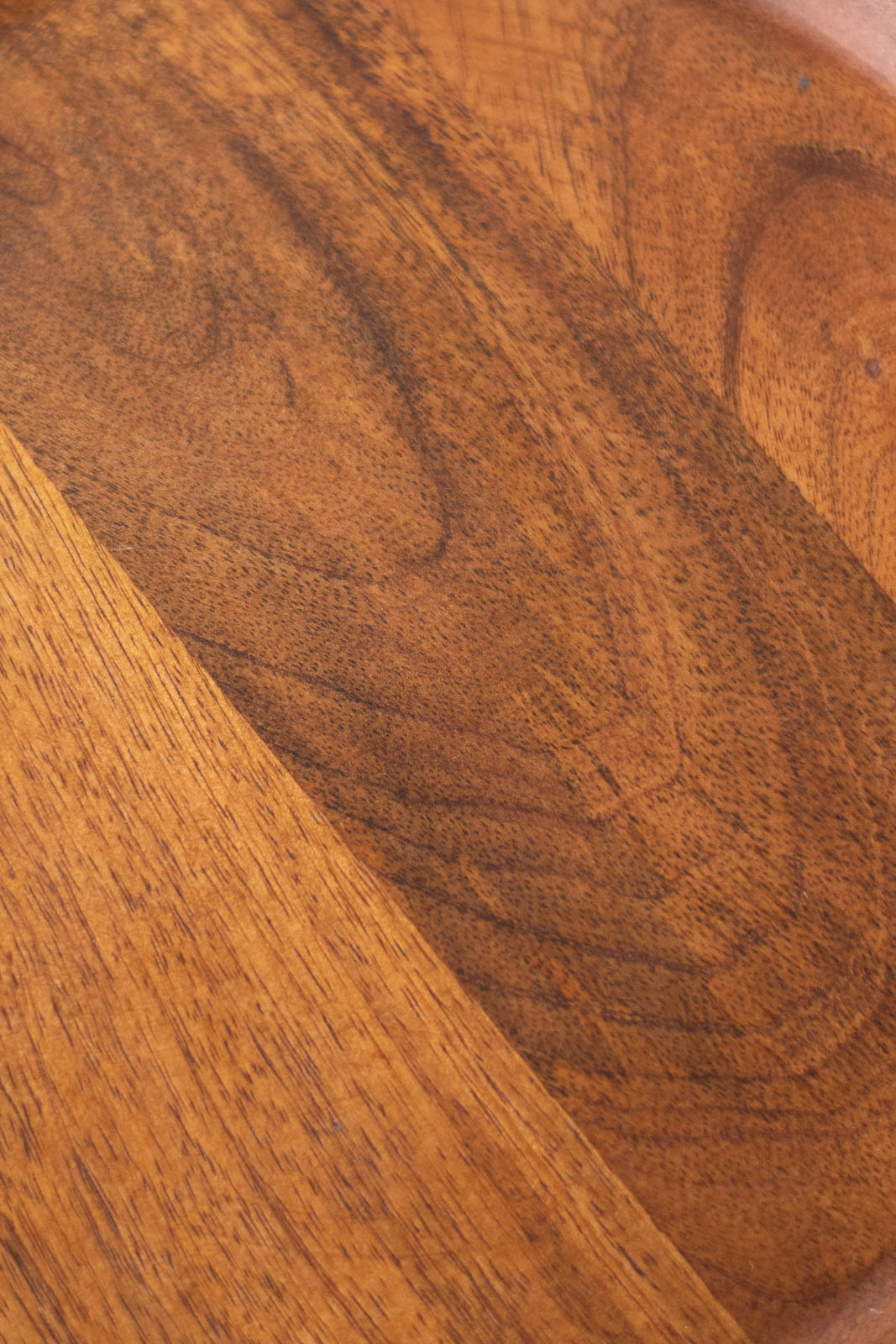 天板には、温かみのあるダークカラーのマンゴーウッドを使用。縁がやわらかく立ち上がり、やさしい佇まいに。