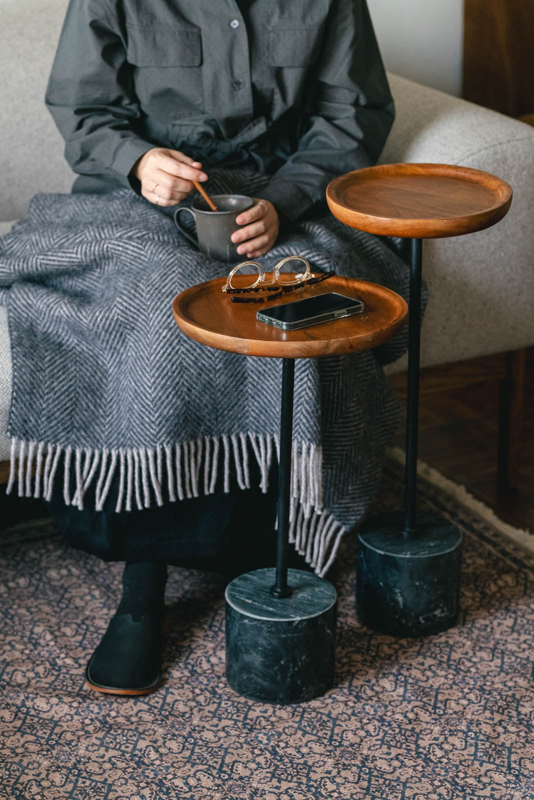 セドメット スタンド サイドテーブル - 大理石の深みと木のぬくもりが響き合う、やさしい存在感。