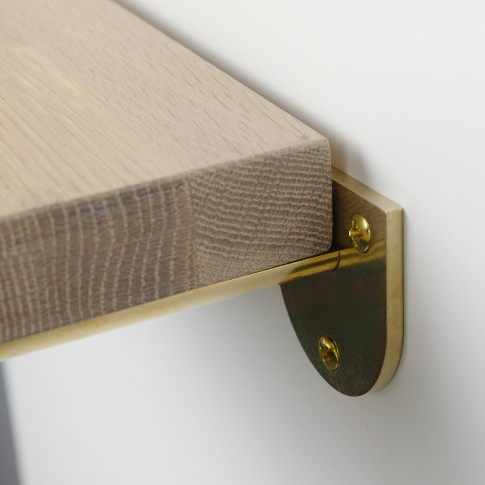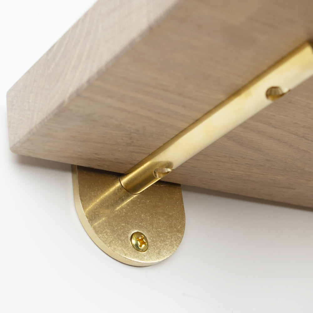 オーソドックスなL型ブラケットに対してフラットな土台を使用することで、スペースの限られた場所への取り付けや、複数段で棚を作る際の金物の干渉が起こらない仕様となりました。