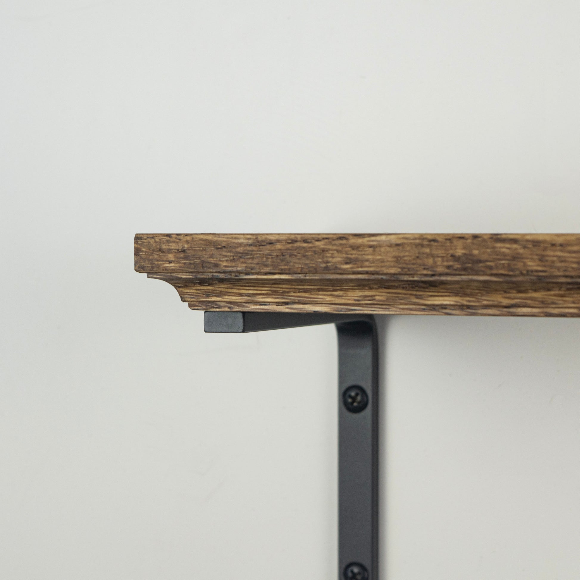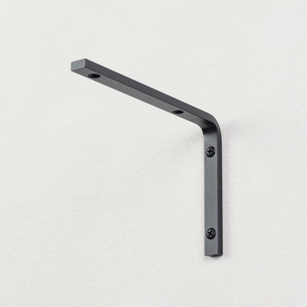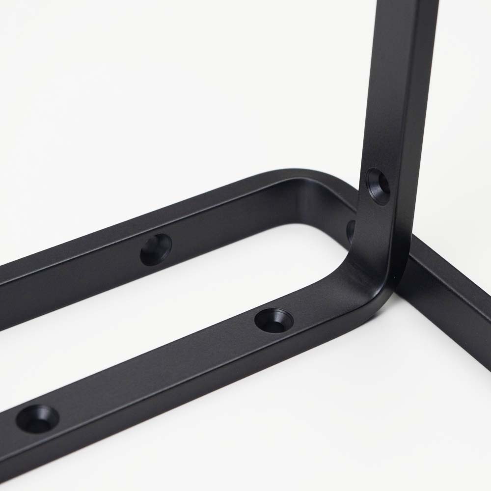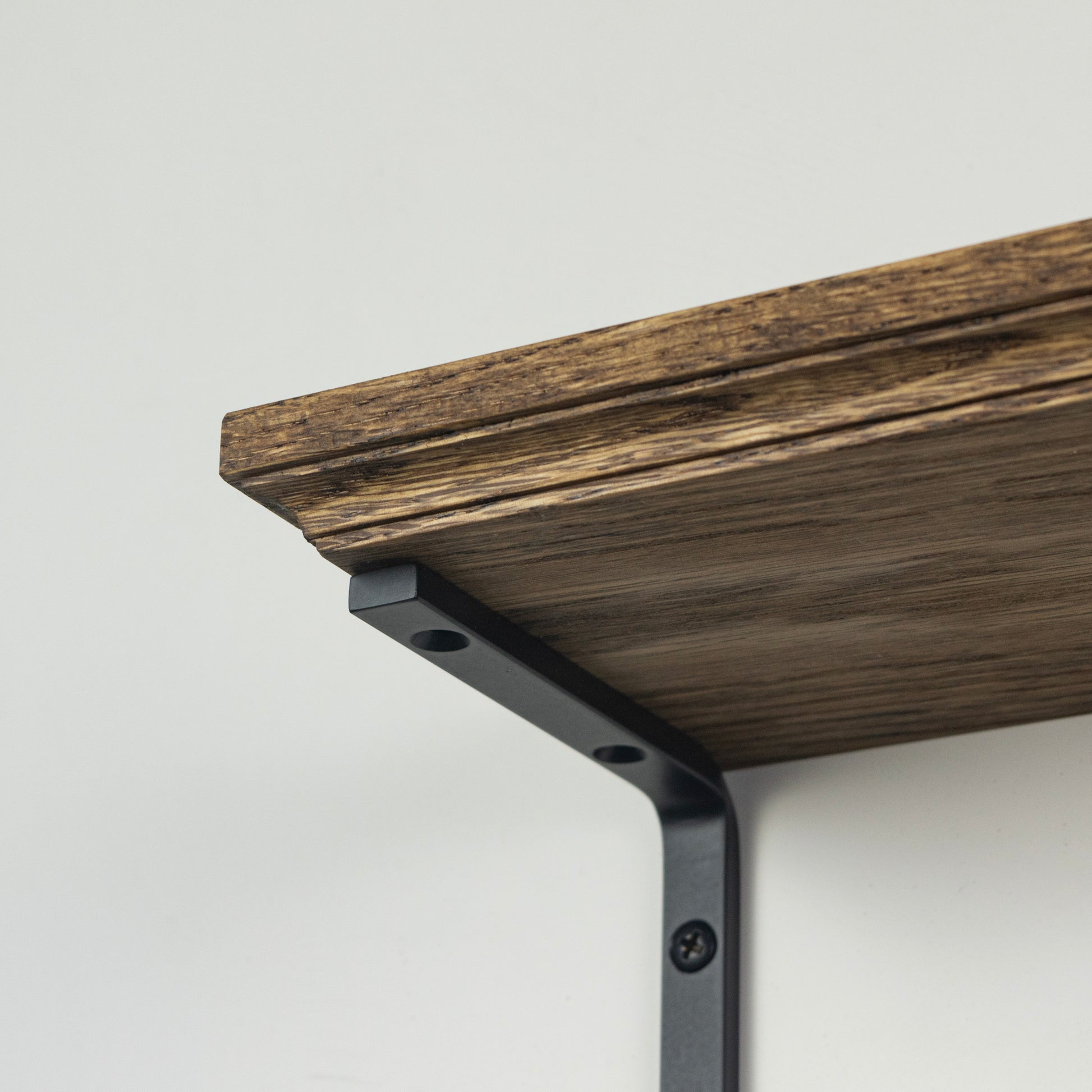 厚さ6ミリのアイアンプレートを曲げたFlat Bracketは、スクエアかつストレートなデザインが特徴的です。黒塗装を施してあり、シックでクールな雰囲気によく合います。
