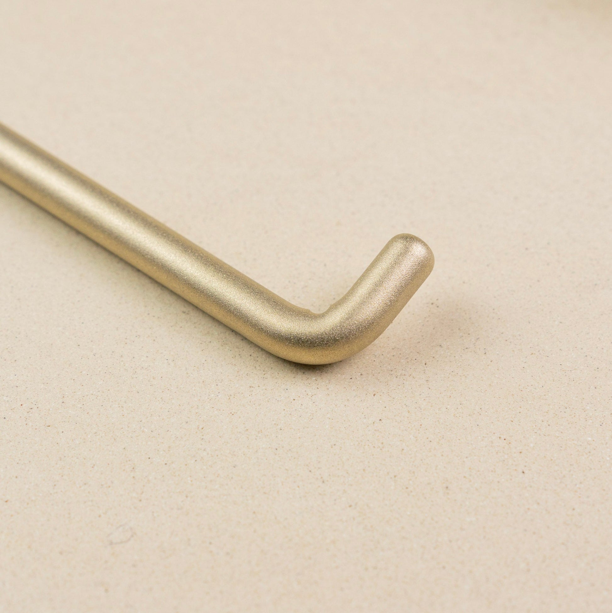 美しい曲げを施したアームに、厚みのあるベースプレートを組み合わせたシンプルモダンなペーパーホルダー。押さえ部分にはローレット加工(画像3枚目参照)を施した素材を使用することで、空間に上品な雰囲気を演出します。