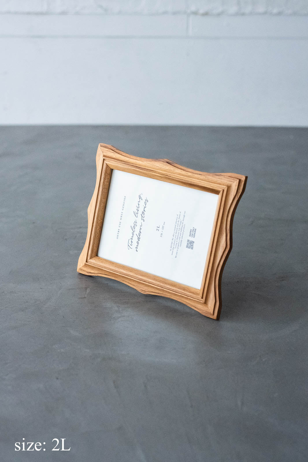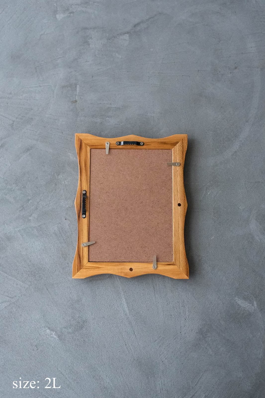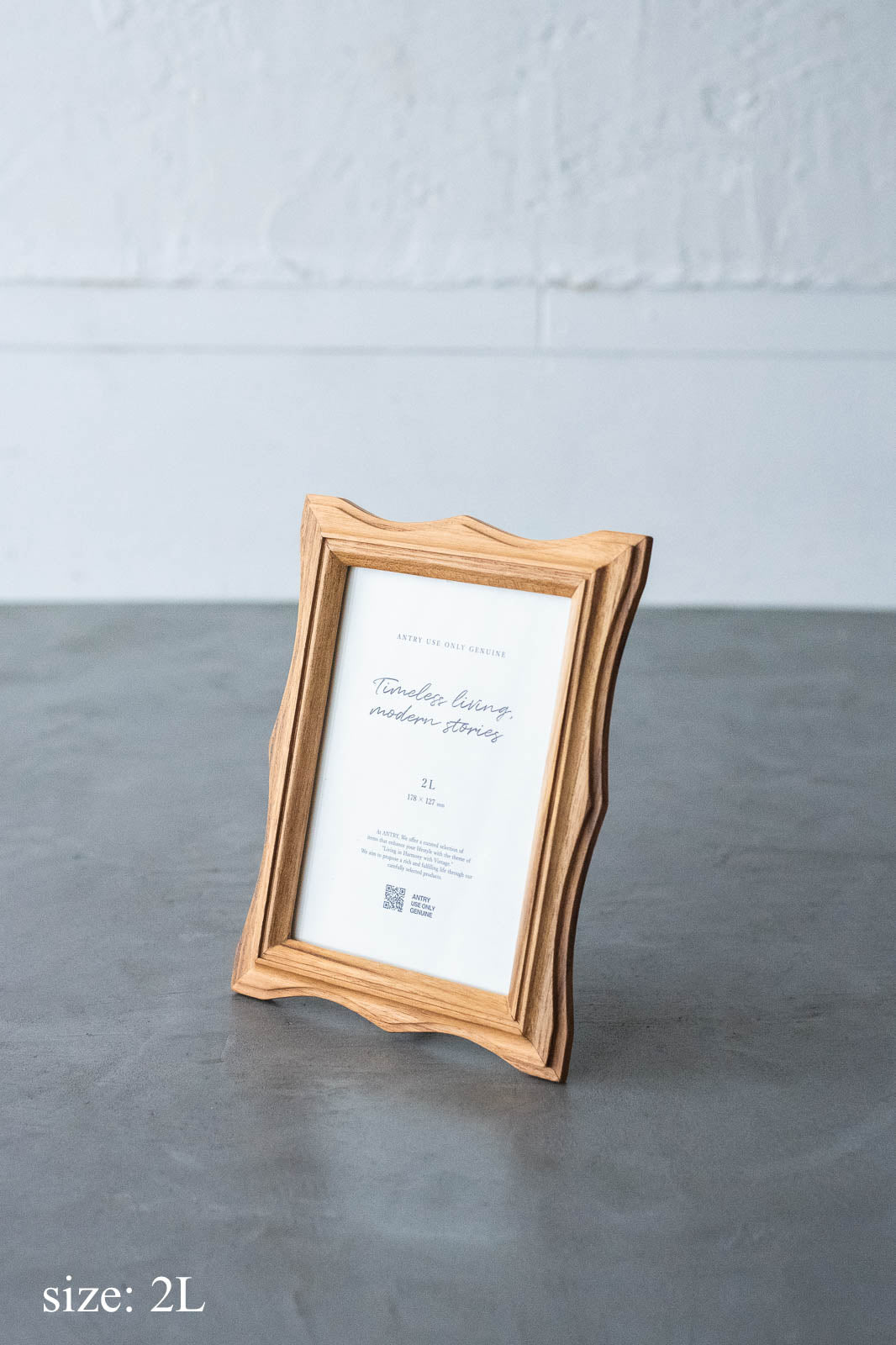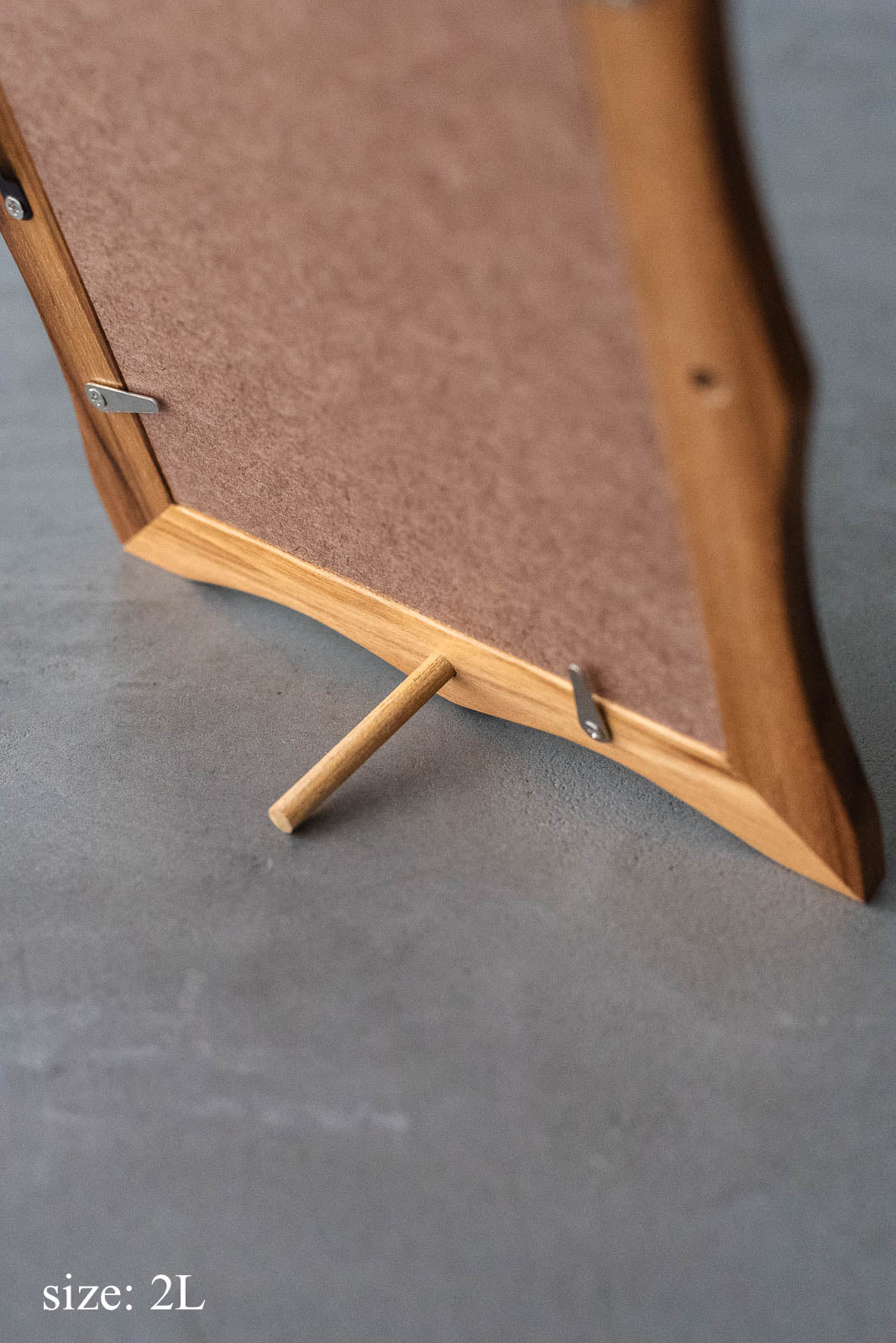 上質なチーク材を使用し、自然の風合いを生かしながら縁にやわらかな動きをつけたフォトフレーム。