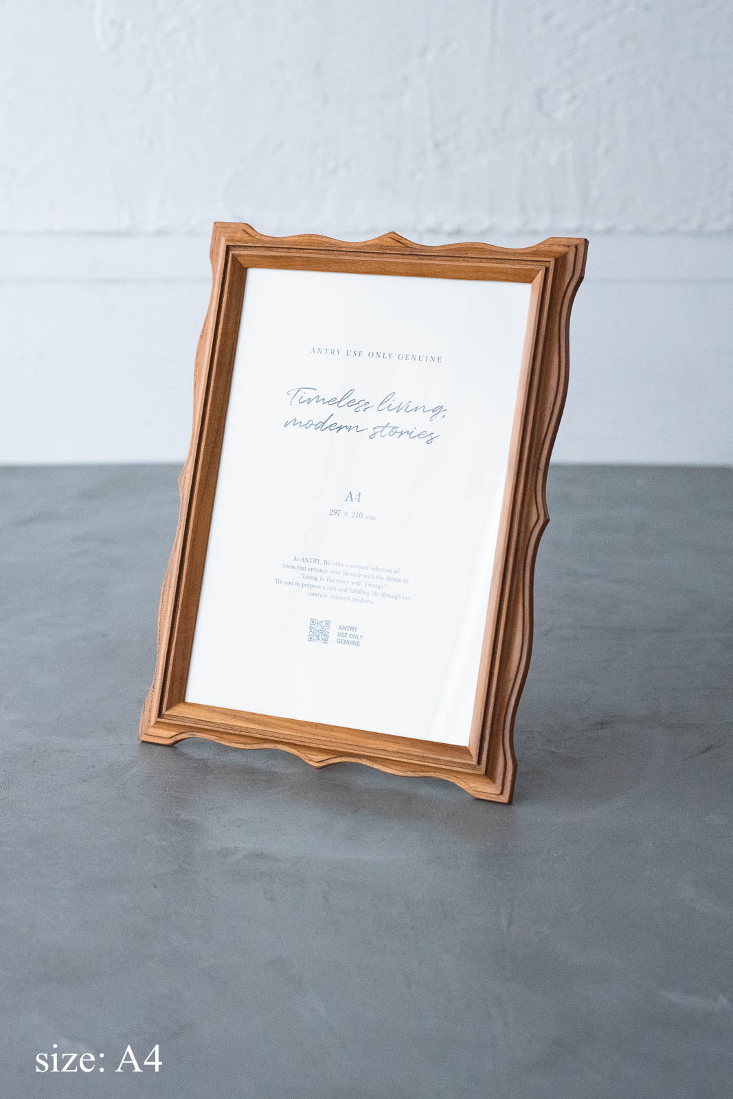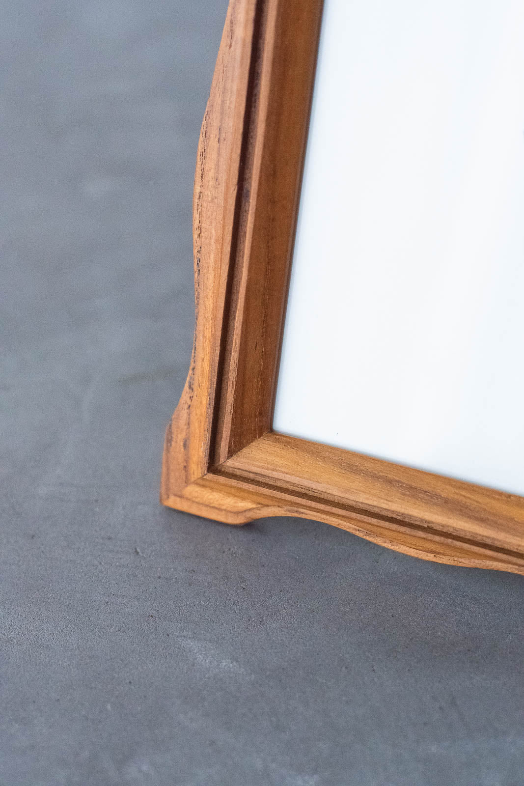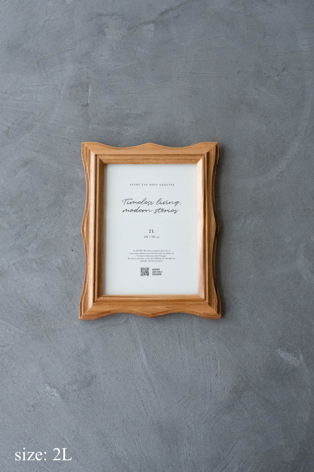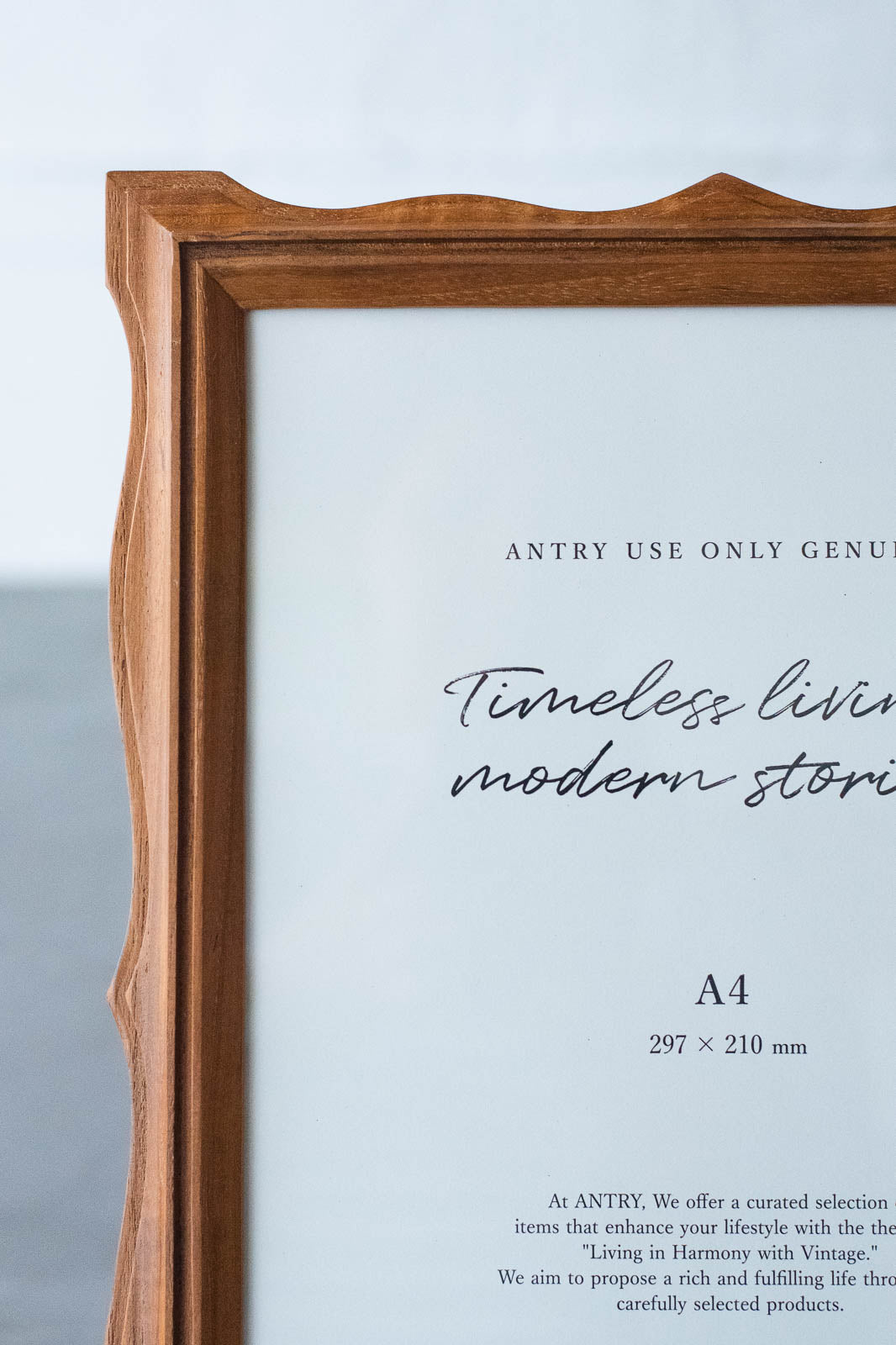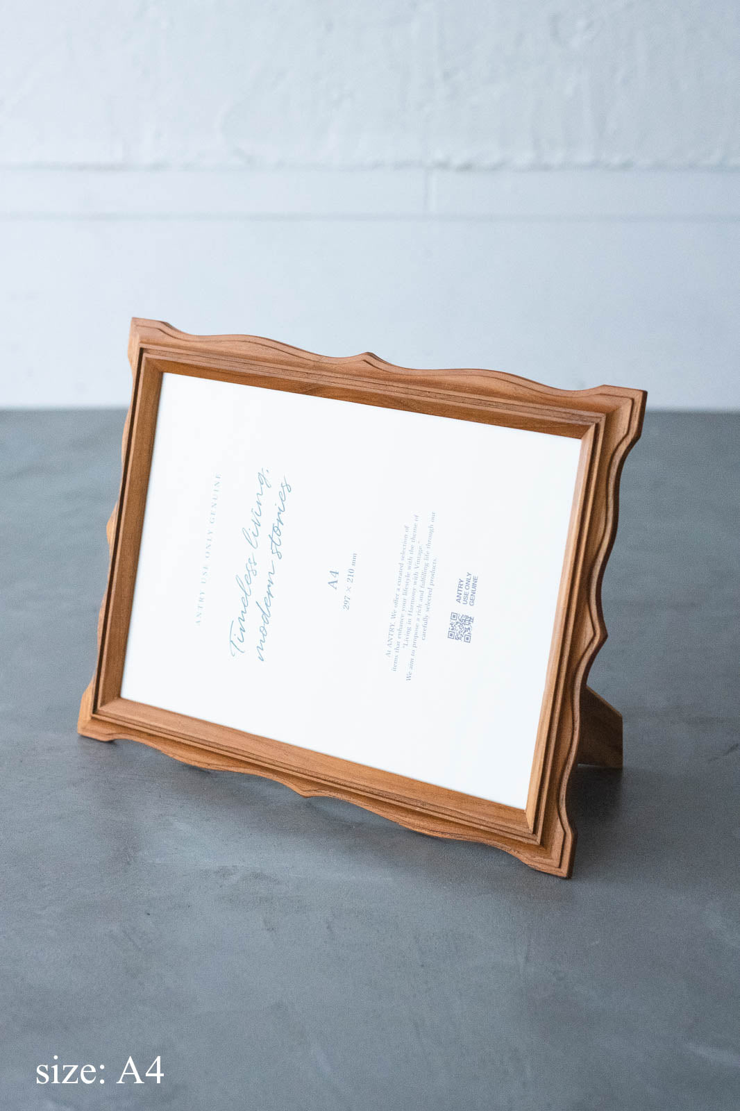 上質なチーク材を使用し、自然の風合いを生かしながら縁にやわらかな動きをつけたフォトフレーム。