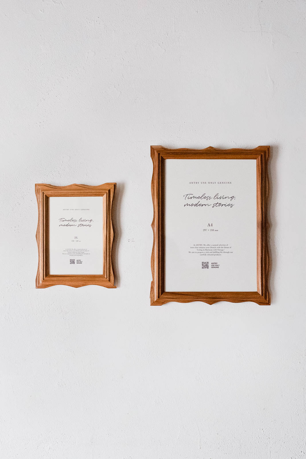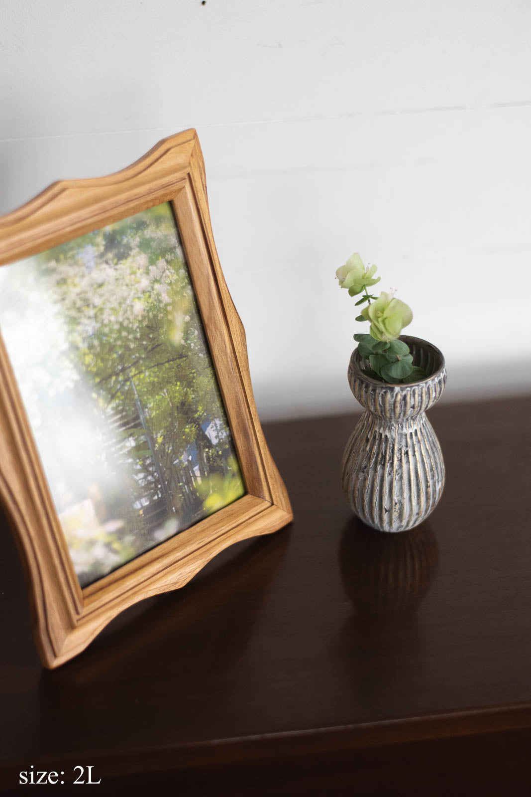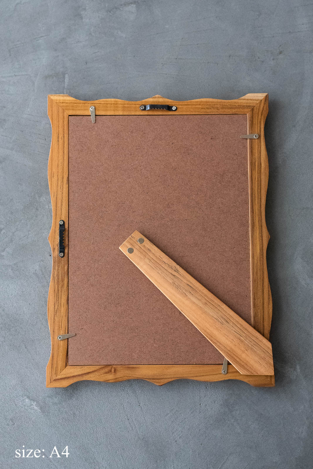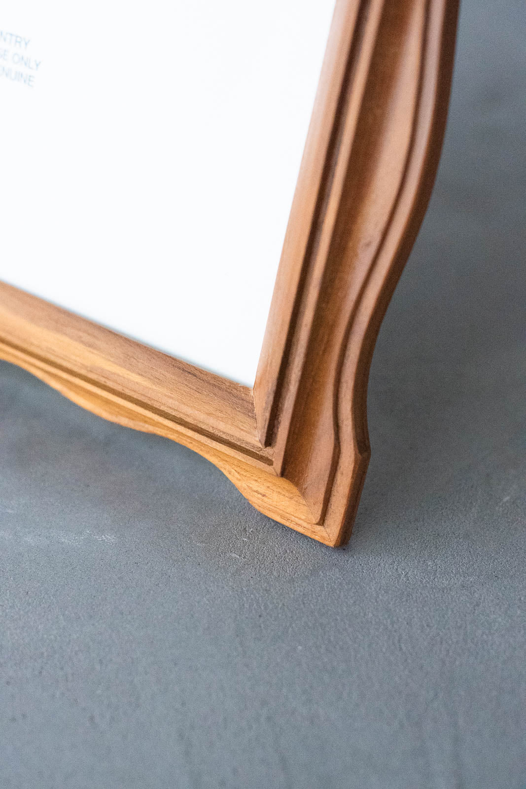 上質なチーク材を使用し、自然の風合いを生かしながら縁にやわらかな動きをつけたフォトフレーム。