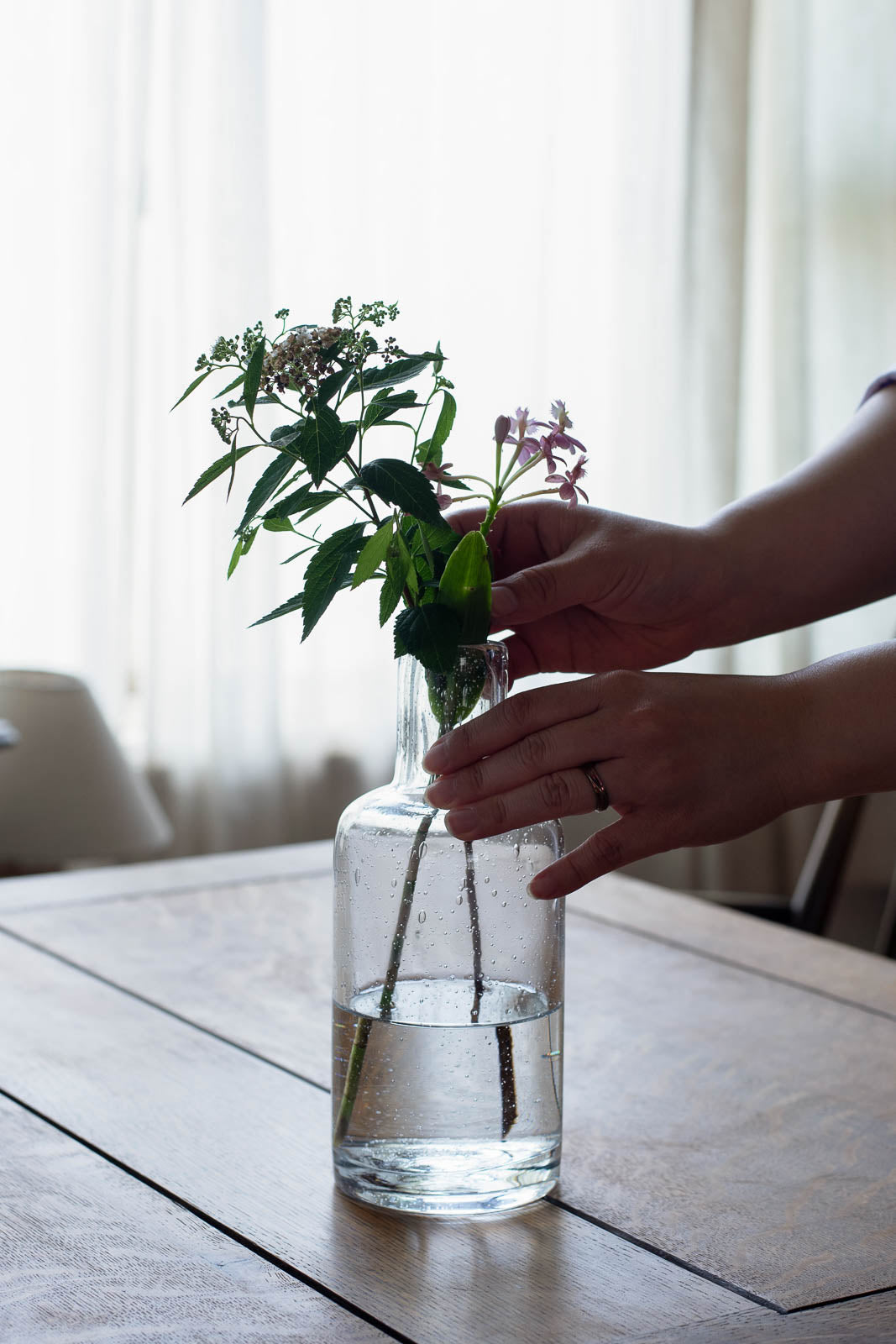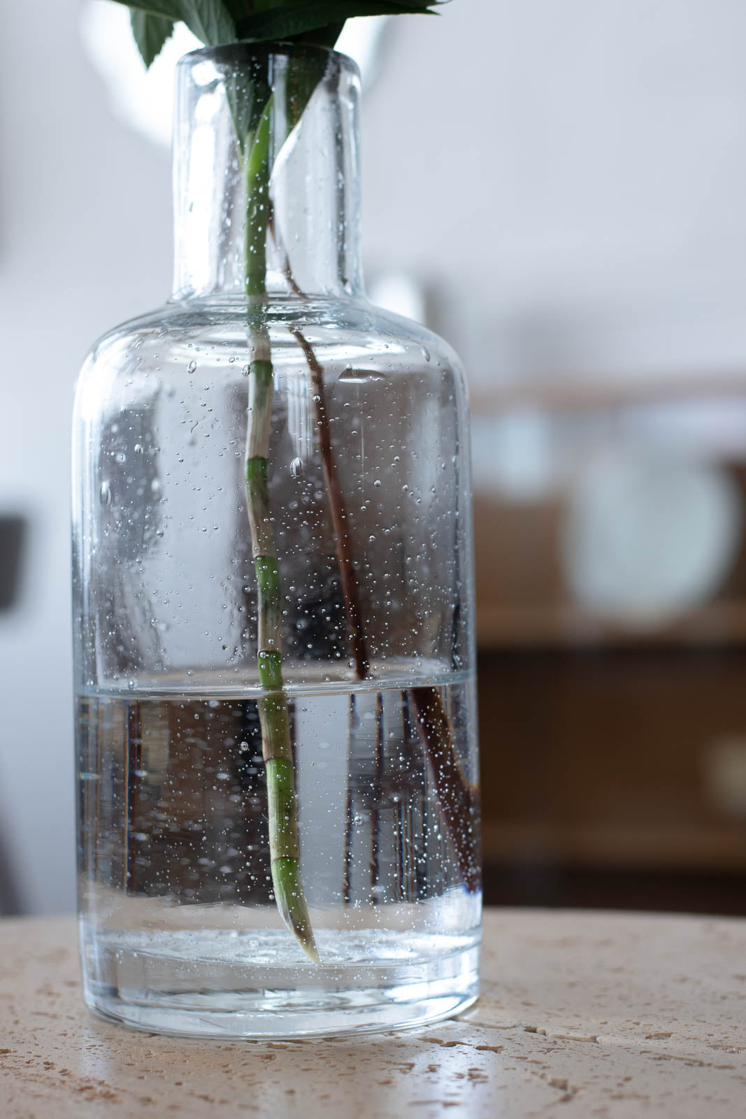 Fizzy Labは、口径が約3cmなので、細めの枝ものやお花をいくつか組み合わせても、すっきりとした印象に仕上がります。長さのある植物もしっかりと自立し、バランスよく美しく飾っていただけます。高さは22cmと程よく、お部屋に取り入れやすいサイズ感。気負わず使えるフラワーベースがひとつあると、さまざまなシーンで活躍してくれます。