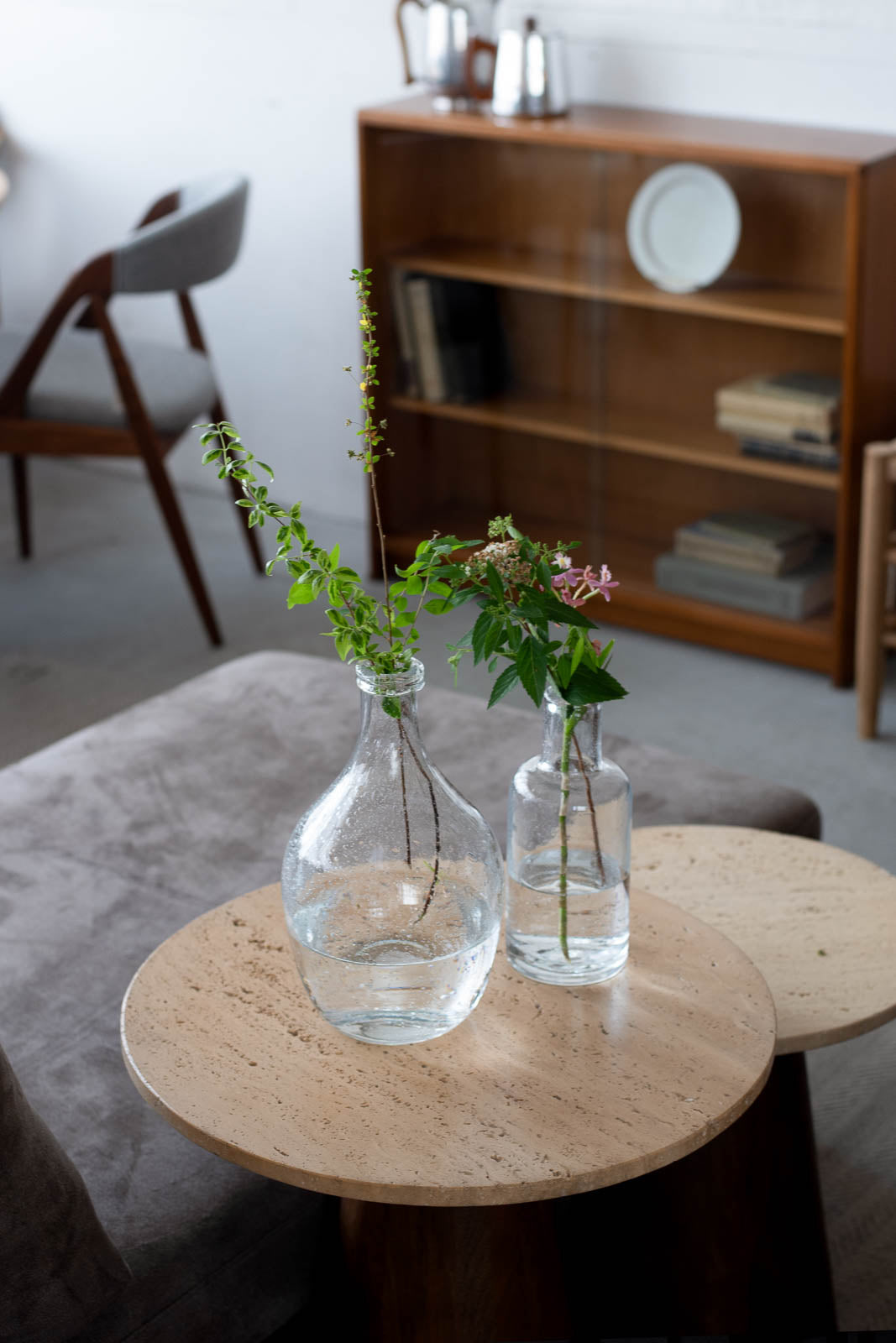 Fizzy Glass Vaseシリーズには、形の異なるガラスの花器もご用意しています。シリーズで揃えることで、統一感を保ちながら、高さやフォルムの違いが空間に奥行きをもたらし、まとまりのあるコーディネートが叶います。