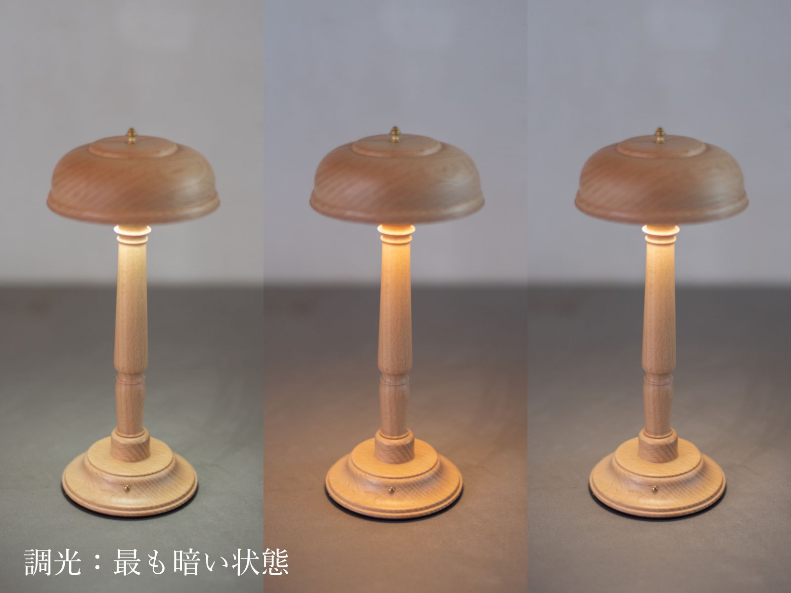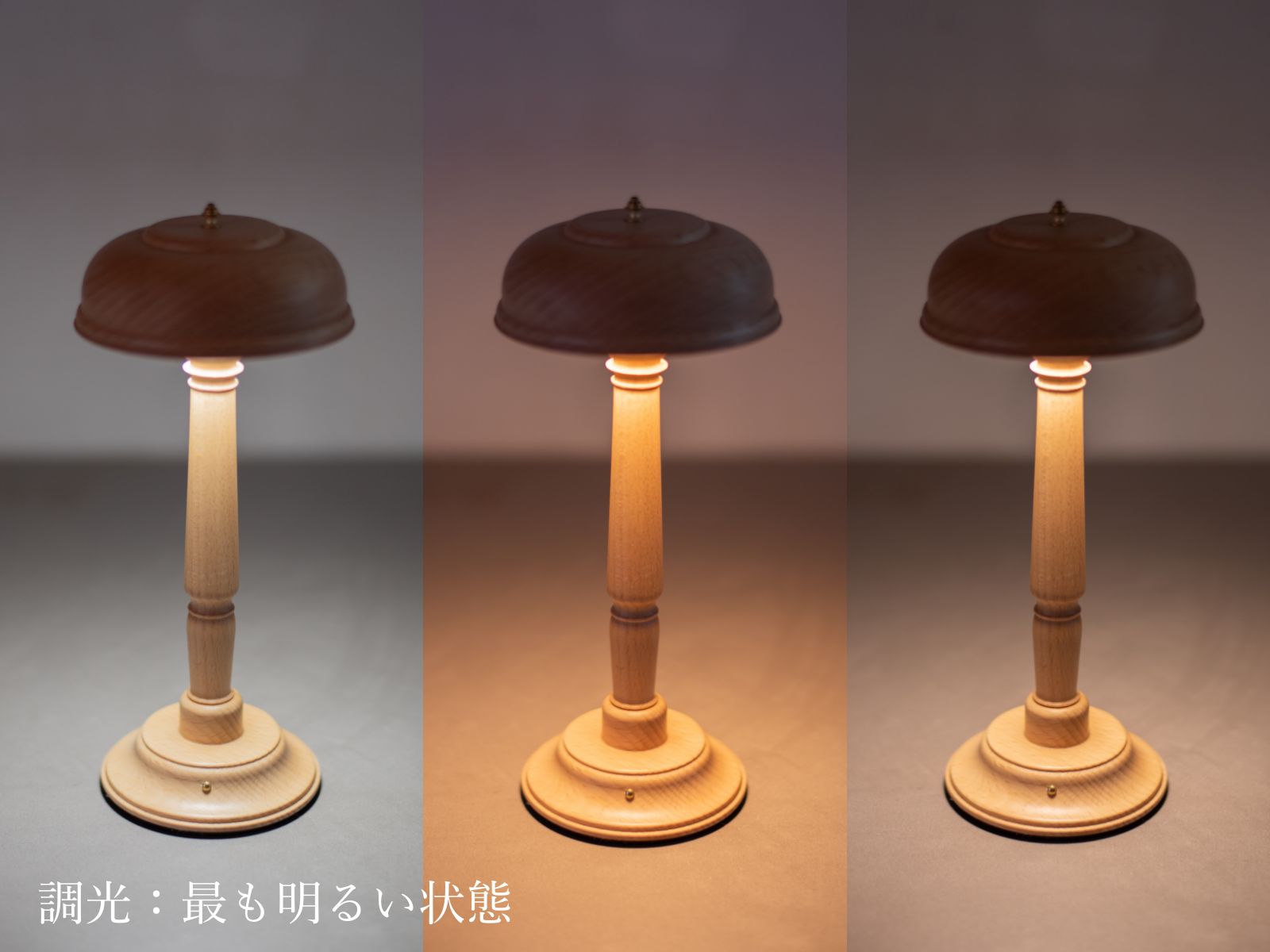 スイッチを長押し(3秒以上)することで明るさを無段階に調節できます。明るさはメモリー機能で記憶されるので、消灯前と同じ明るさで再点灯されます。