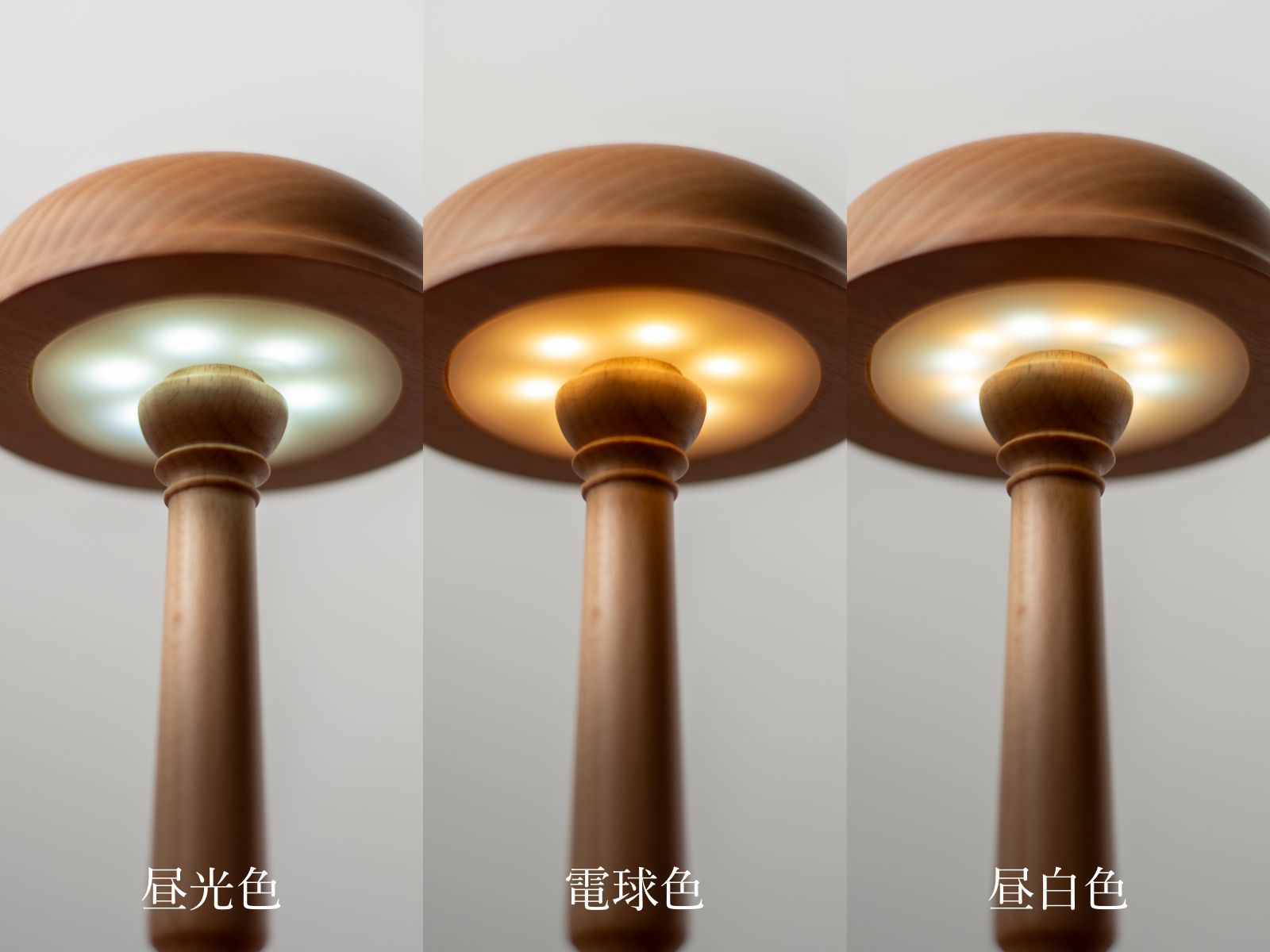 光源はタップするたびに、昼光色→電球色→白色→消灯の順に切り替わります。