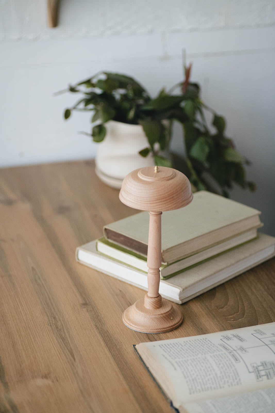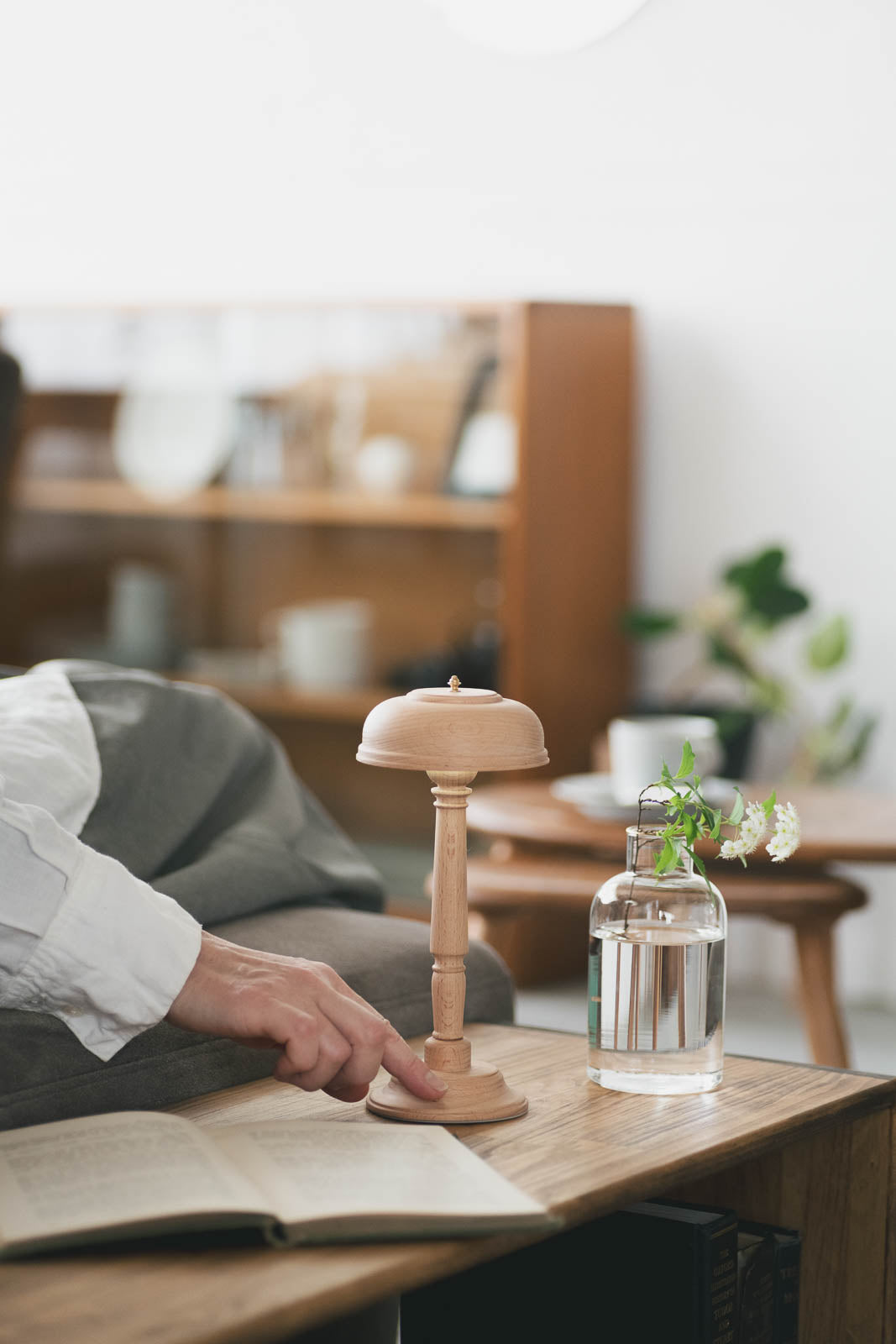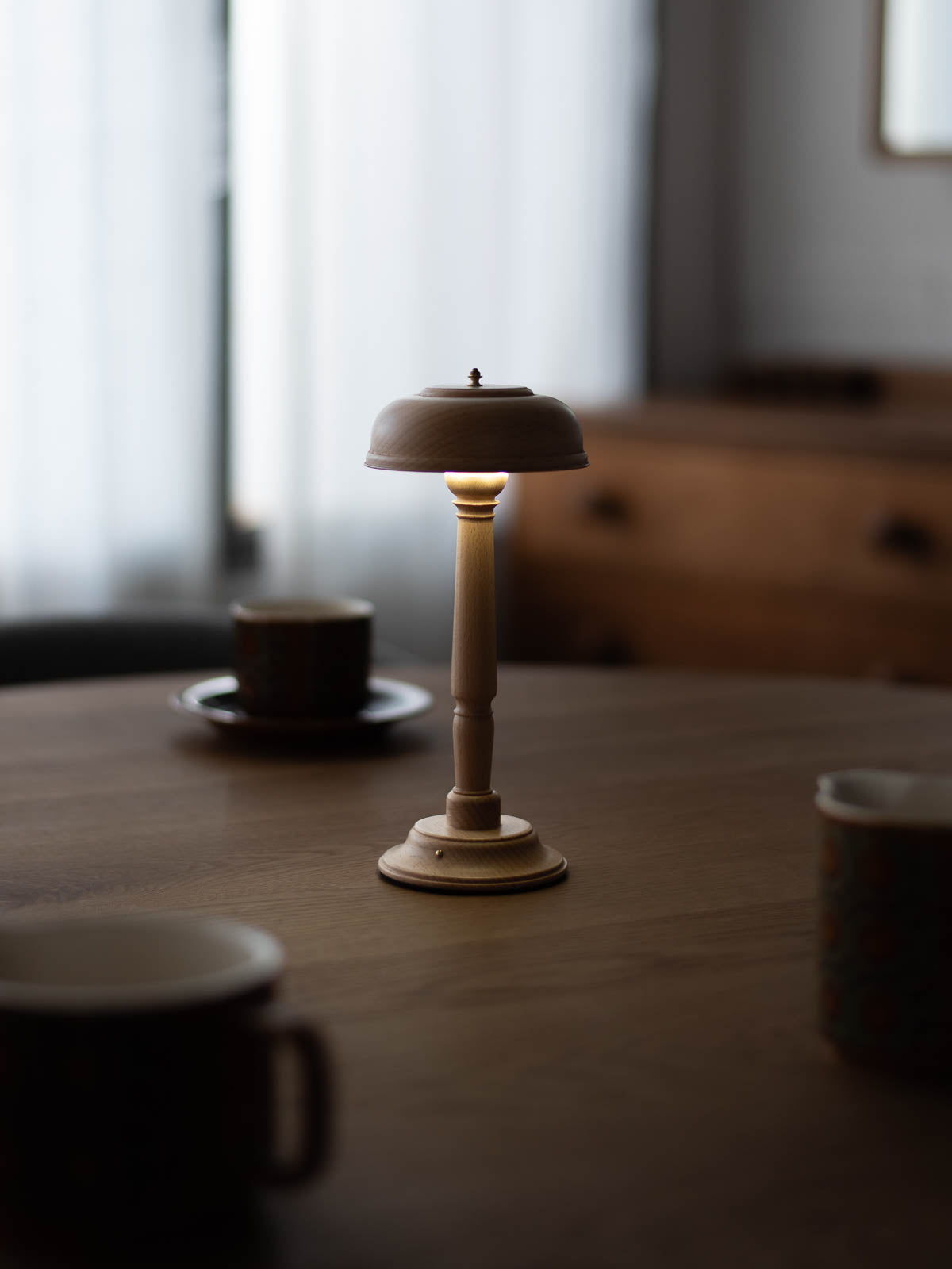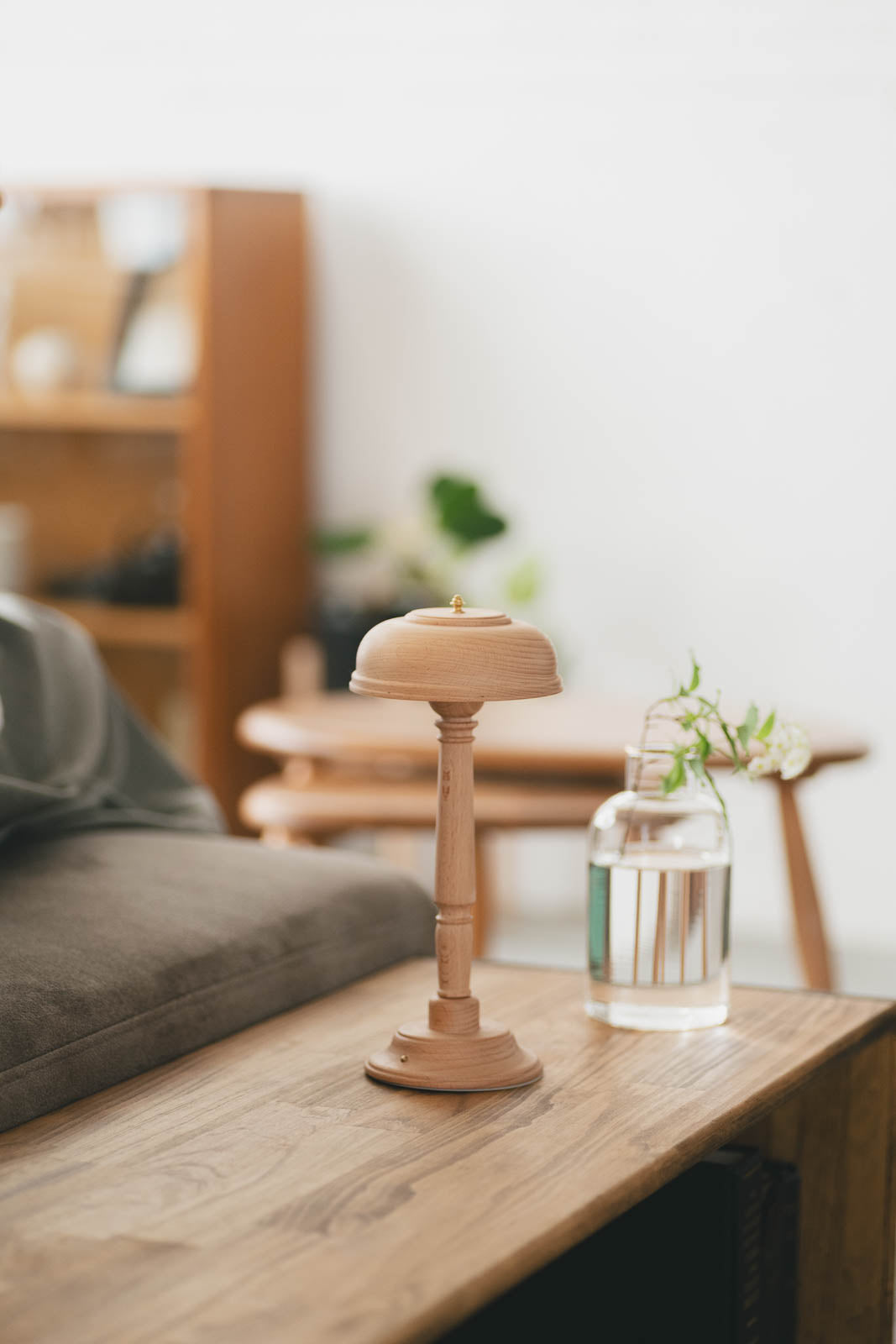 USB充電式のコードレスタイプなのでスッキリとしたスタイリングが叶うのが嬉しいポイント。直径10cm程のコンパクトサイズも相まって、ダイニングテーブルの中央にポンと置いても邪魔にならず、優しくあたたかな光で食卓を包み込んでくれます。
