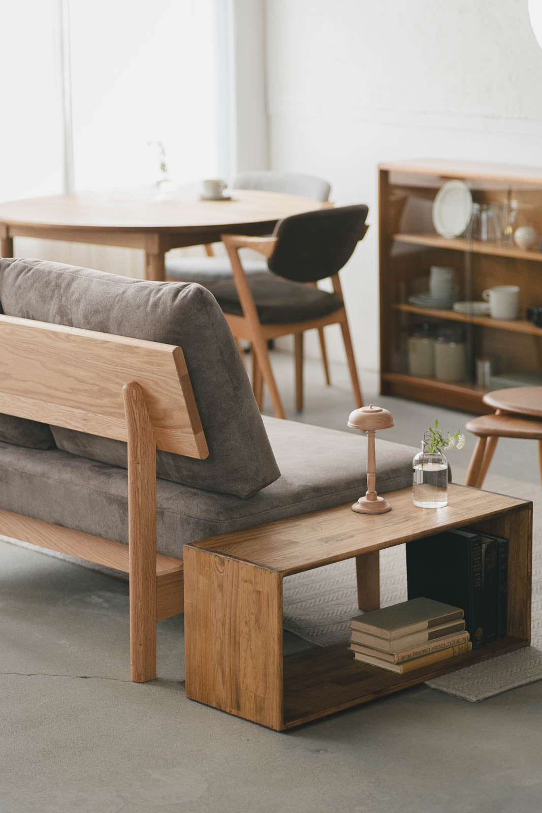 素材には古くから北欧でインテリアに活用されてきたビーチ材を使用。淡いピンク色を帯びた乳白色の穏やかな木色と滑らかな肌触りが魅力です。