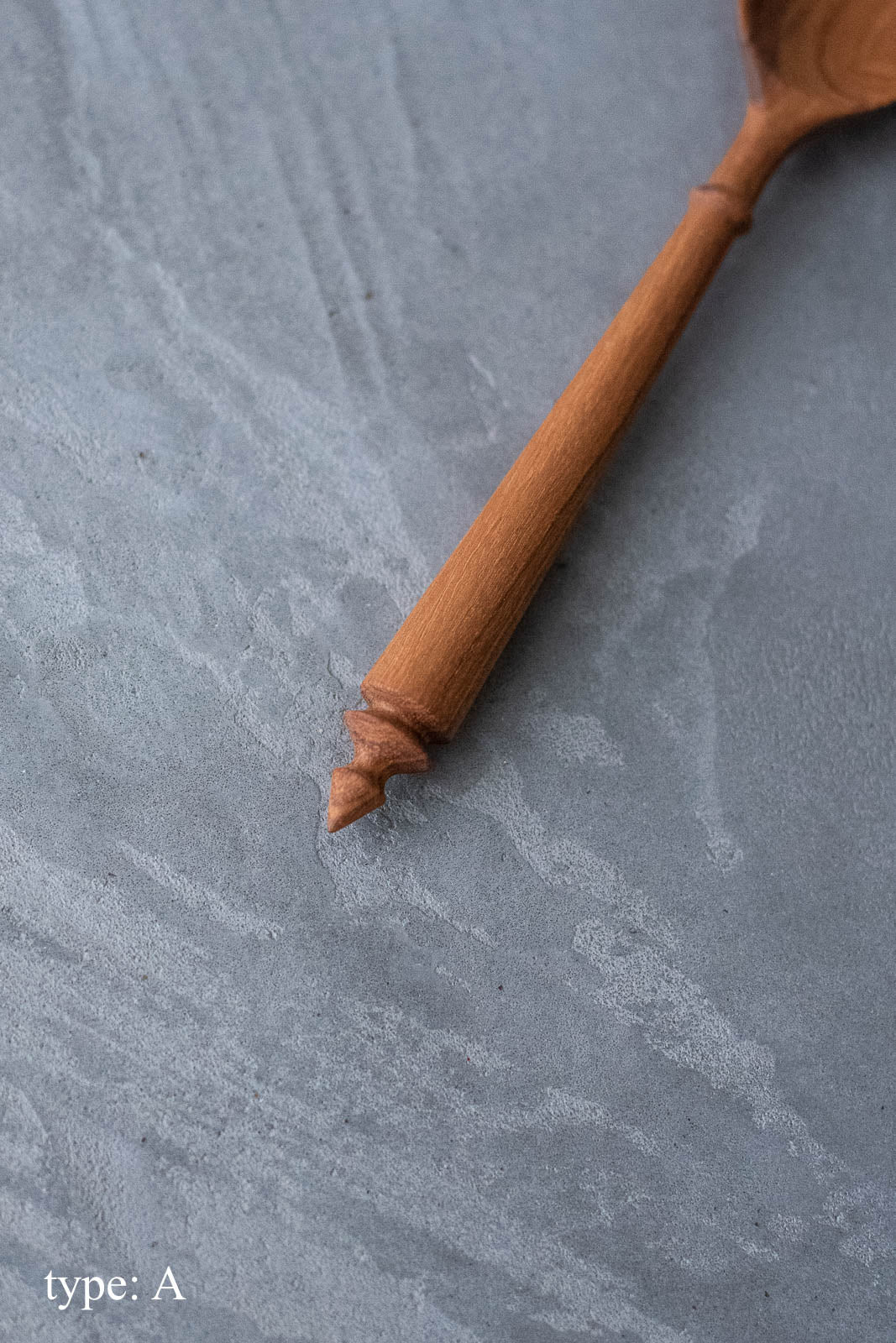 持ち手の先端には美しいターニングが施されており、Aタイプはシャープにとんがった先端、Bタイプは丸みを帯びた先端デザインが特徴です。