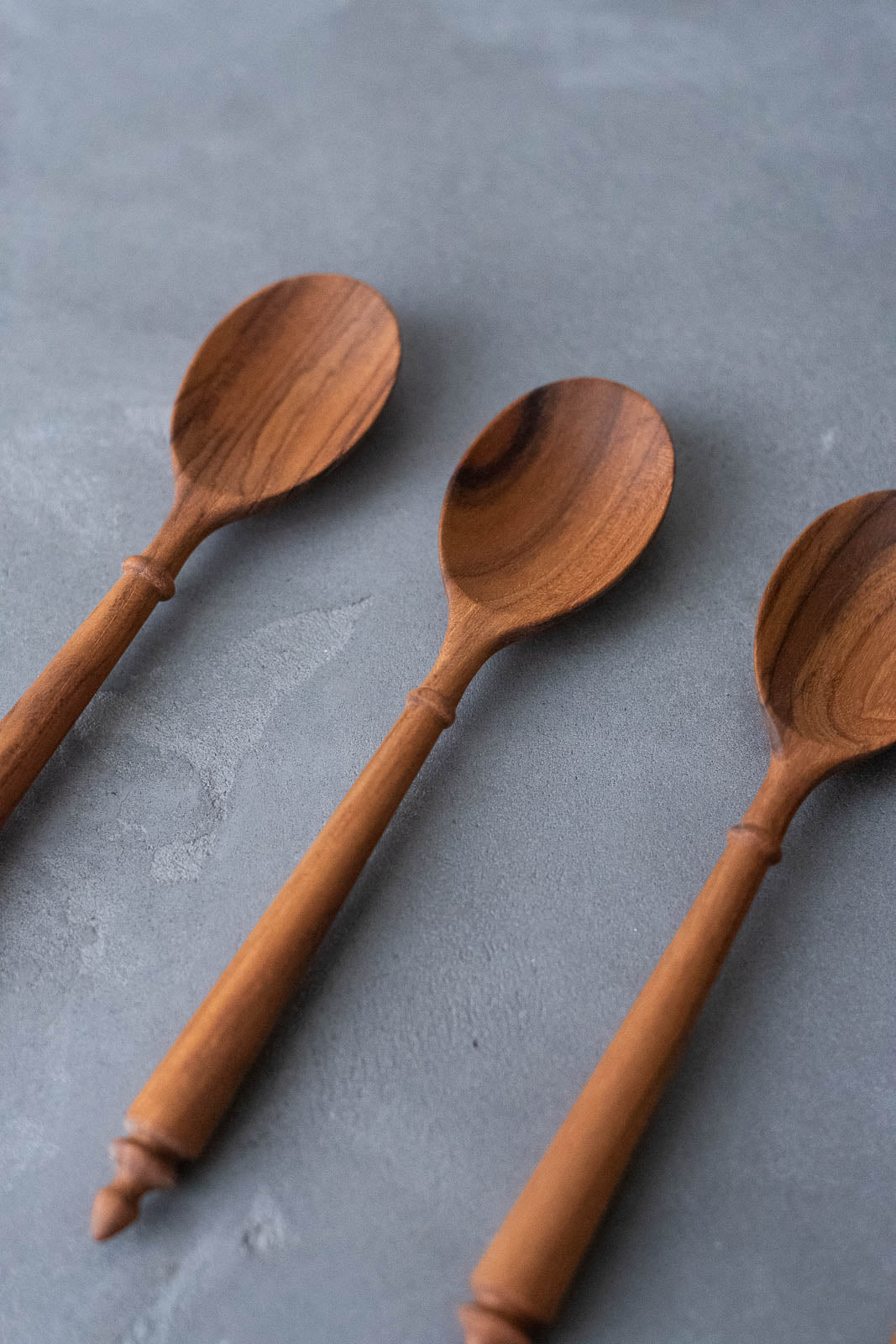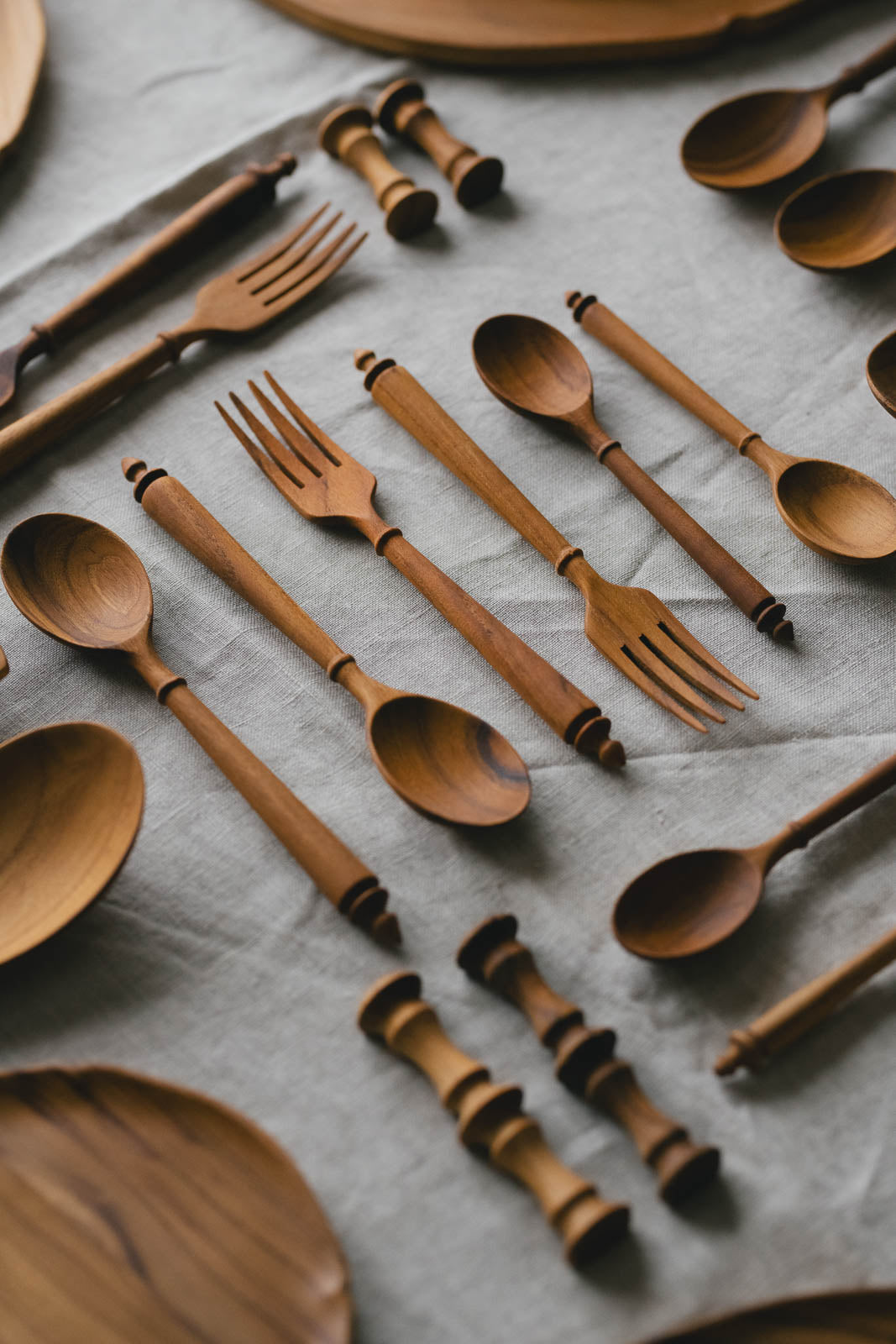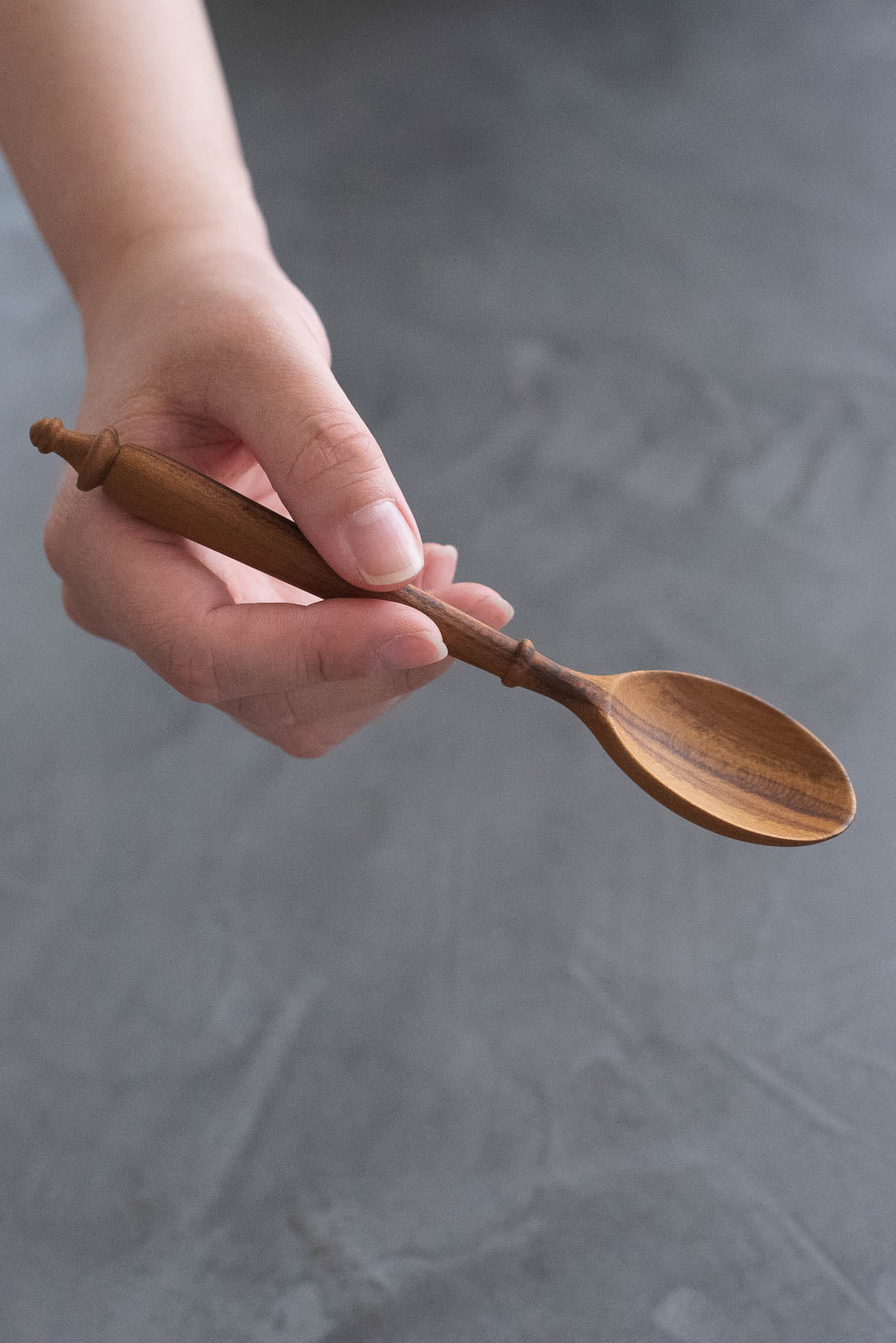 チーク無垢材を加工した贅沢な作りの「NIDO(ニド)」ブランチスプーンは、船や建材などにも用いられる高級木材であるチークならではの堅牢な作り。木材本来の自然な風合いと滑らかな手触りは、使うたびに心地よい温もりを感じさせ、日々の生活にちょっとした贅沢を添えてくれます。