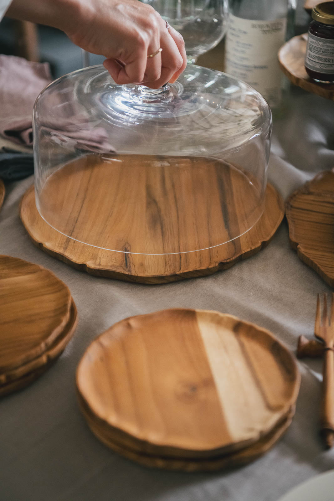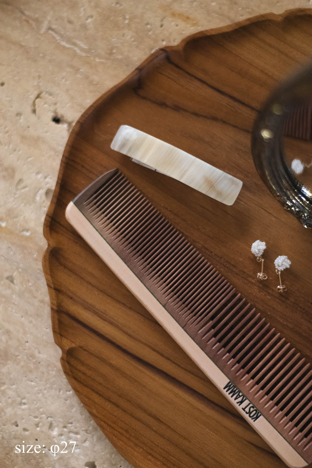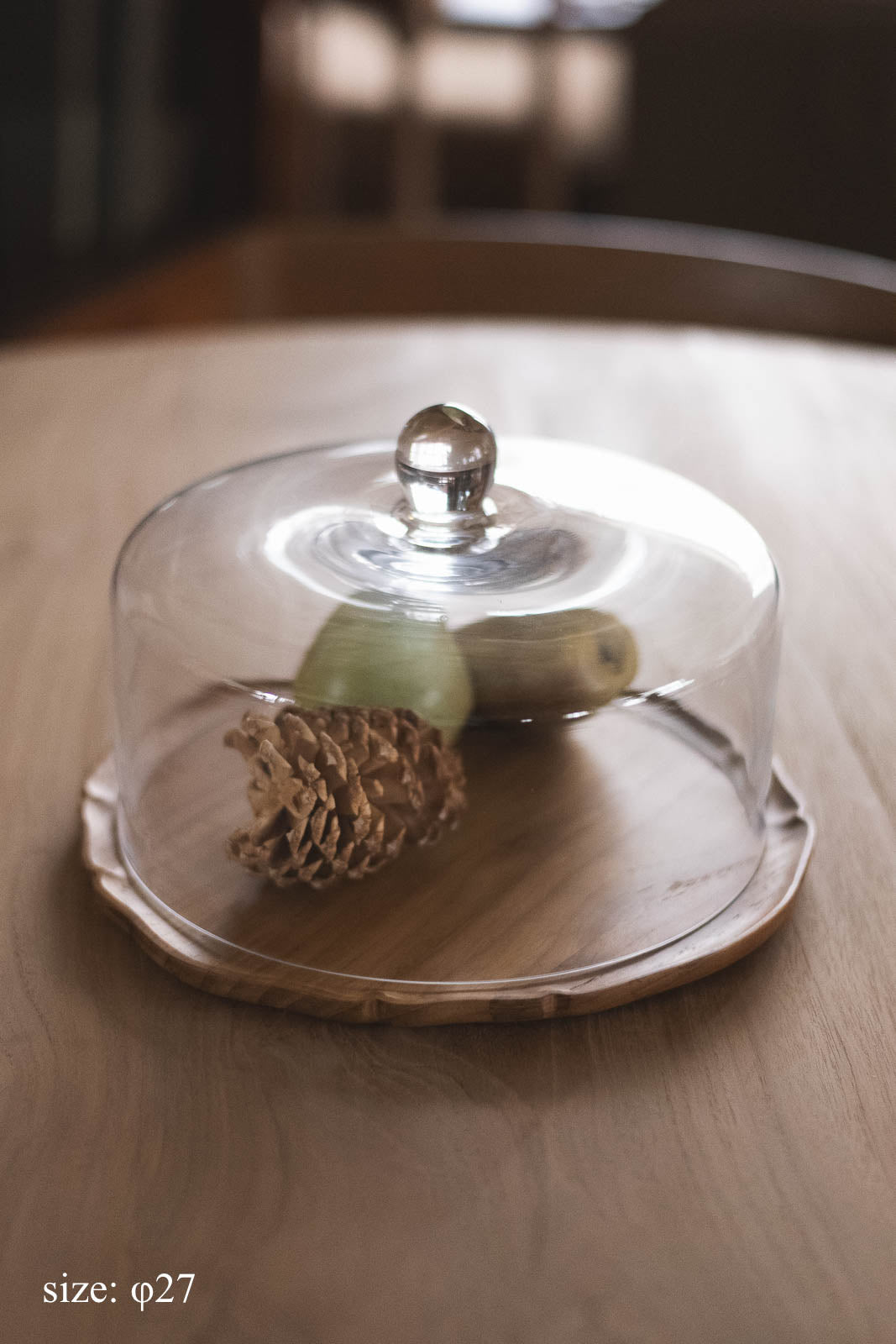 直径27cmは朝食のワンプレートや、チーズやフルーツをのせるプレートに最適。アクセサリーやアロマディフューザーのトレーとしてもちょうど良いサイズ。「 ガラスドーム」のsize230との相性も抜群です。