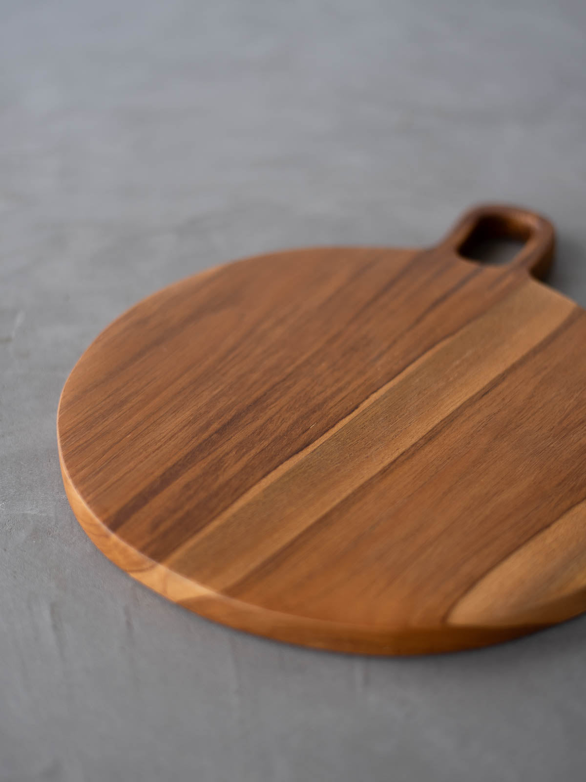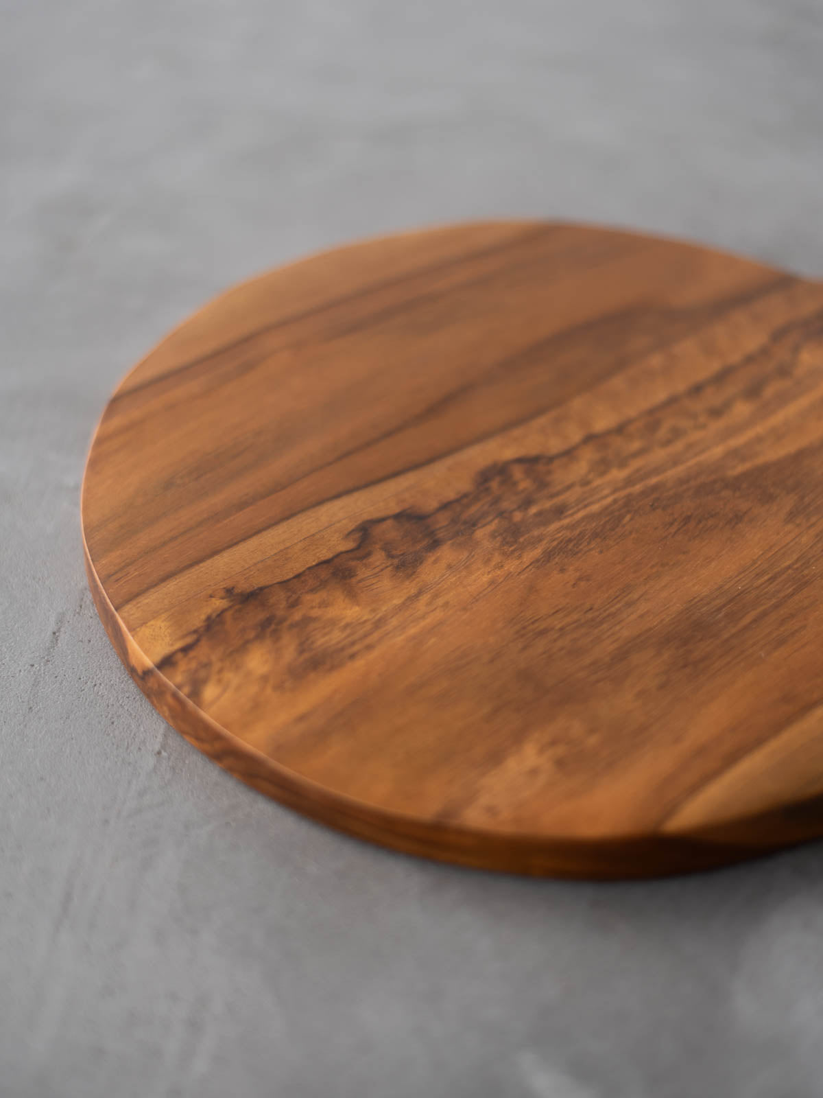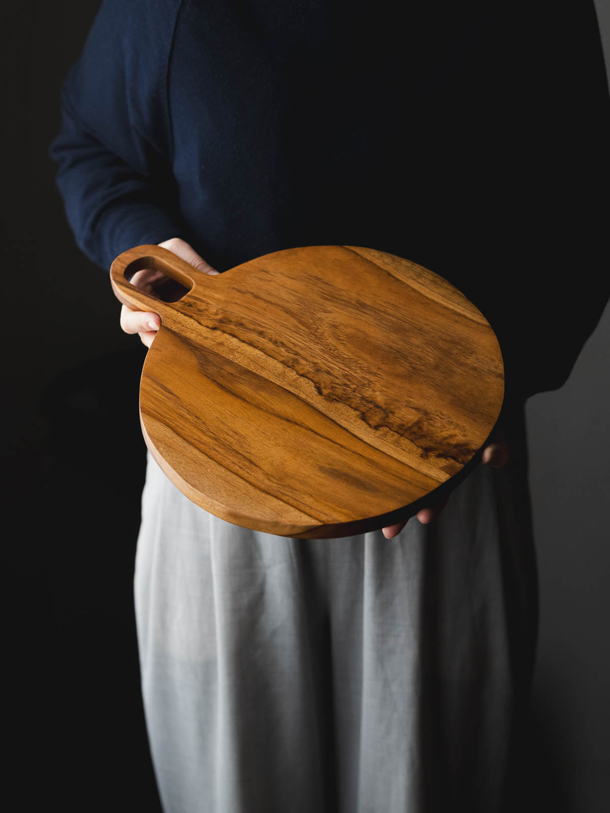 上質なチーク材で仕立てられた温もりを感じるピザプレート。使いやすい直径30cmのサイズは、ピザはもちろん、チーズやフルーツ、オードブルなど、さまざまな料理の盛り付けに最適です。木目の自然な美しさが楽しめるシンプルなデザインは、食材の美しさを引き立てるだけでなく、料理に温もりを添え、食卓を一層華やかに彩ります。食事のひとときを特別なものに変えてくれるアイテムです。