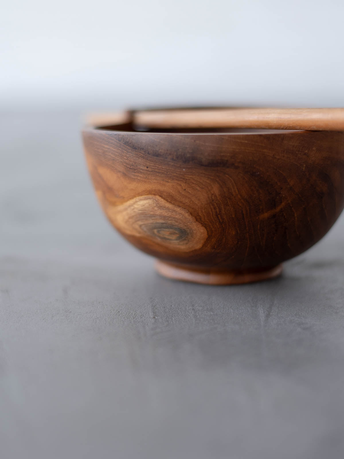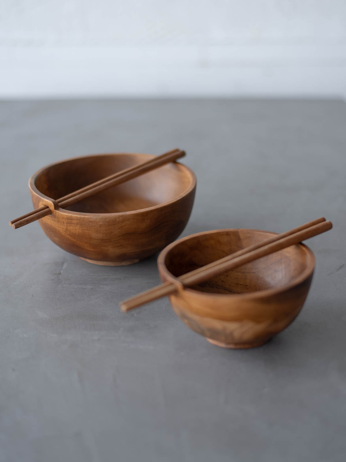 上質なチーク材で仕立てられた温もりを感じる器セット。チーク材特有の温かみと深みのある木目が、器の美しさを引き立てます。