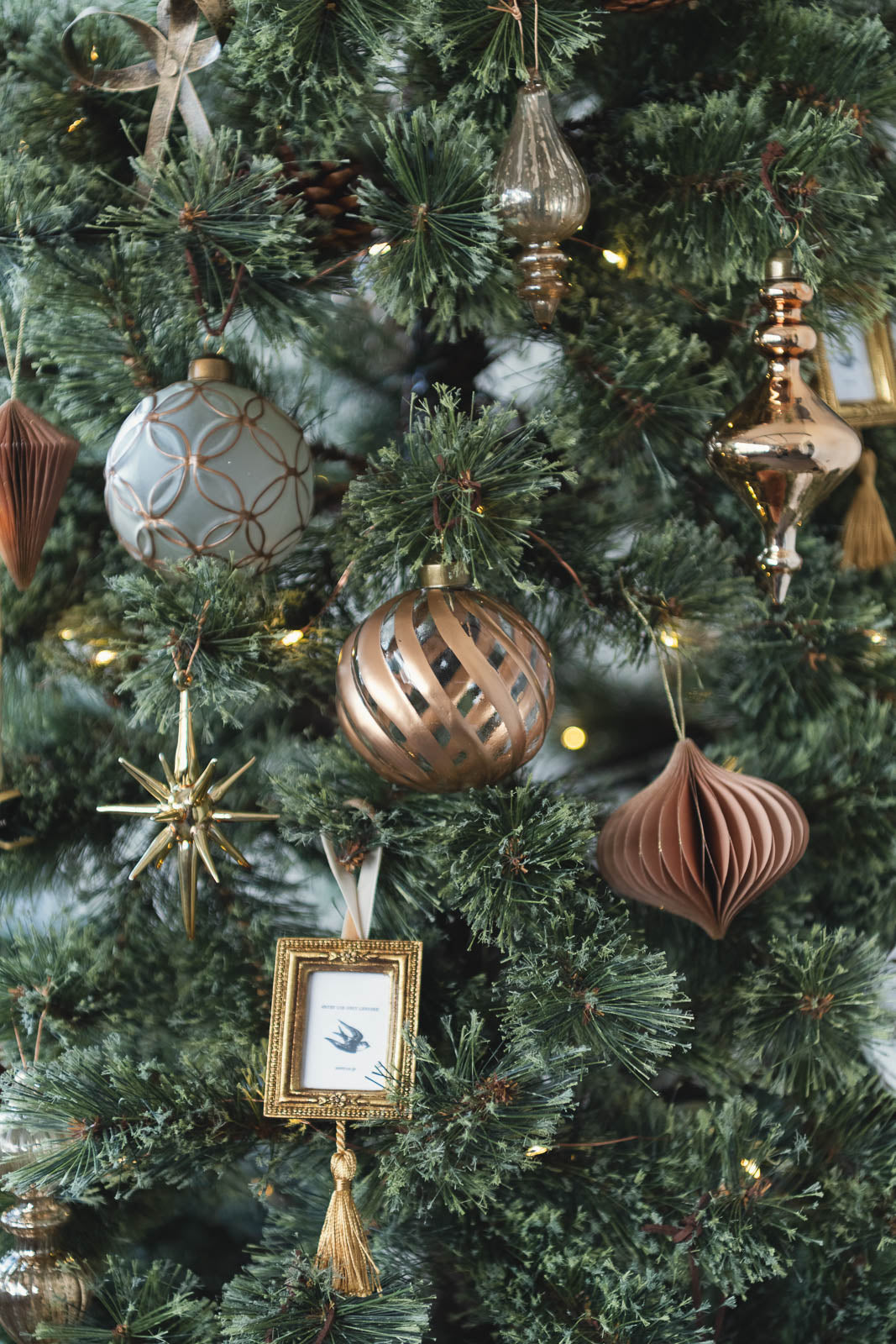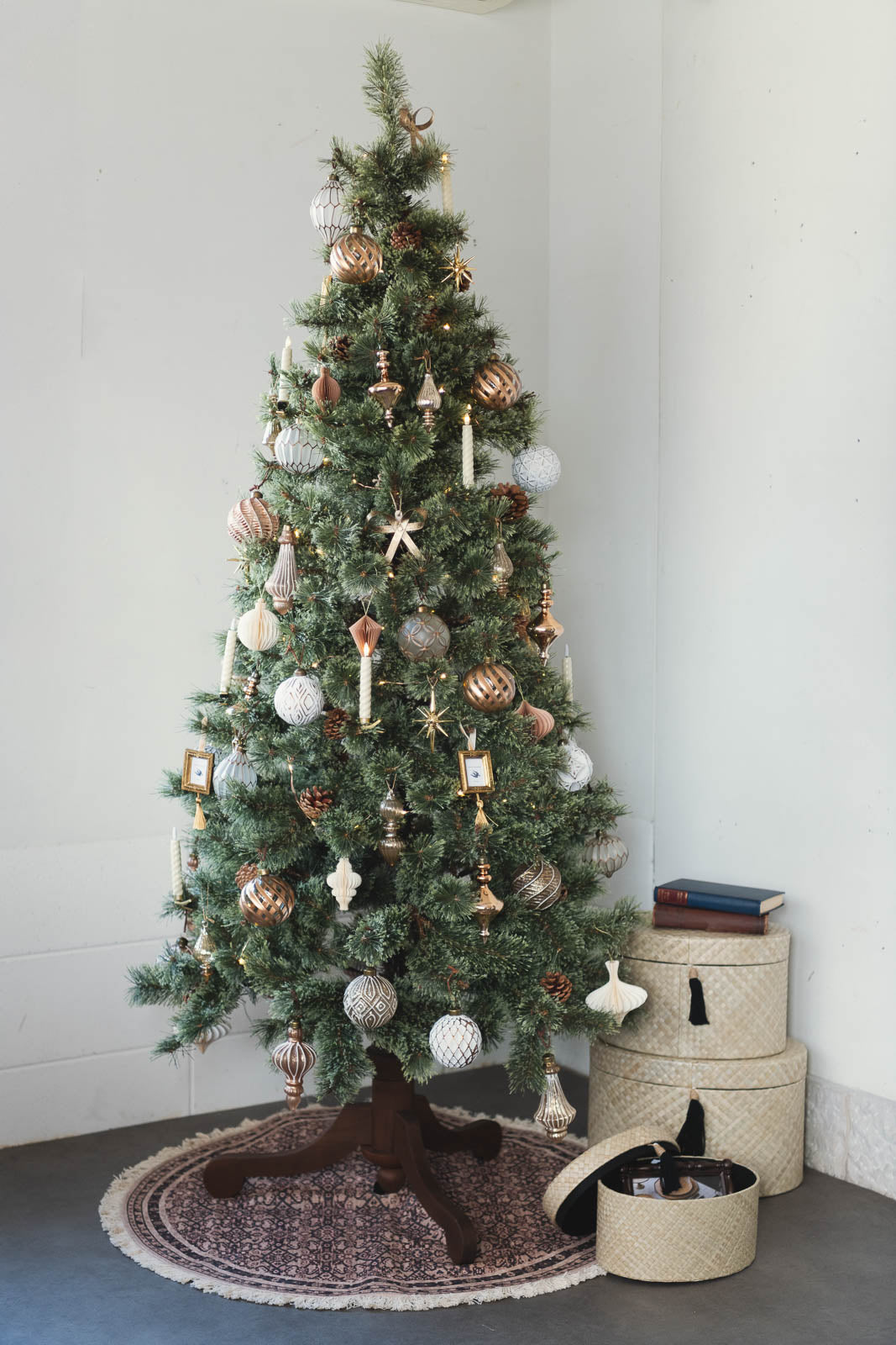 カラーはツリーを上品に彩ってくれるオフホワイト・ローズを採用。落ち着いた柔らかな色合いの2色で、上品で美しい印象をプラスしてくれます。縁には、ブロンズカラーのラメをあしらい、ほんのりとしたアクセントにもなり華やかな装いに。