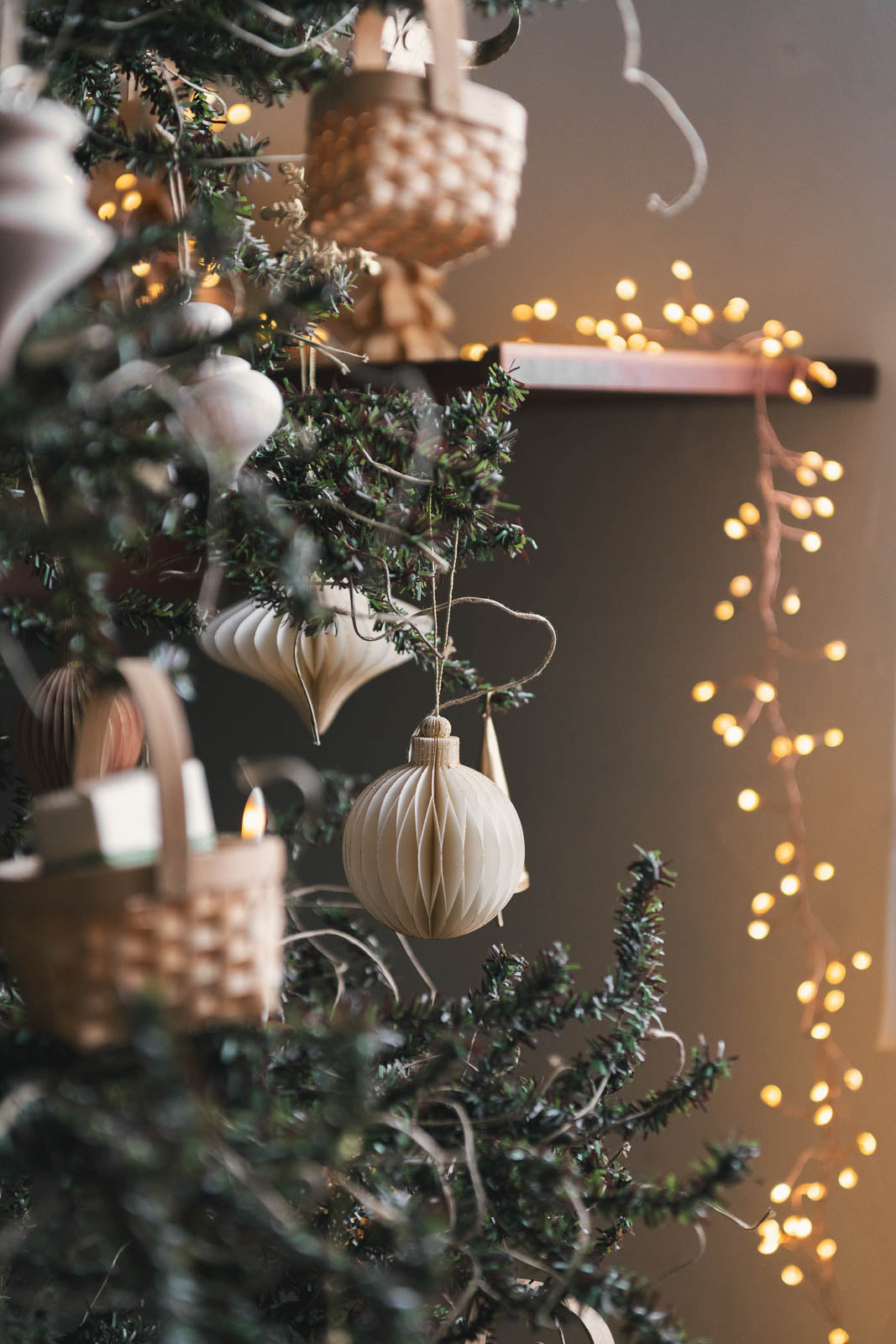 HUONE Christmas Tree 150cm」や「HUONE Christmas Tree 180cm」に合わせると、ツリーのやさしいグリーンと調和し、エレガントでクリスマスらしい美しい仕上がりに。