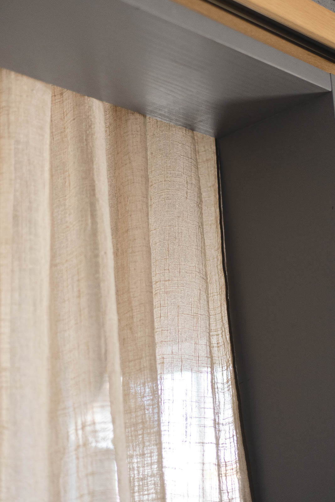扉の代わりとして使えば、見せたくないスペースをやさしく隠しつつ、お部屋の雰囲気に心地よく溶け込みます。カーテンレールがない場所には、突っ張り棒などを使うと簡単に取り付けられます。