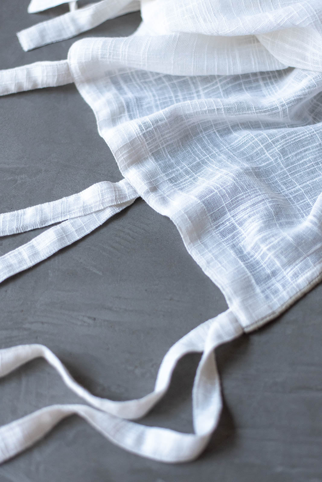透けたときに浮かぶ織り模様は、スラブ生地ならではの味わい。細くなったり太くなったり——糸の自然なムラがやさしい表情を生み、お部屋にやわらかな空気感を添えてくれます。