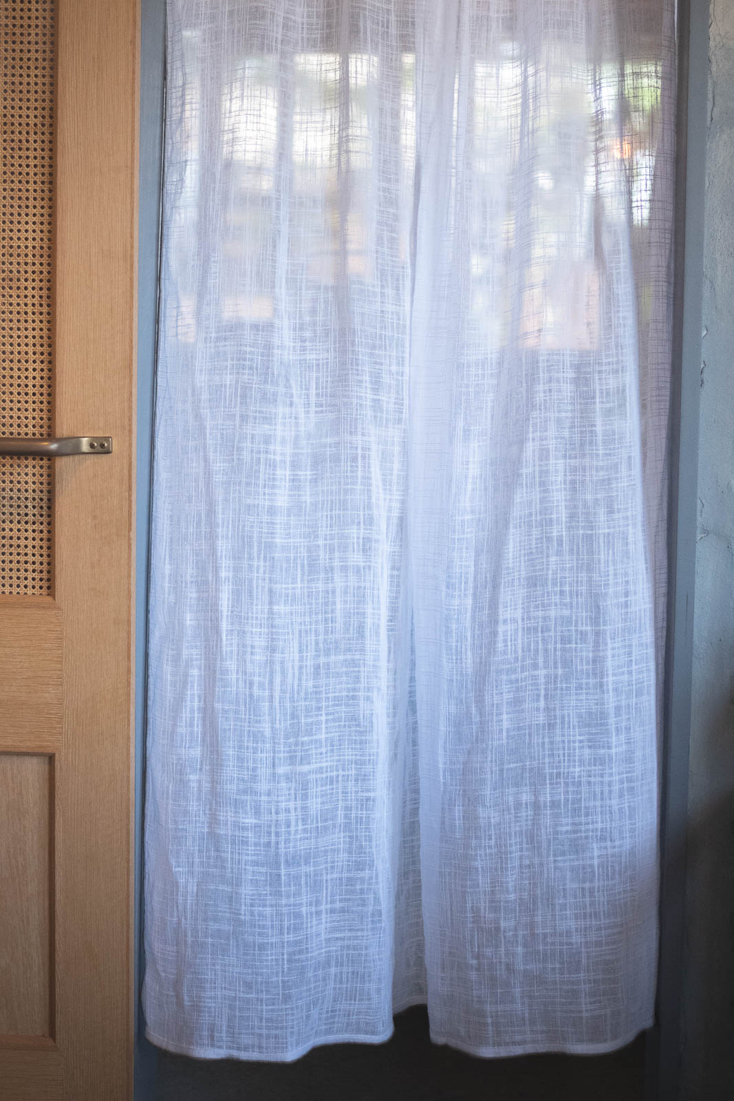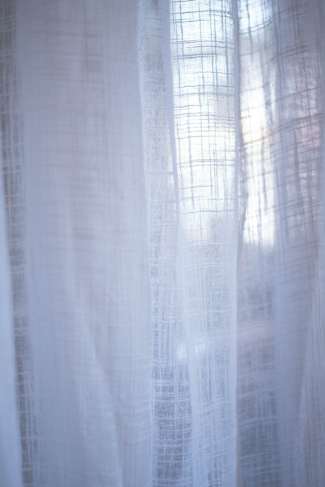 程よい透け感で、さりげない目隠しにも。重たさは感じさせず、手を近づければうっすらと見えるほどの、やさしいニュアンスを残しています。