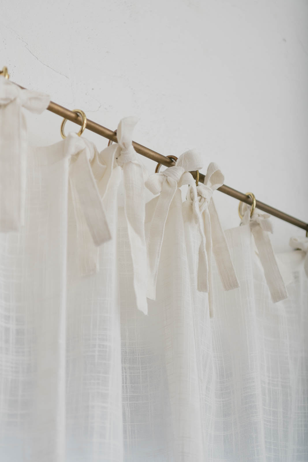 カーテンレールにリボン結びをして華やかに、玉結びでシンプルに仕上げるのもおすすめです。