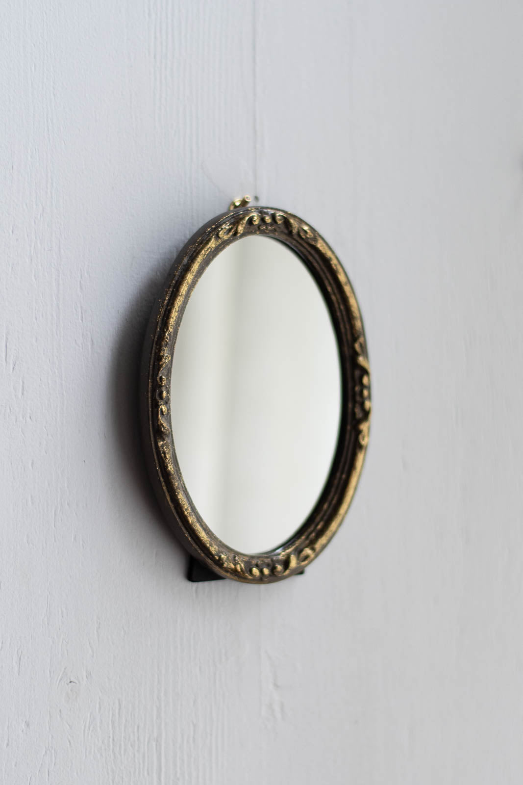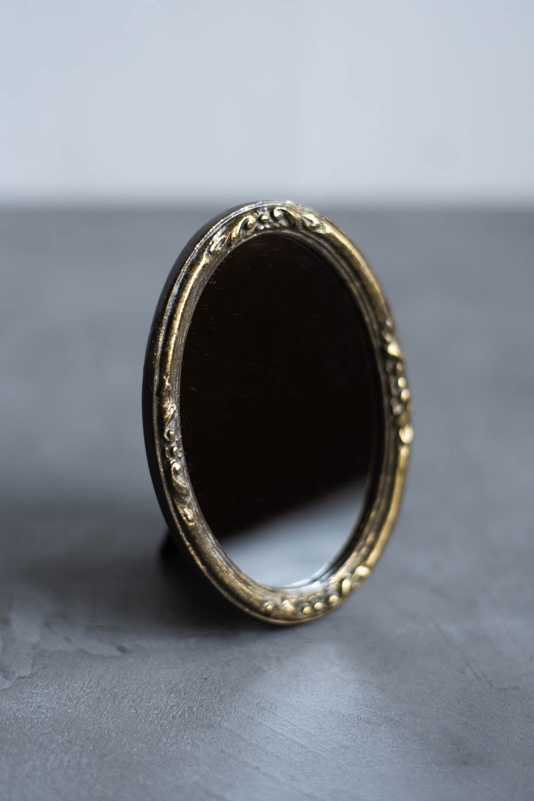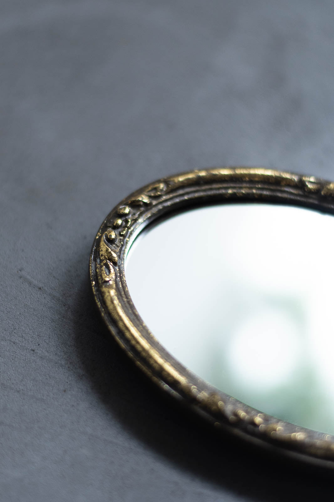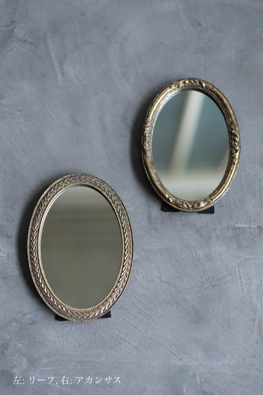 アカンサスの葉が縁取る、オーバルのミニ鏡