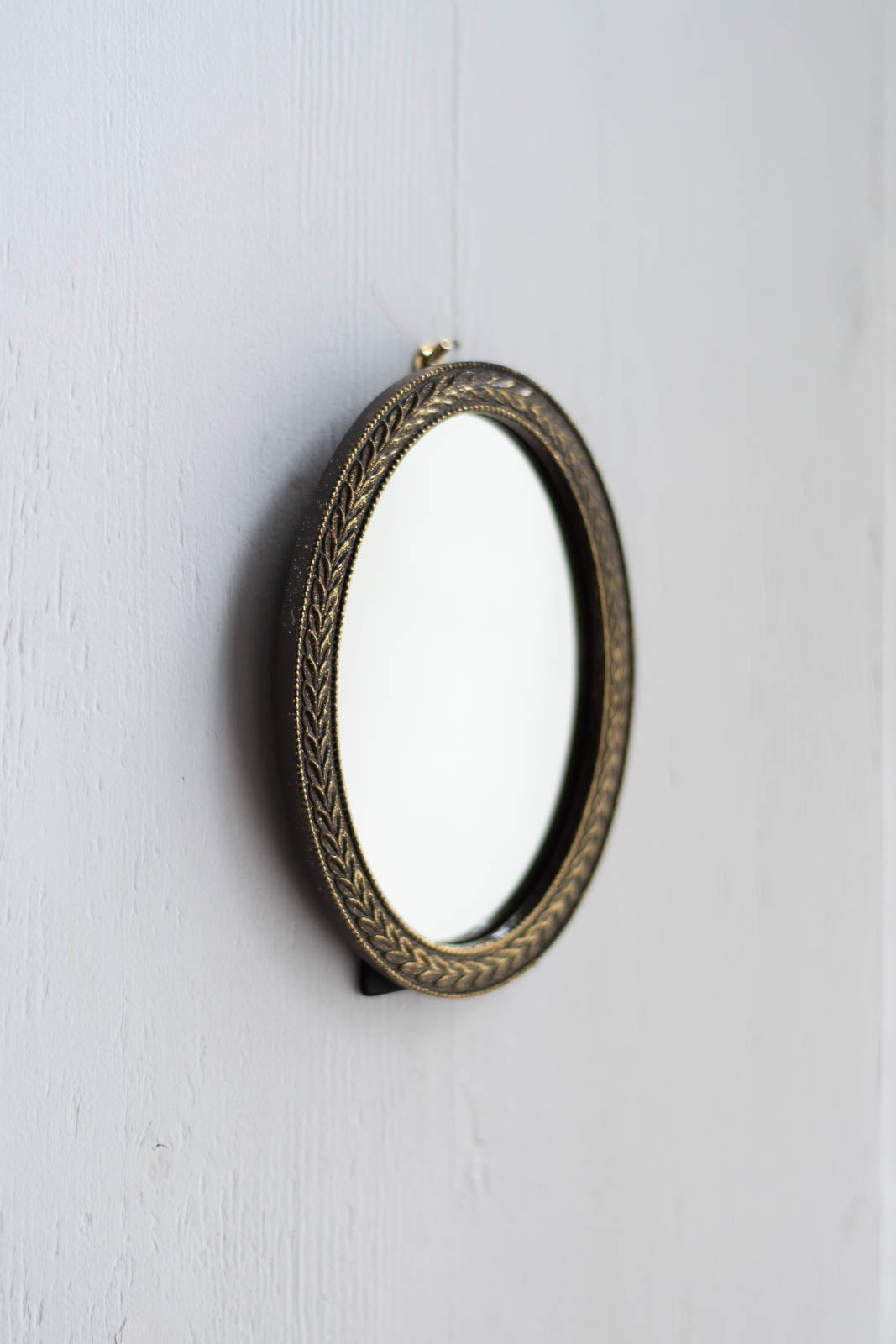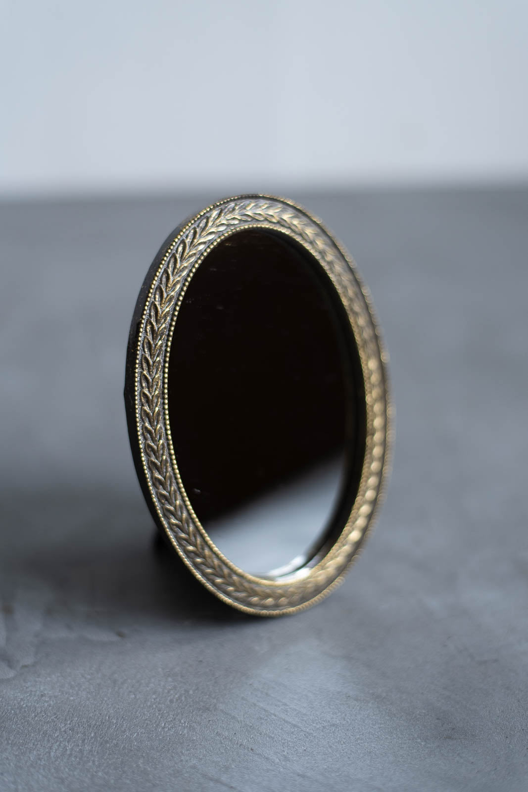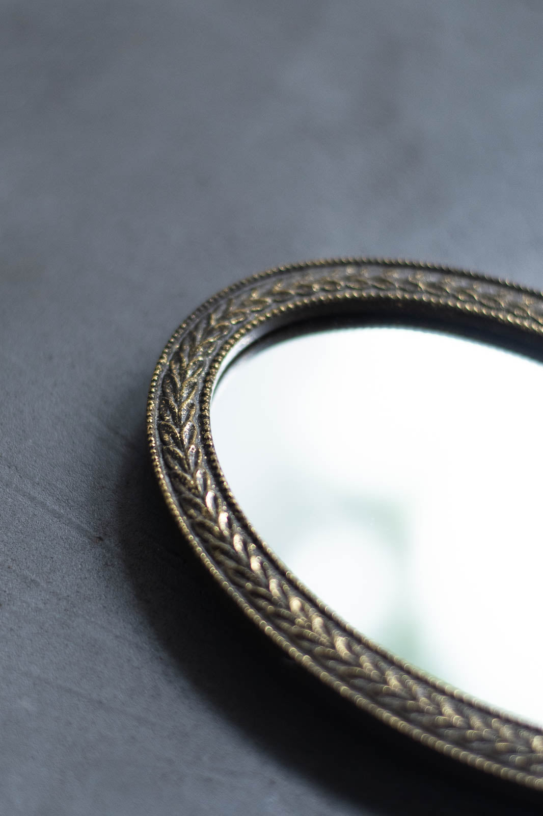 リーフのフレームが趣を宿す、オーバルのミニ鏡