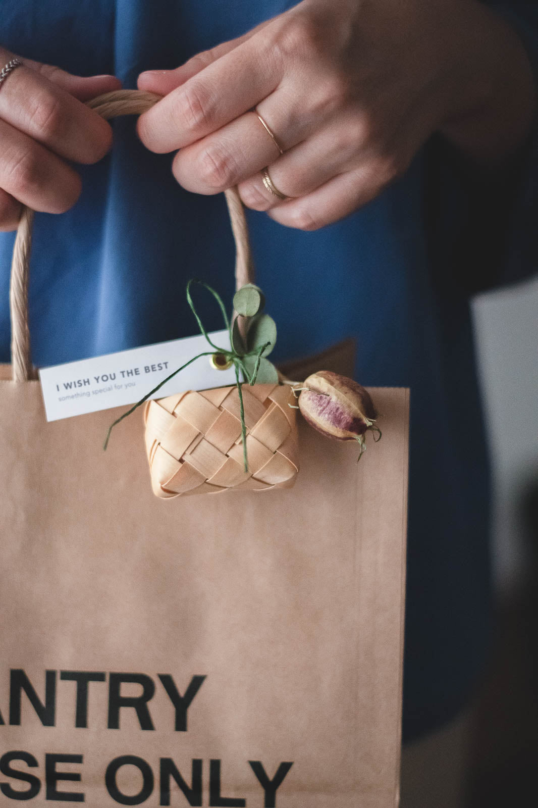ちょっとしたギフトの飾りに添えるのもおすすめ。小さなかごに込められた手しごとが、想いをやさしく届けてくれます。