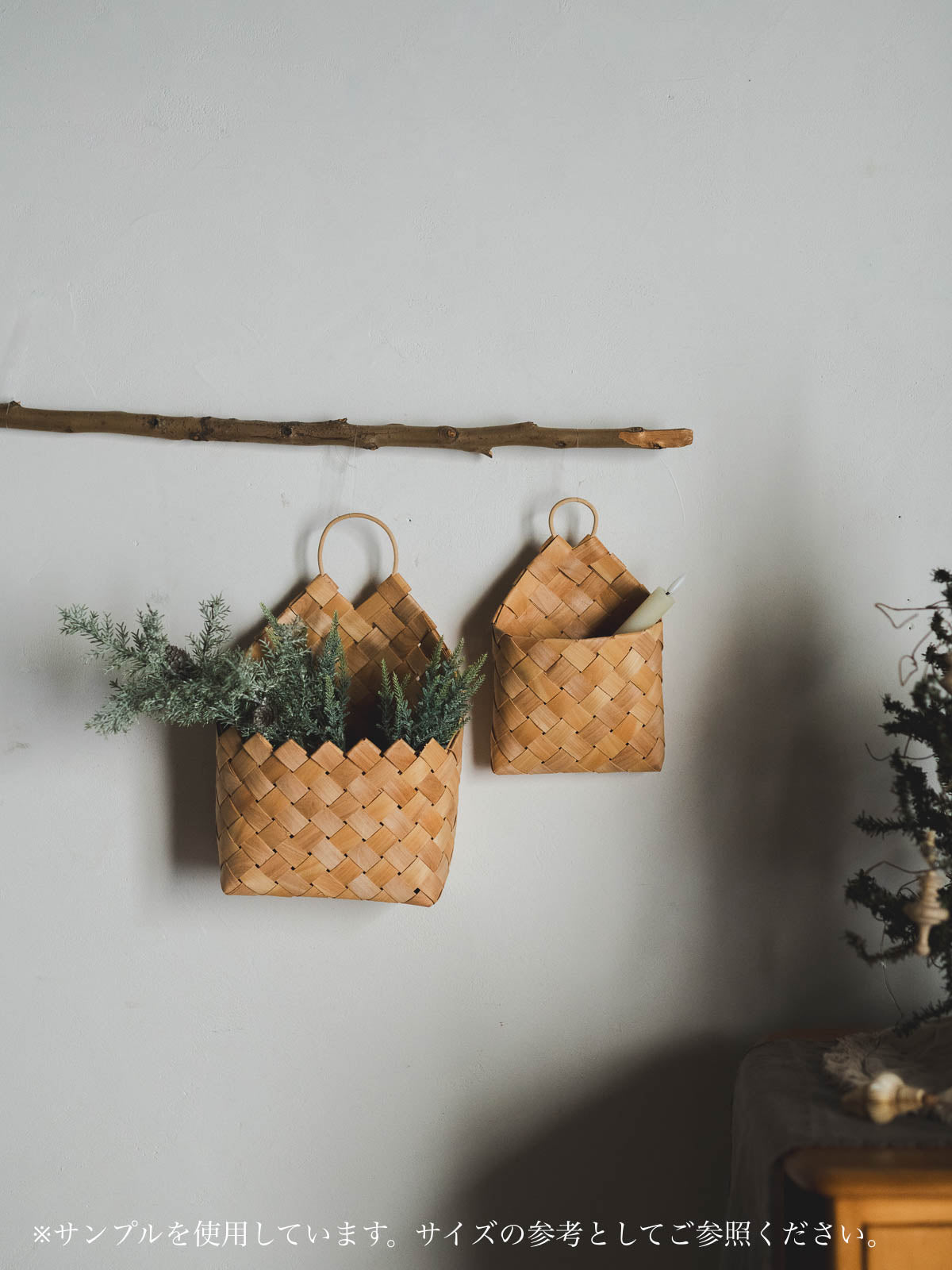 自然素材ならではのおおらかな佇まいはほっこりとした優しい雰囲気を演出してくれ、クリスマスの雰囲気にもぴったりです。使い込んだマシンで素材を割り、職人が一つひとつ手編みしてお作りしています。