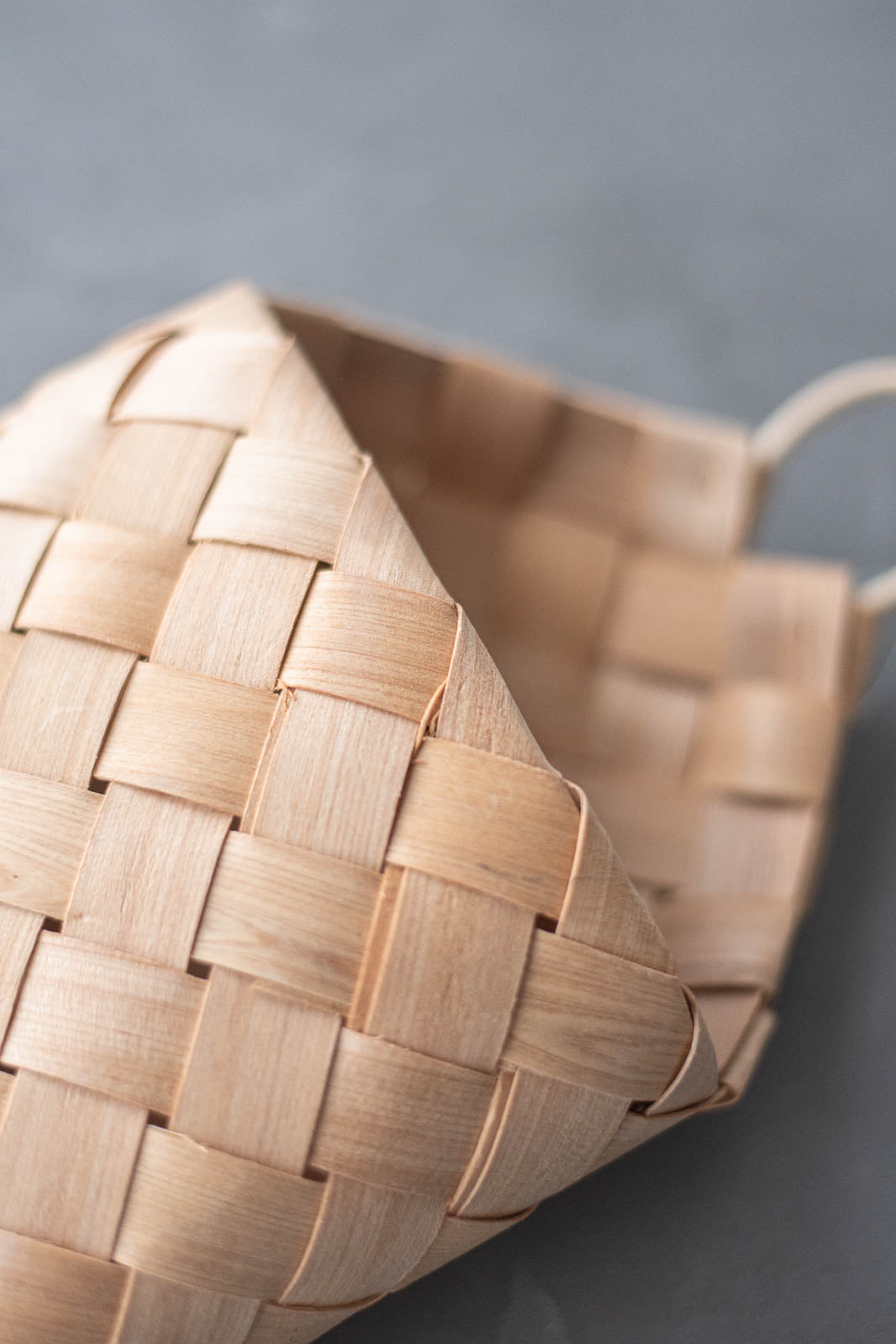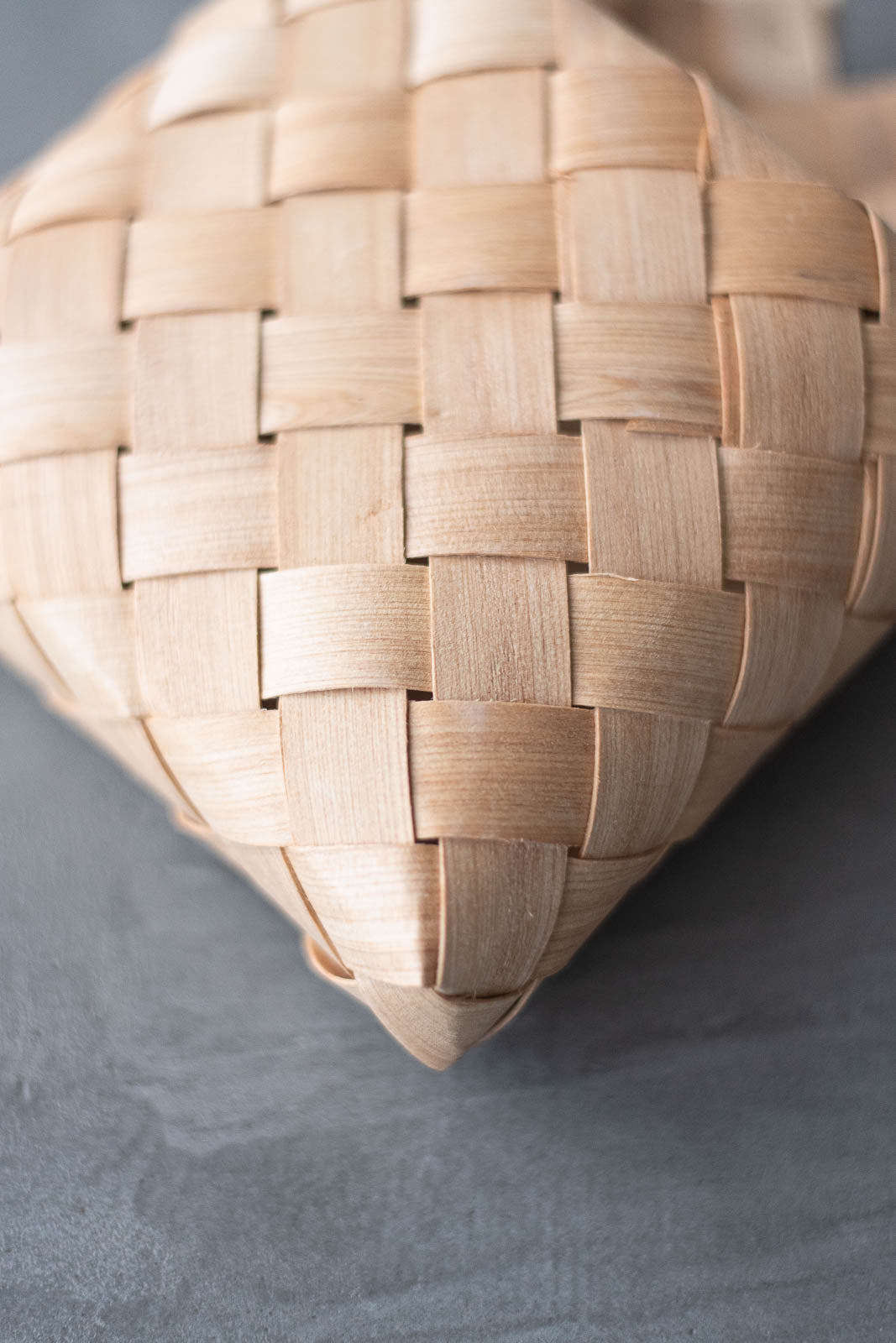 職人の手しごとによって、一つ一つ編まれた編み目。木肌に刻まれた年輪が重なり合うことで生まれる、やわらかな表情。ところどころ混じる色の揺らぎが、どこかほっとするような、やさしく穏やかな空気をまとっています。