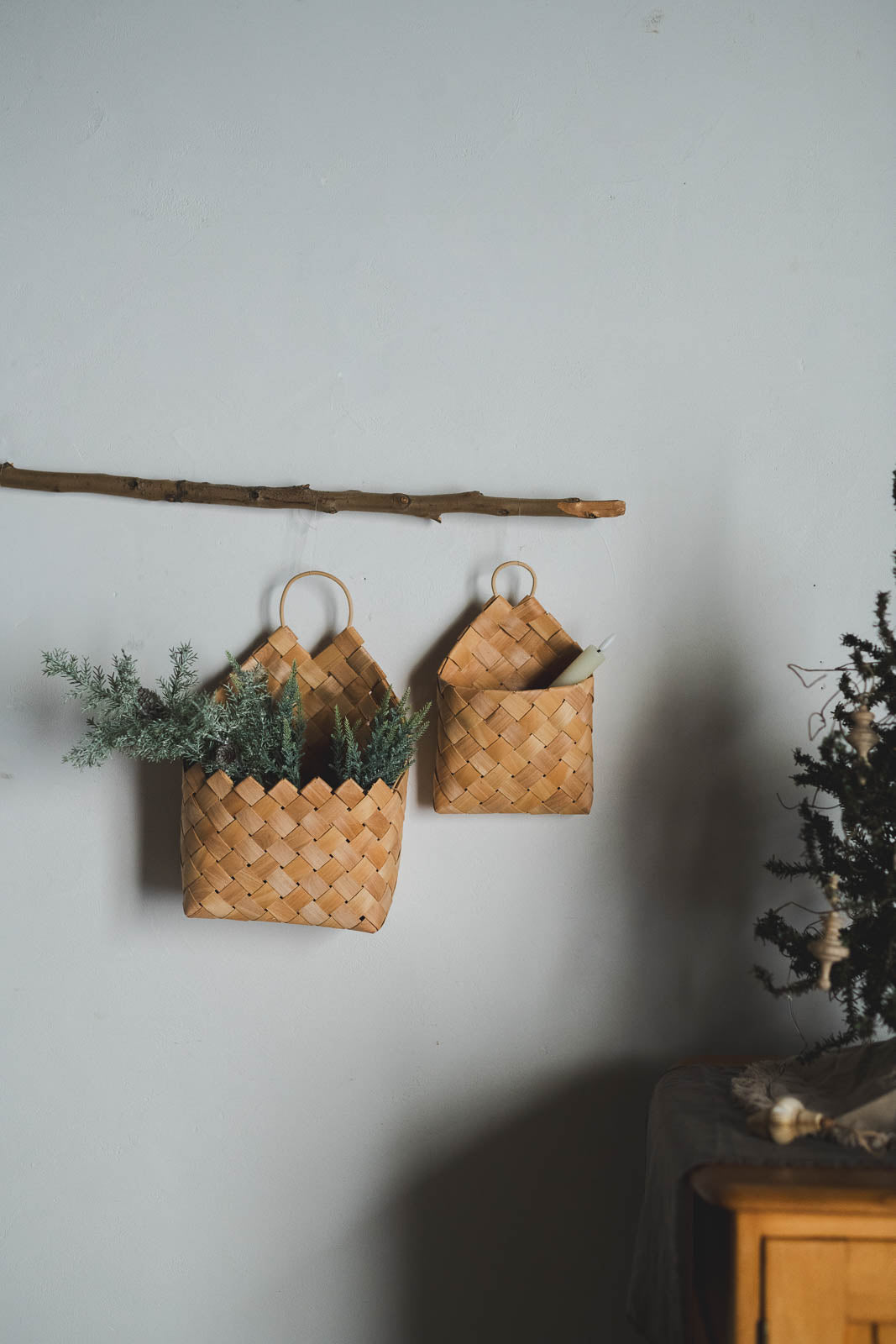 Snokka Hanging Basket Natural S - もみの木のおおらかさが可愛い、コンパクトなハンギングバスケット
