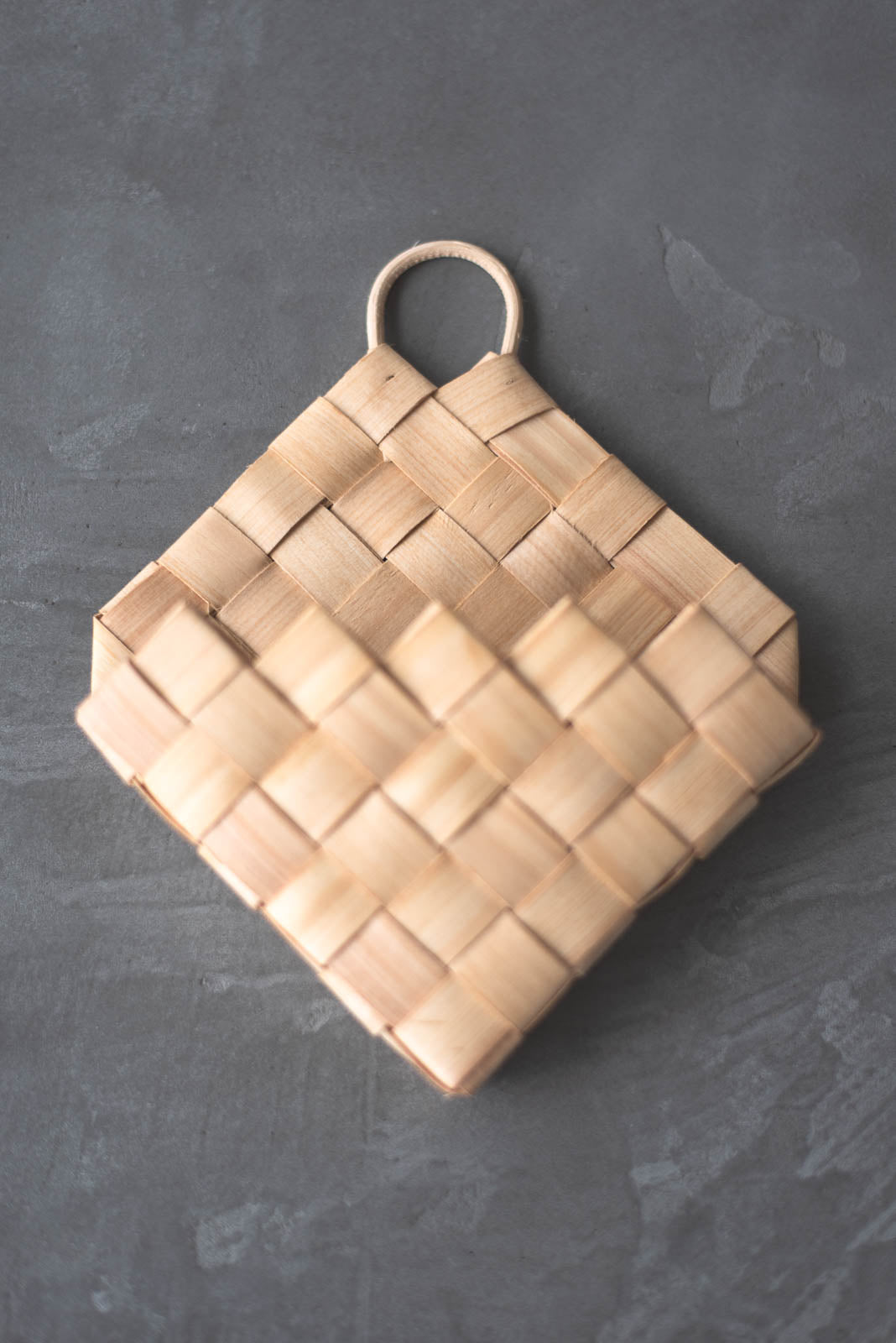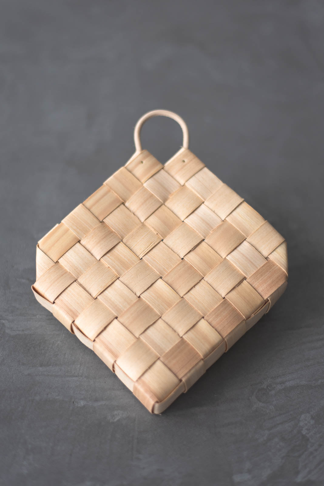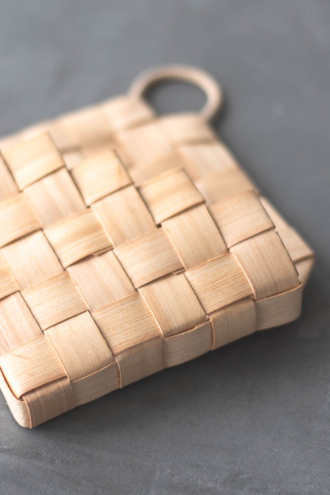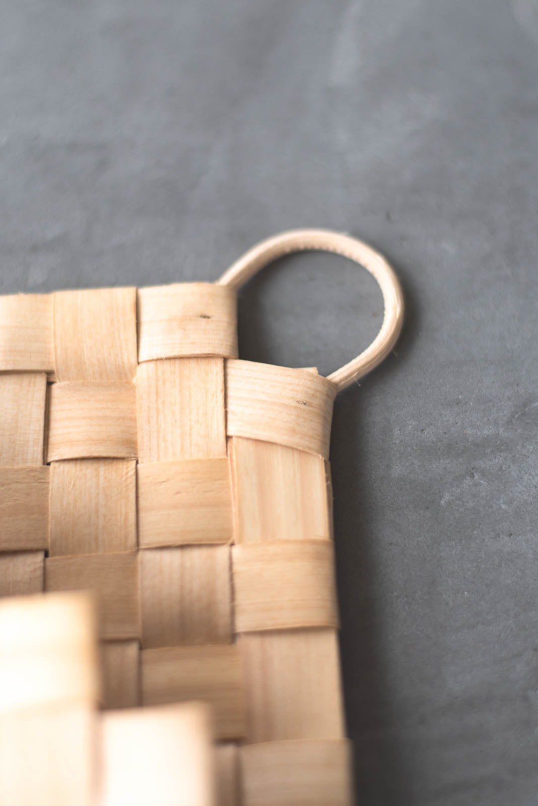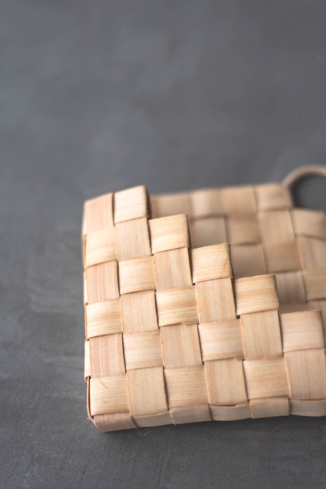 職人の手しごとによって、一つ一つ編まれた編み目。木肌に刻まれた年輪が重なり合うことで生まれる、やわらかな表情。ところどころ混じる色の揺らぎが、どこかほっとするような、やさしく穏やかな空気をまとっています。