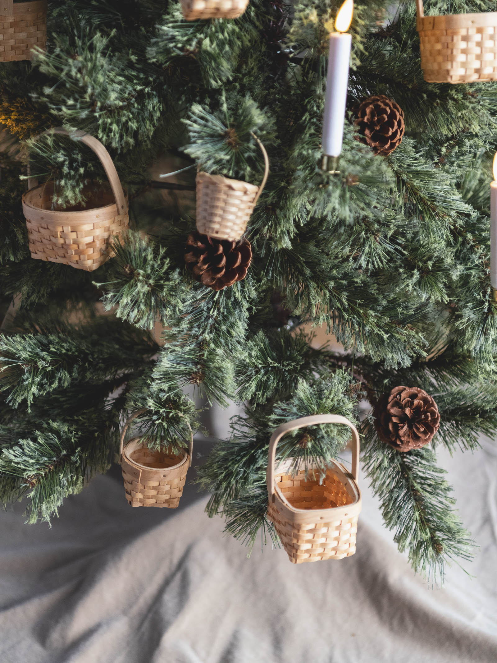 素朴で優しい、天然素材の手編みバスケットオーナメント