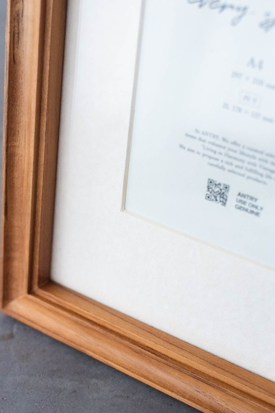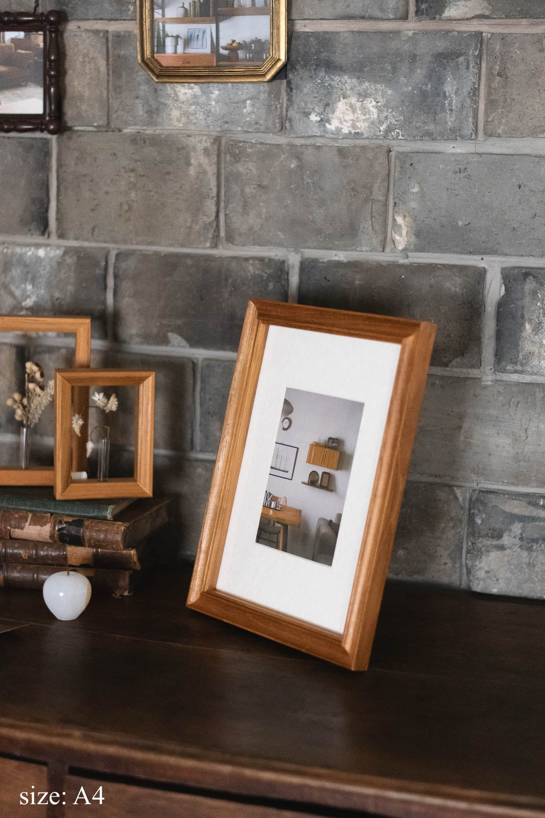 お気に入りの写真やカード、ファブリックやポスターを入れてデスクやシェルフの上に立てたり、壁に複数飾ったりしても素敵です。物語を感じるような存在感で空間を豊かに演出してくれます。